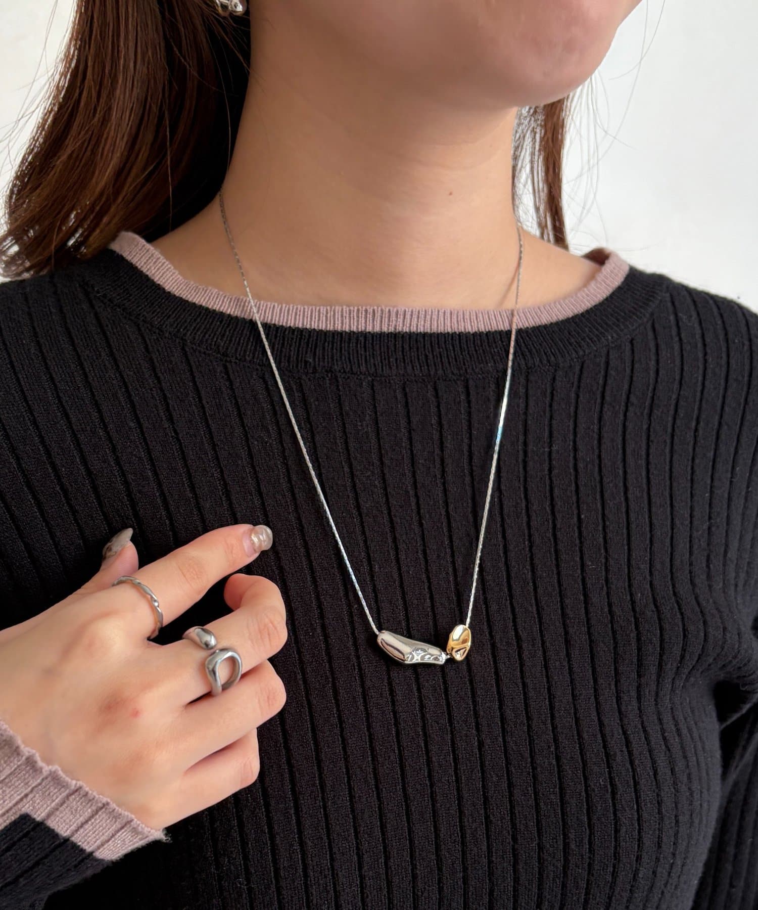 シンプルなデザインなので、お手持ちのネックレスとの重ね付けもおすすめです◎