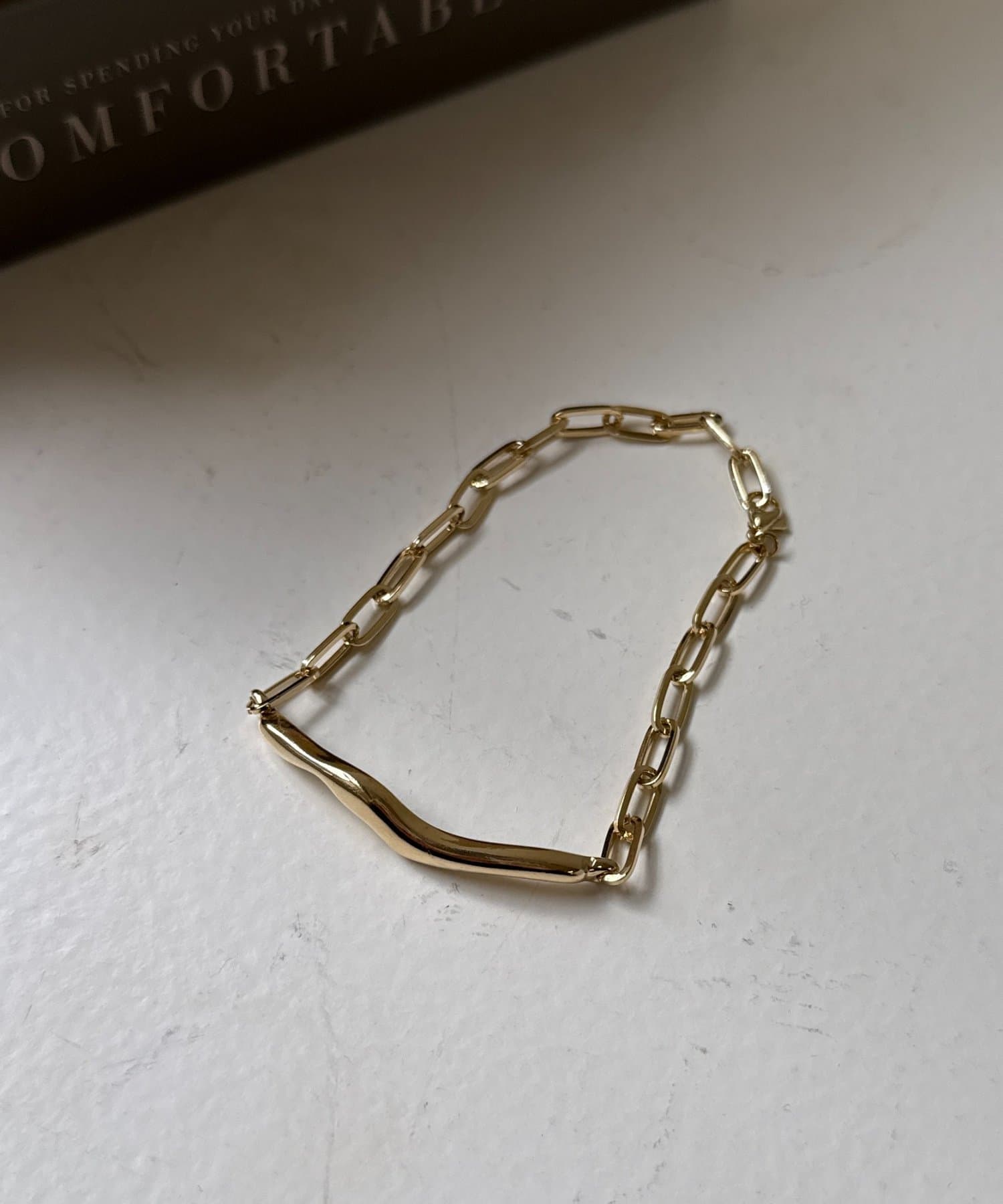 華奢ながらもウェーブデザインが目を惹くブレスレット。