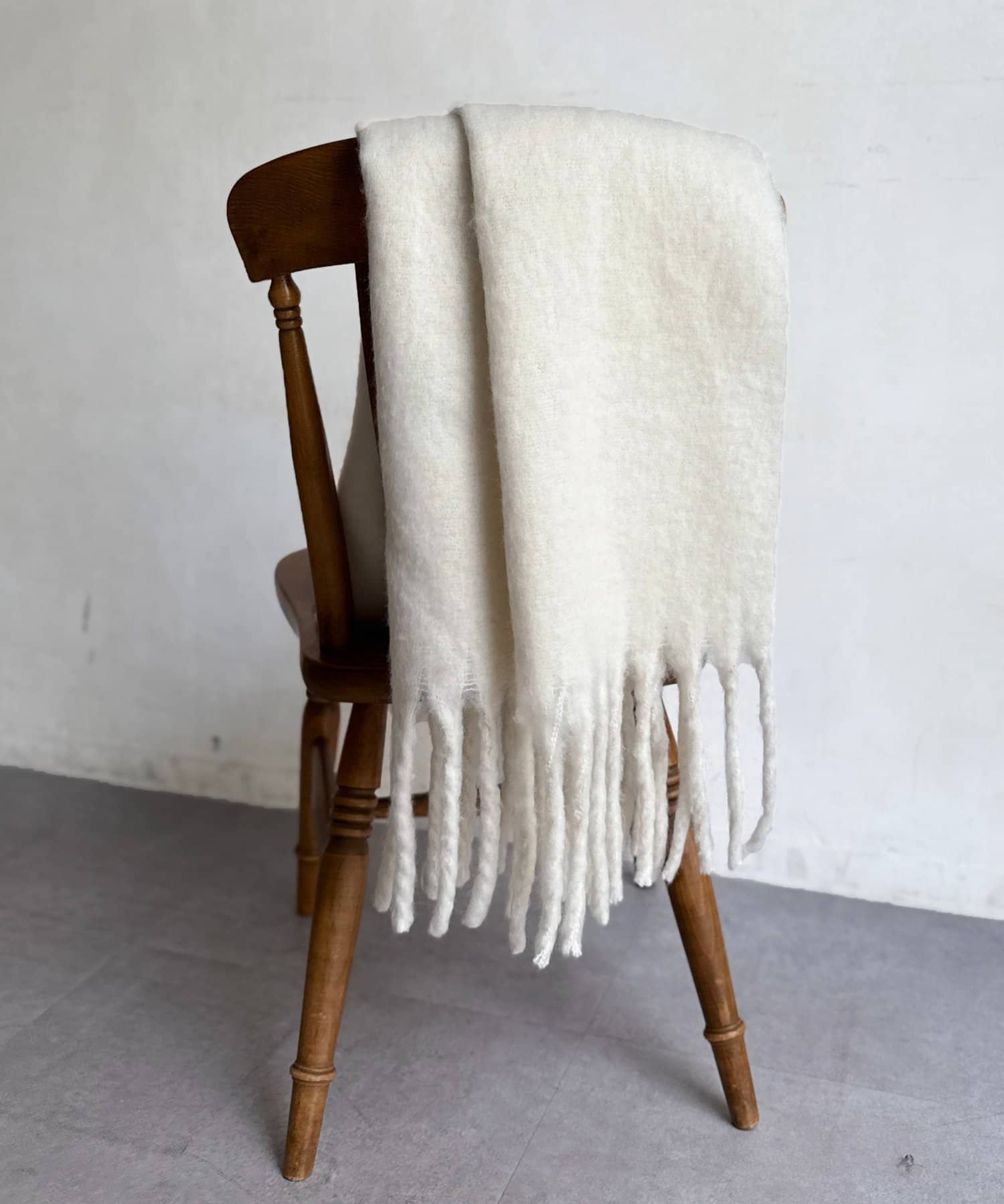 太めに編まれたフリンジがアクセントに。