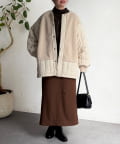 もこもことした温かみのあるボアはボタンを閉めて着ていただくと寒さ対策にも◎