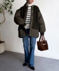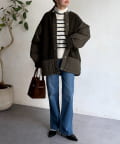 • Chez toi(シェトワ) ボア×ストライプキルティングコート