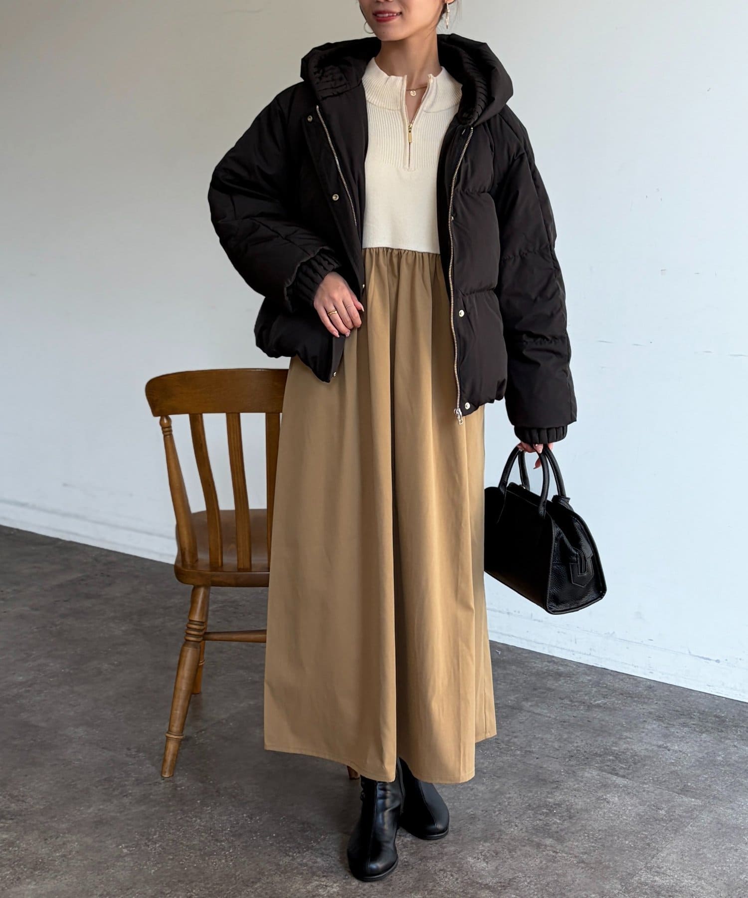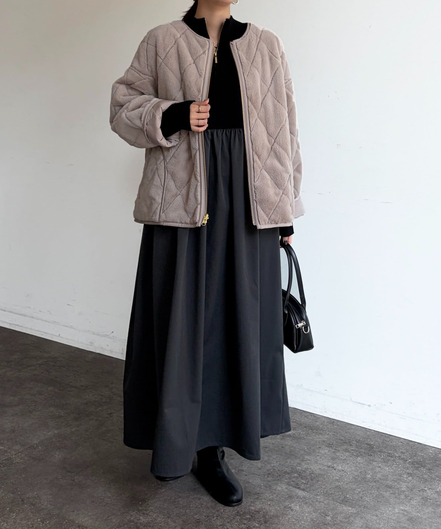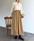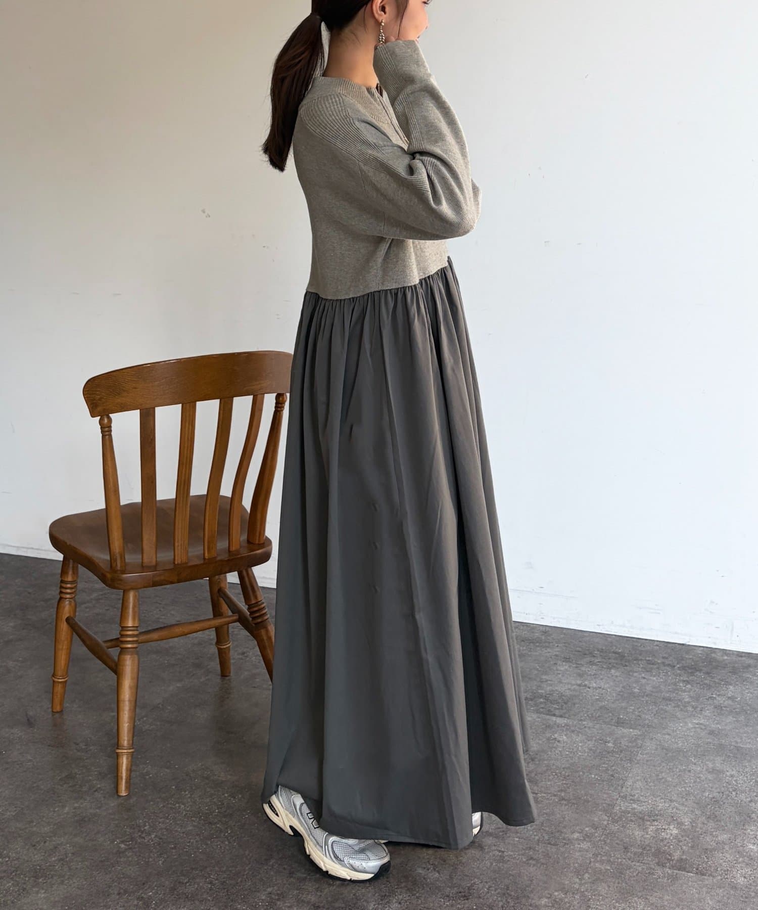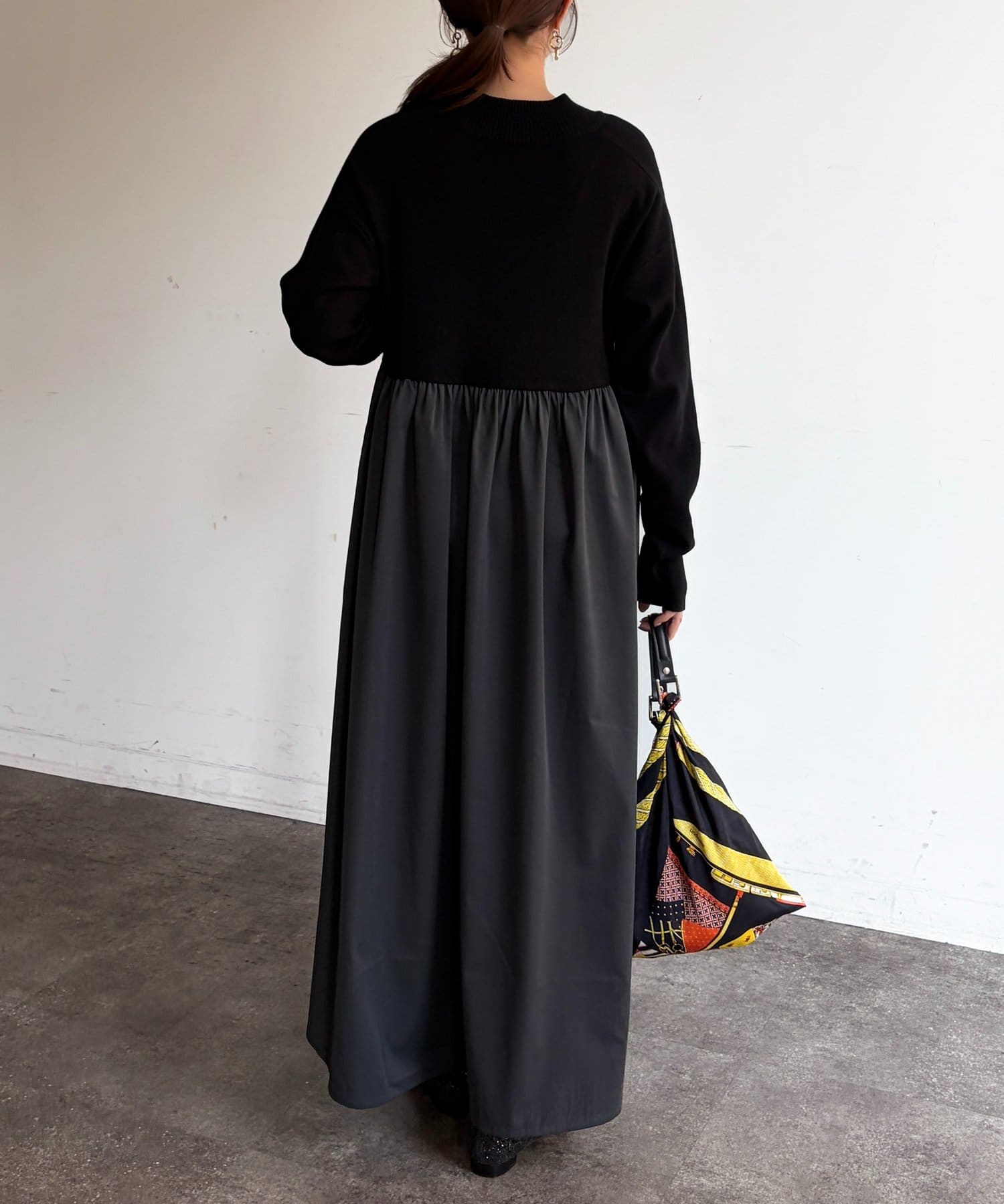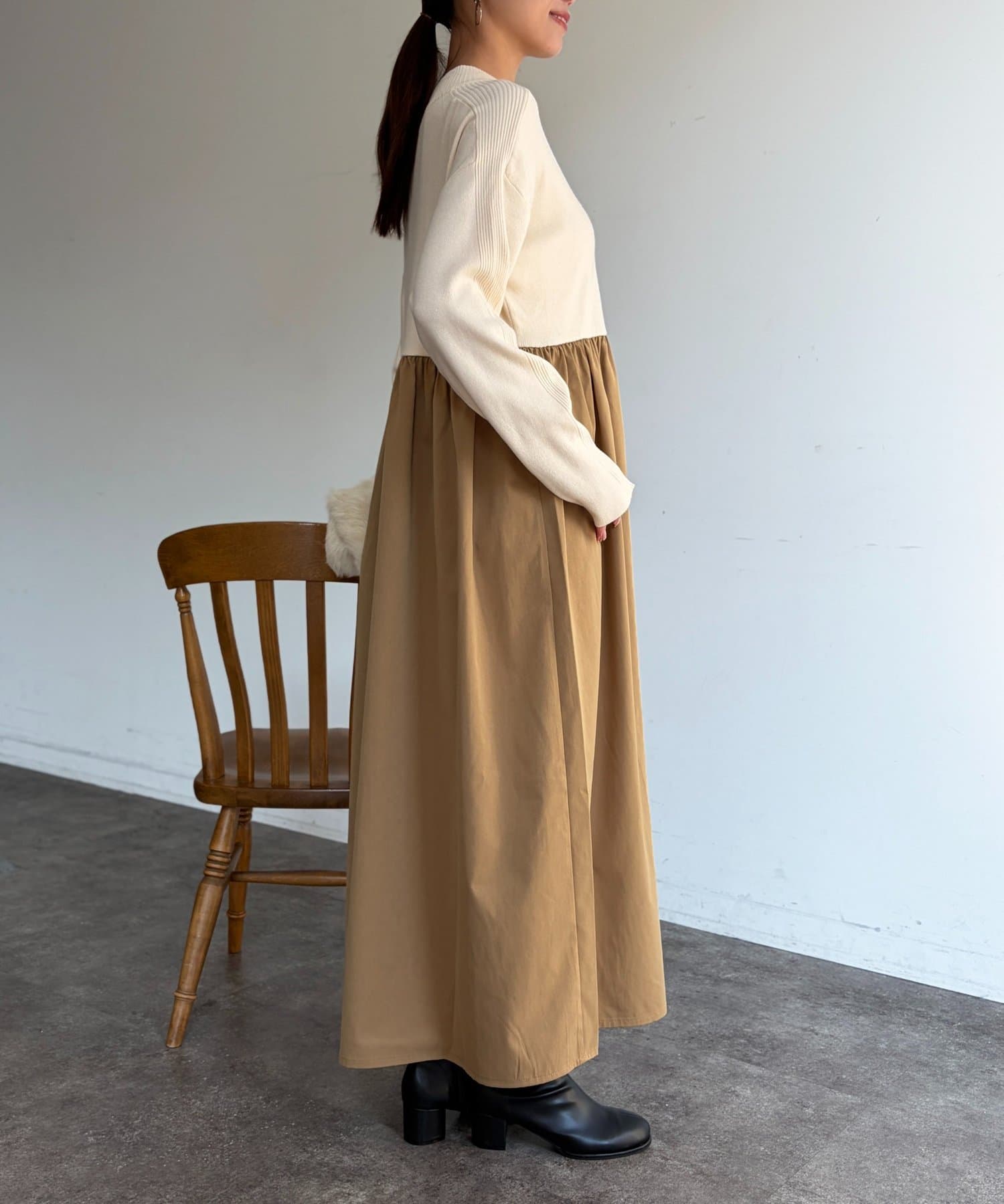 異素材の組合せがこなれ感を演出してくれるワンピース。