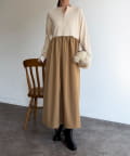 上身頃のニット部分は肌触りの良い生地感で伸縮性も良くストレスフリーな着心地です!