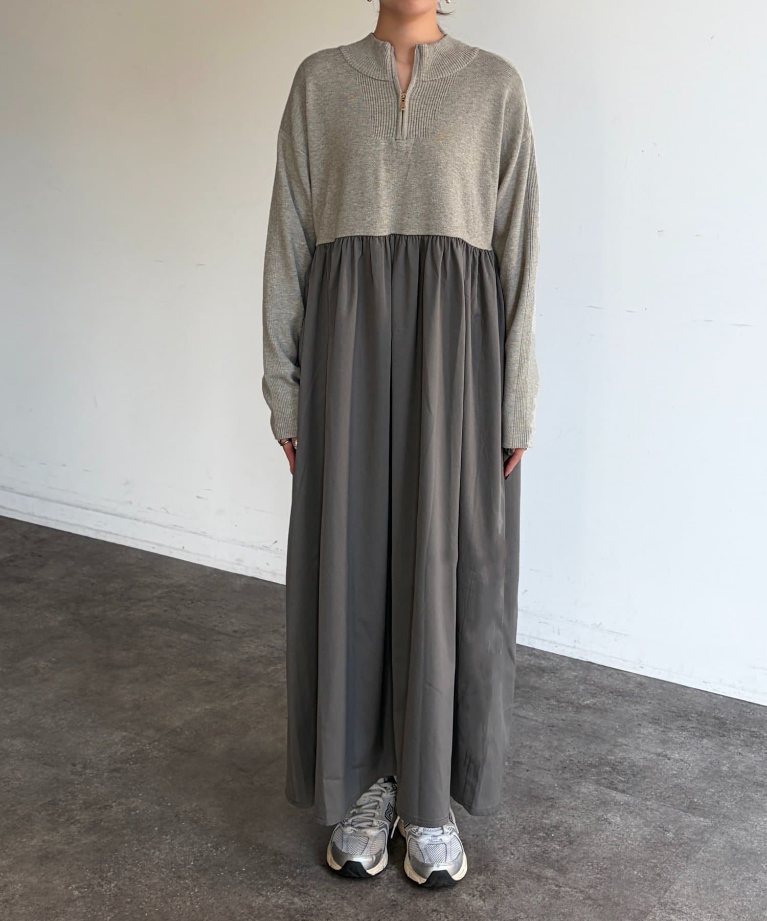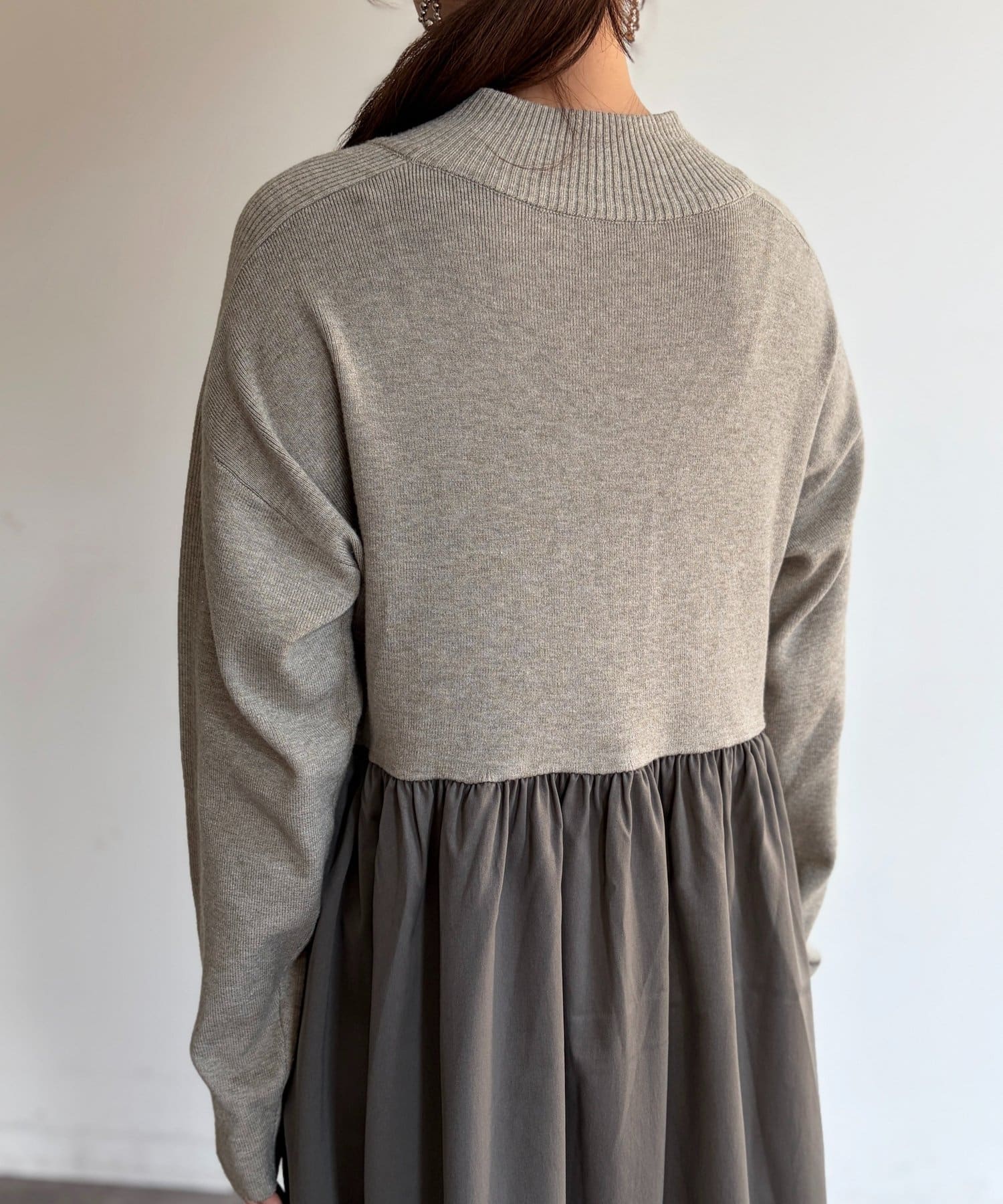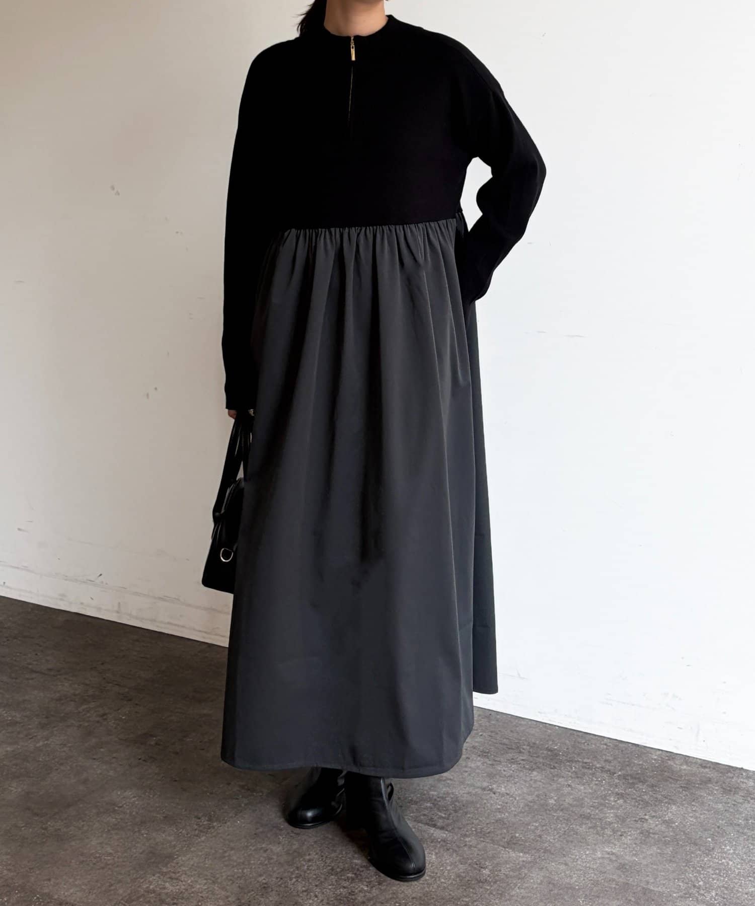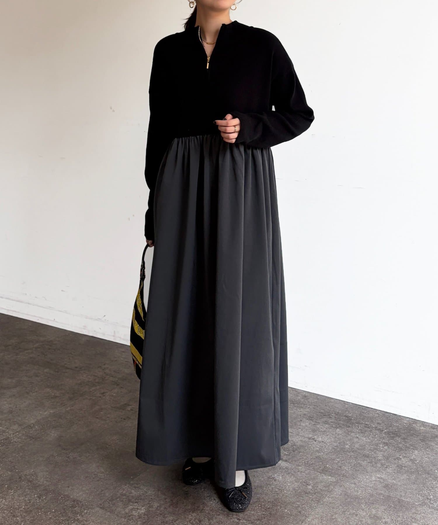 • Chez toi(シェトワ) 異素材ドッキングハーフジップワンピース