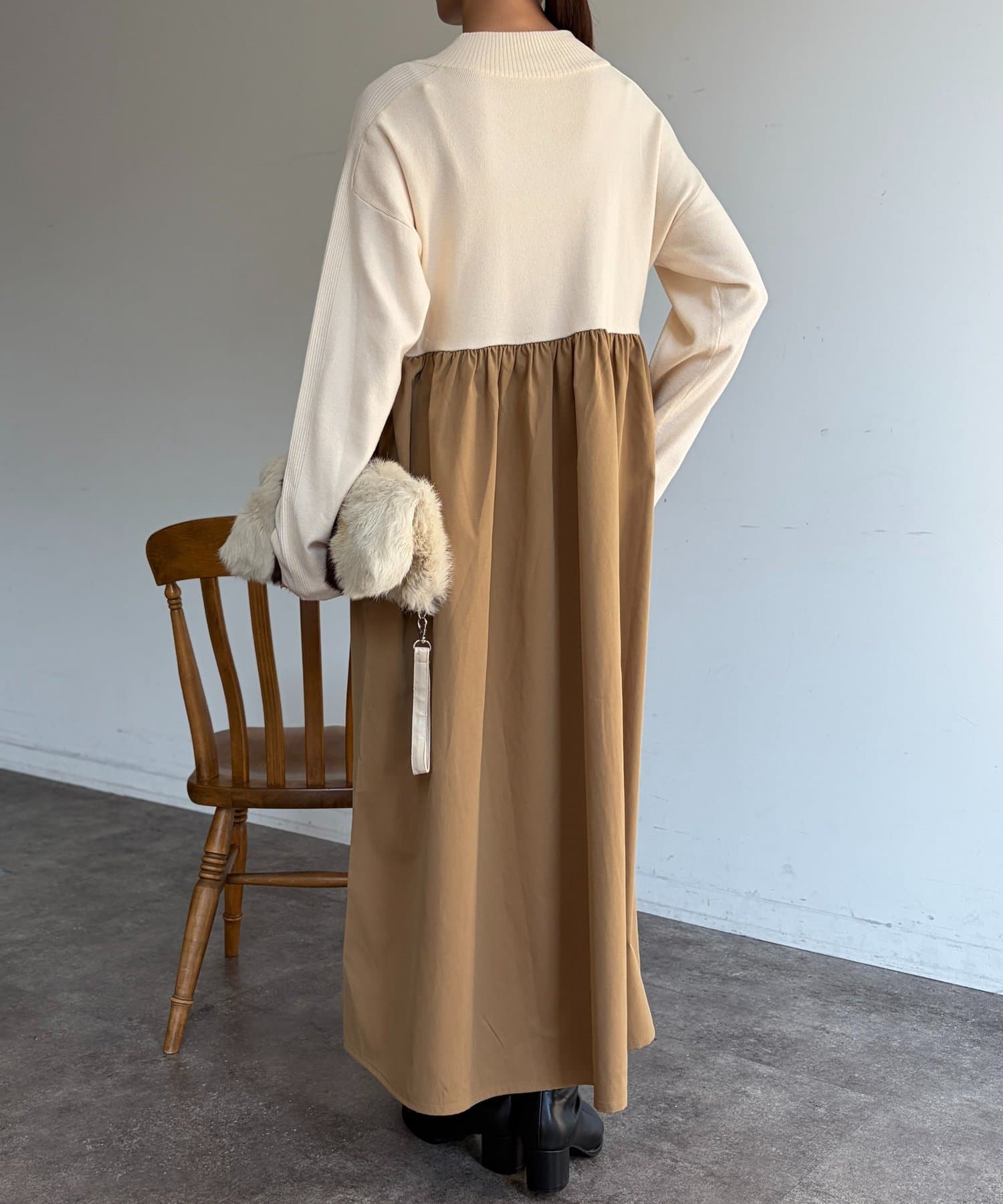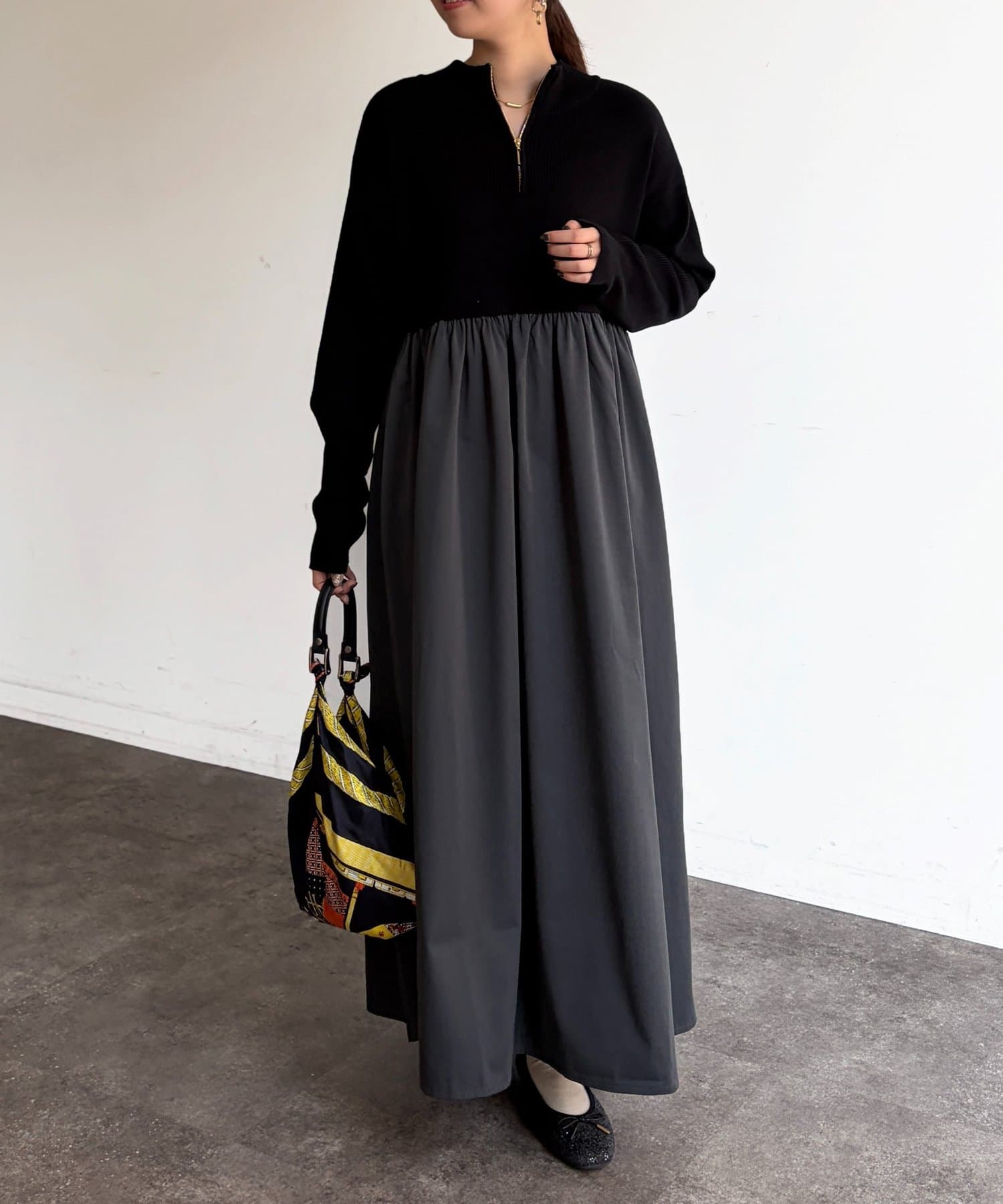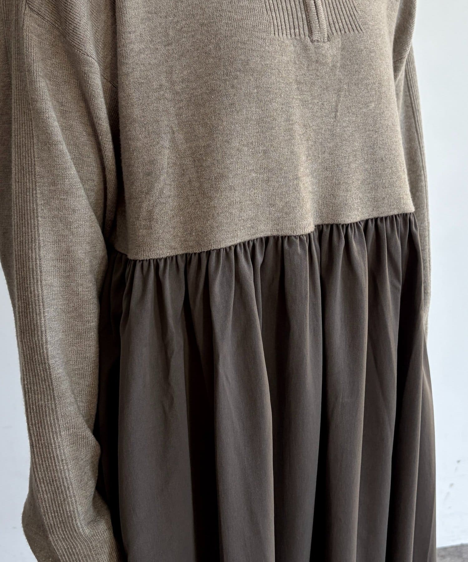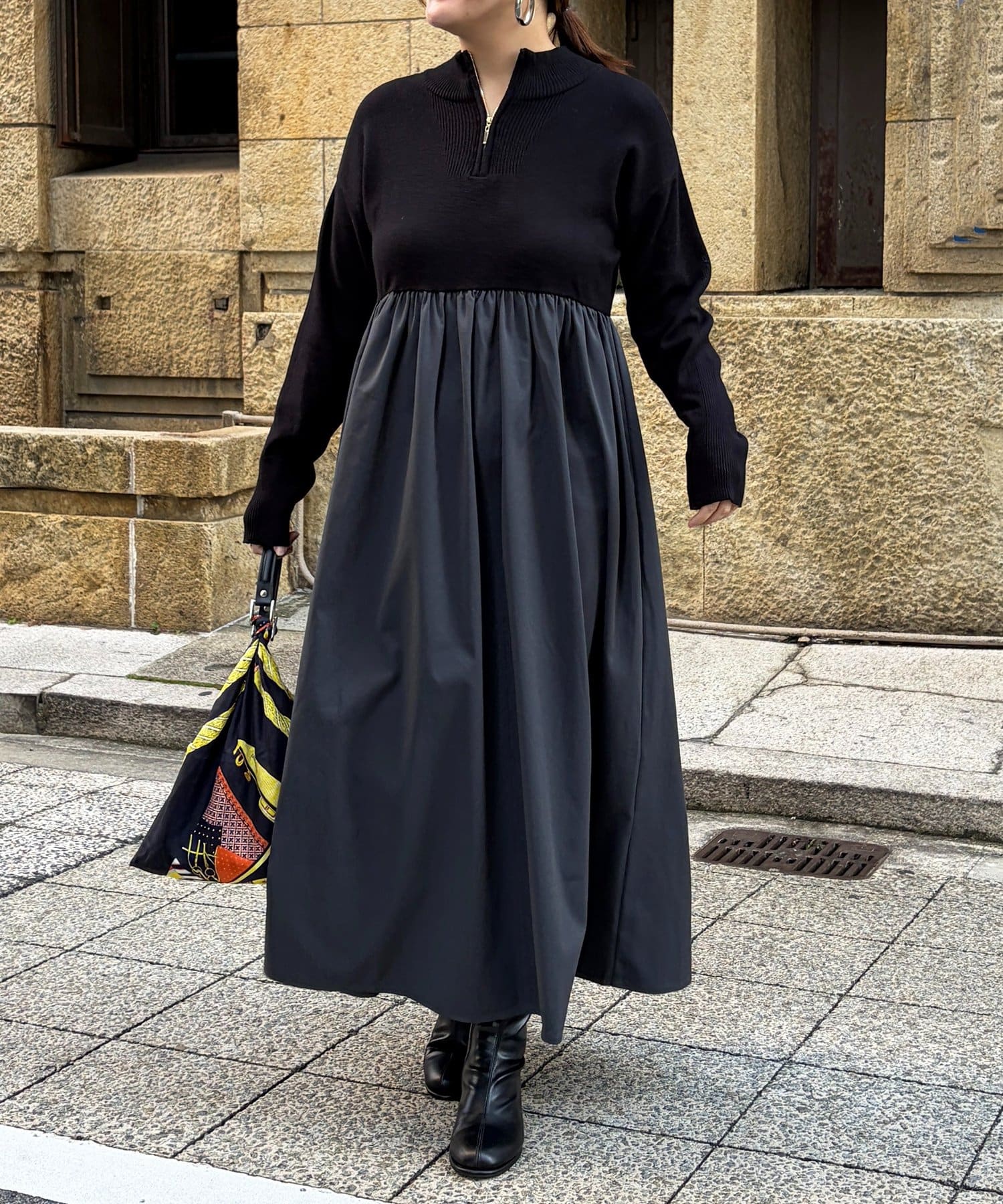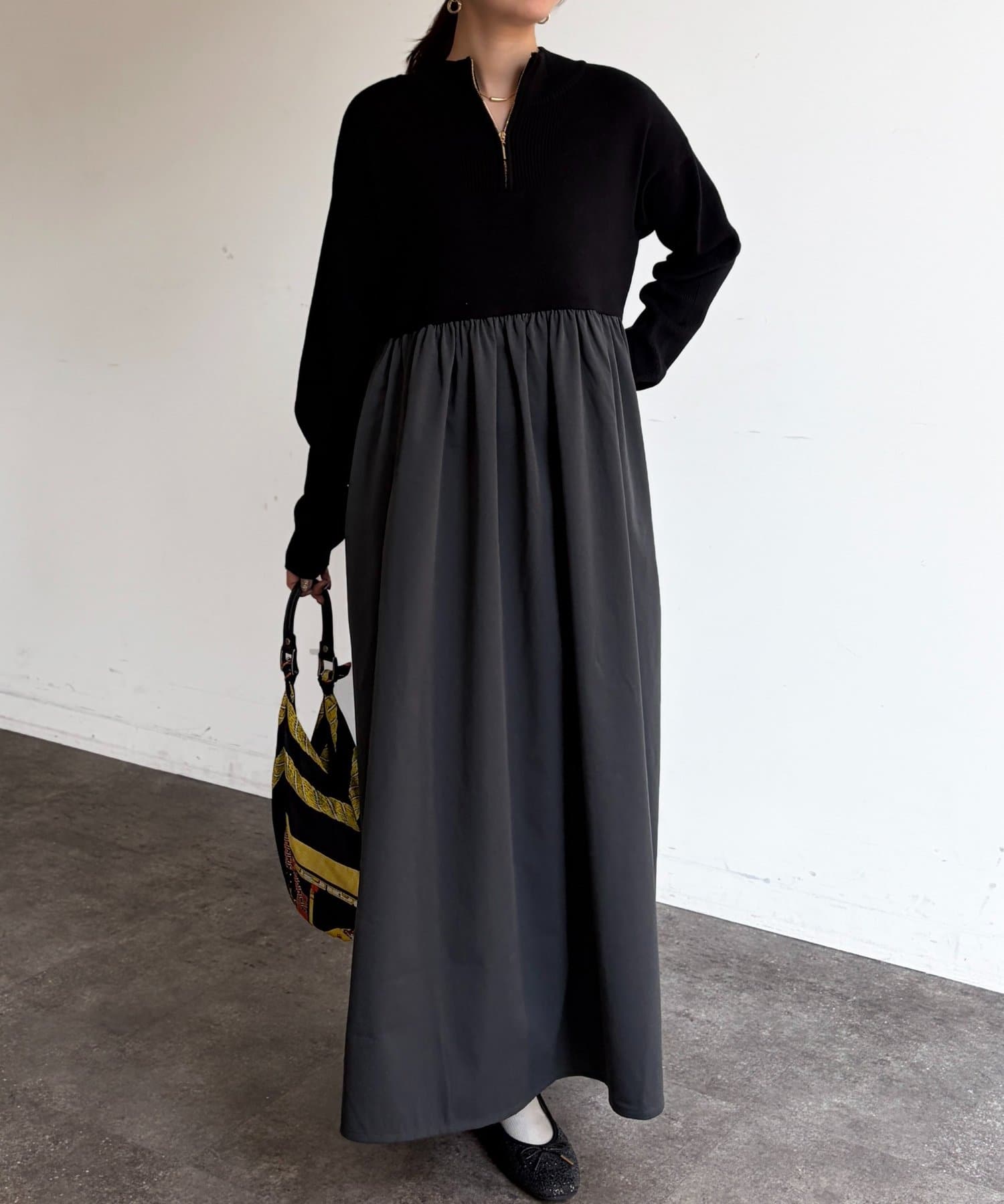• Chez toi(シェトワ) 異素材ドッキングハーフジップワンピース