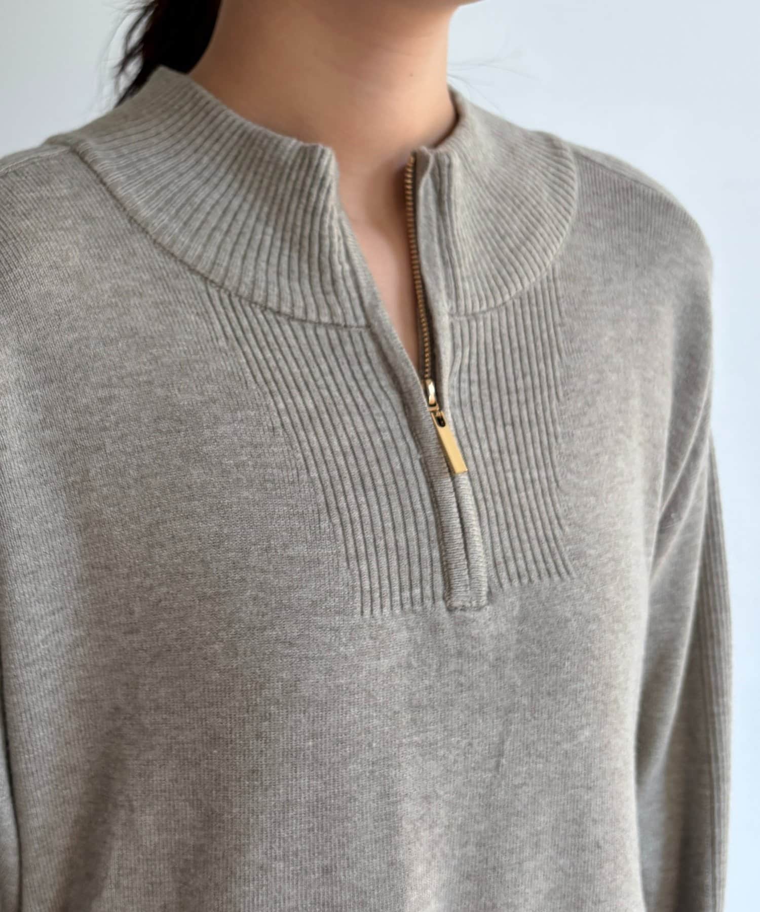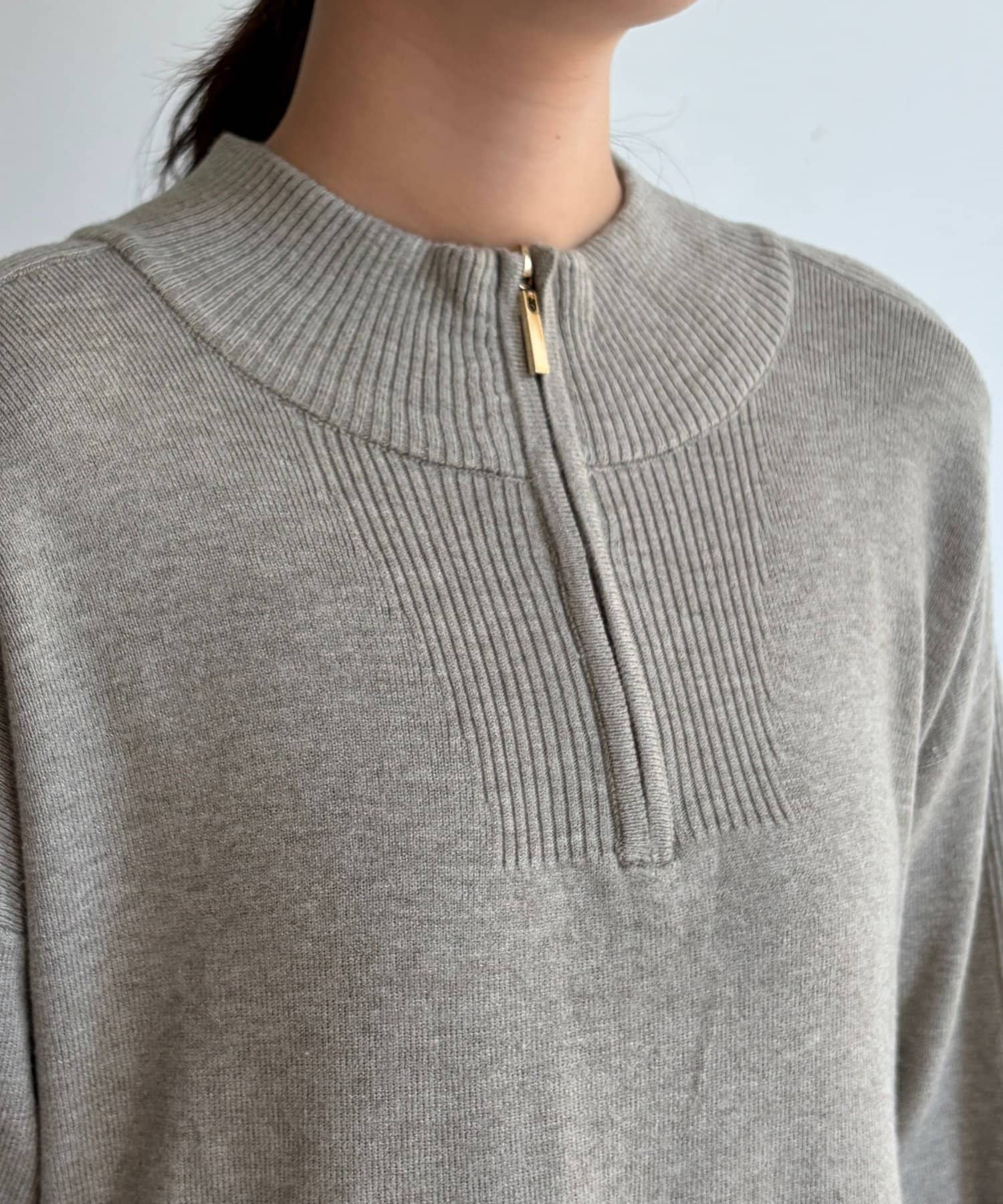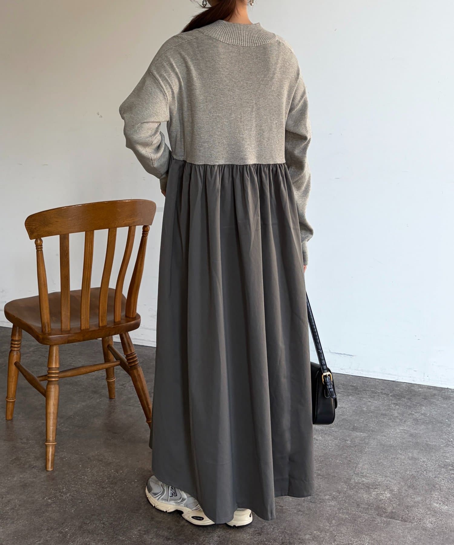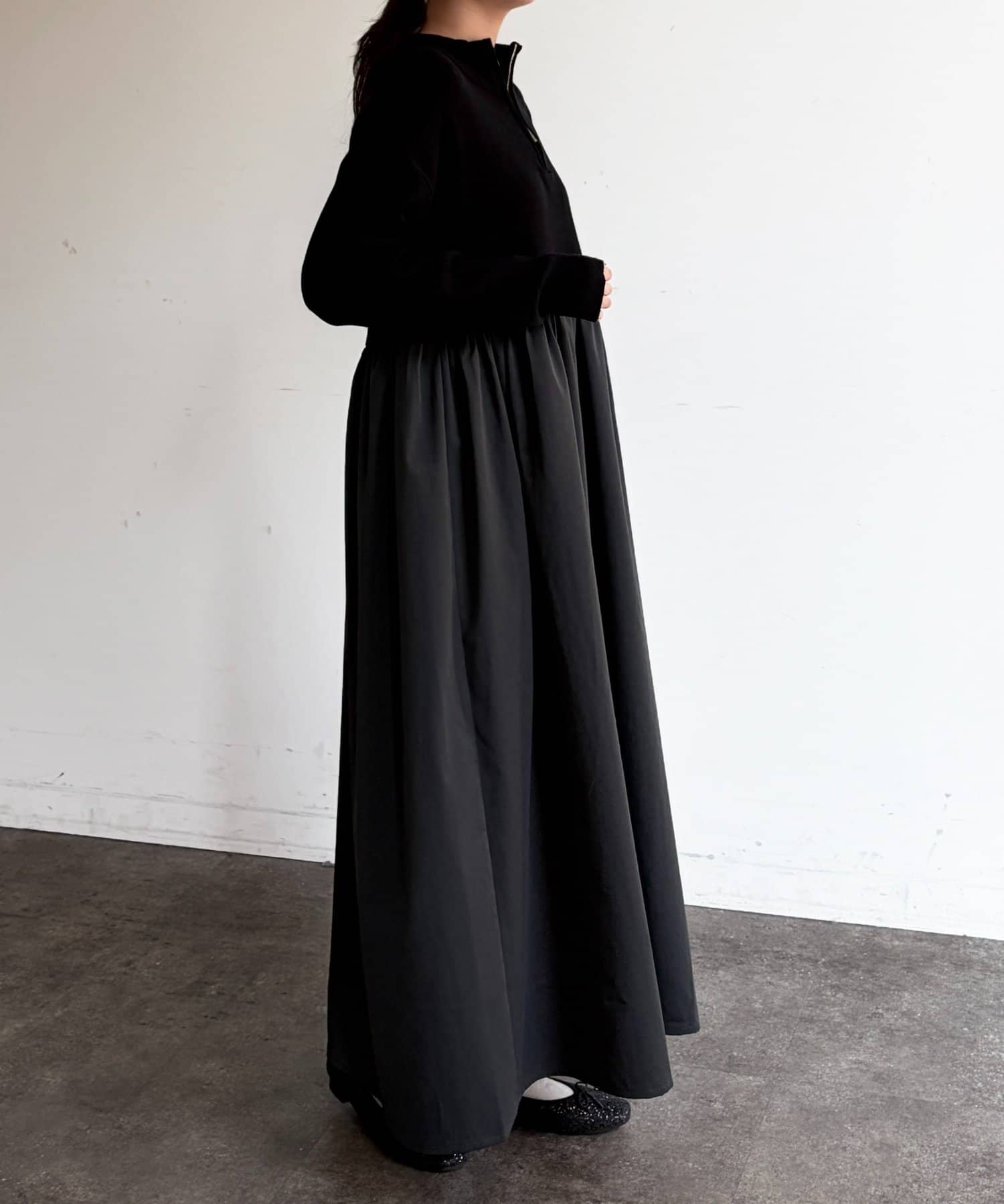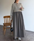 • Chez toi(シェトワ) 異素材ドッキングハーフジップワンピース