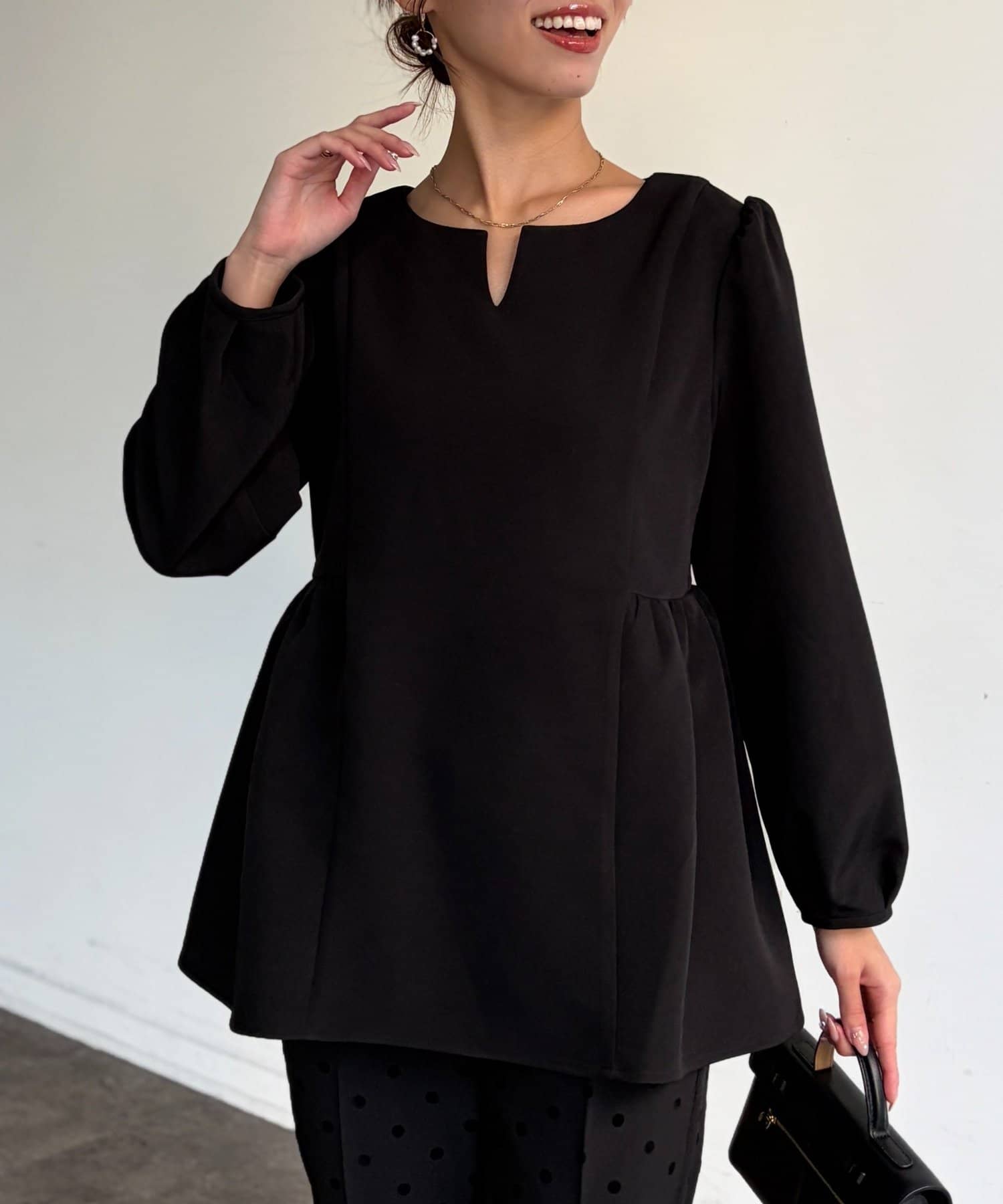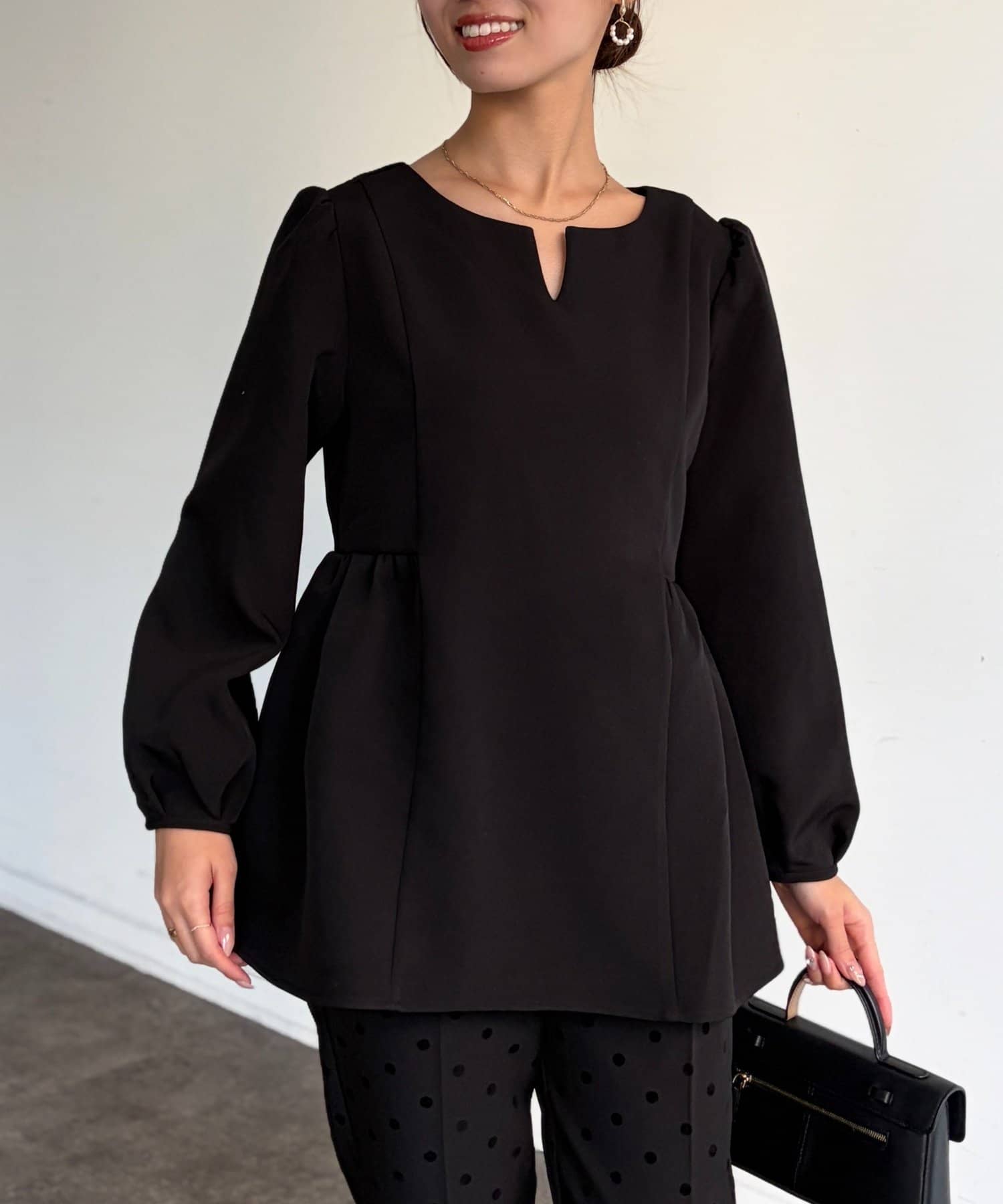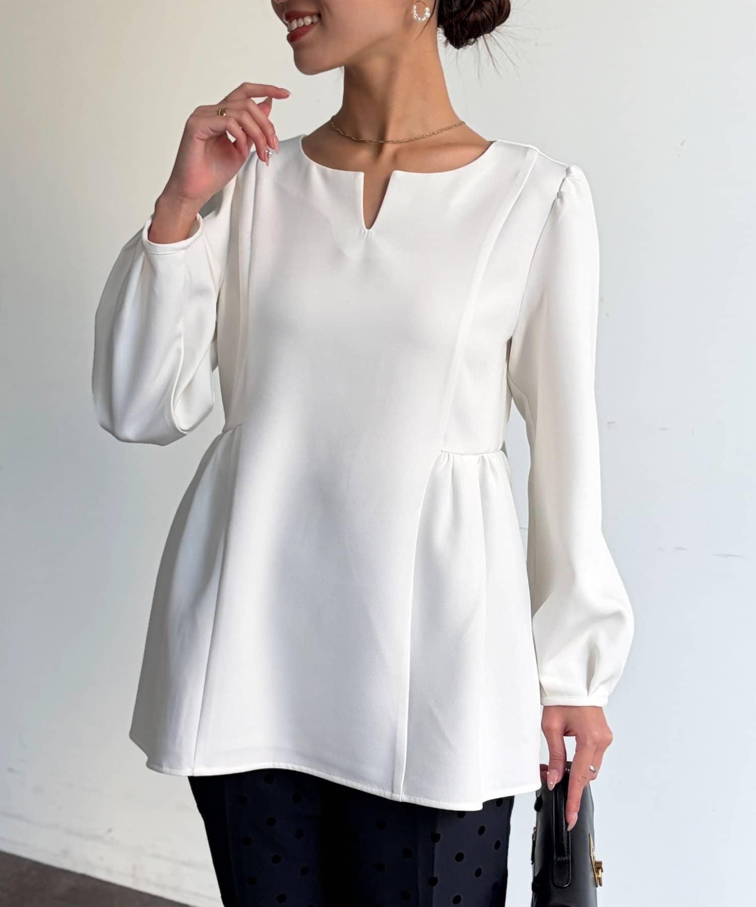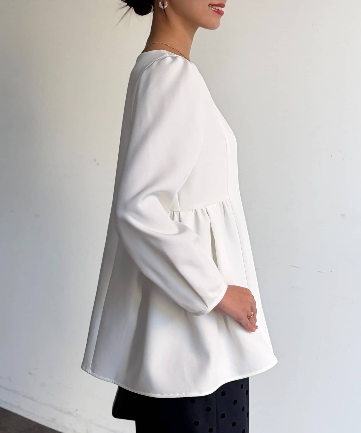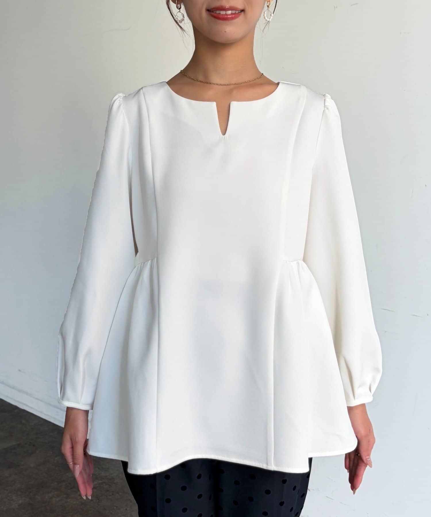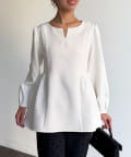 ふんわり広がるペプラムシルエットで体型カバーも叶うブラウス。