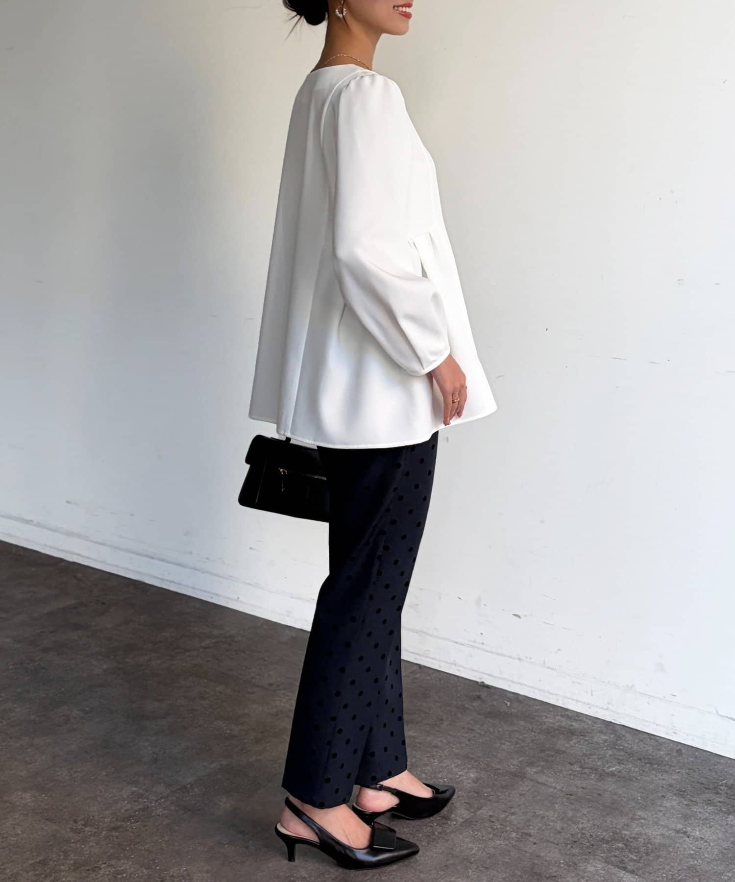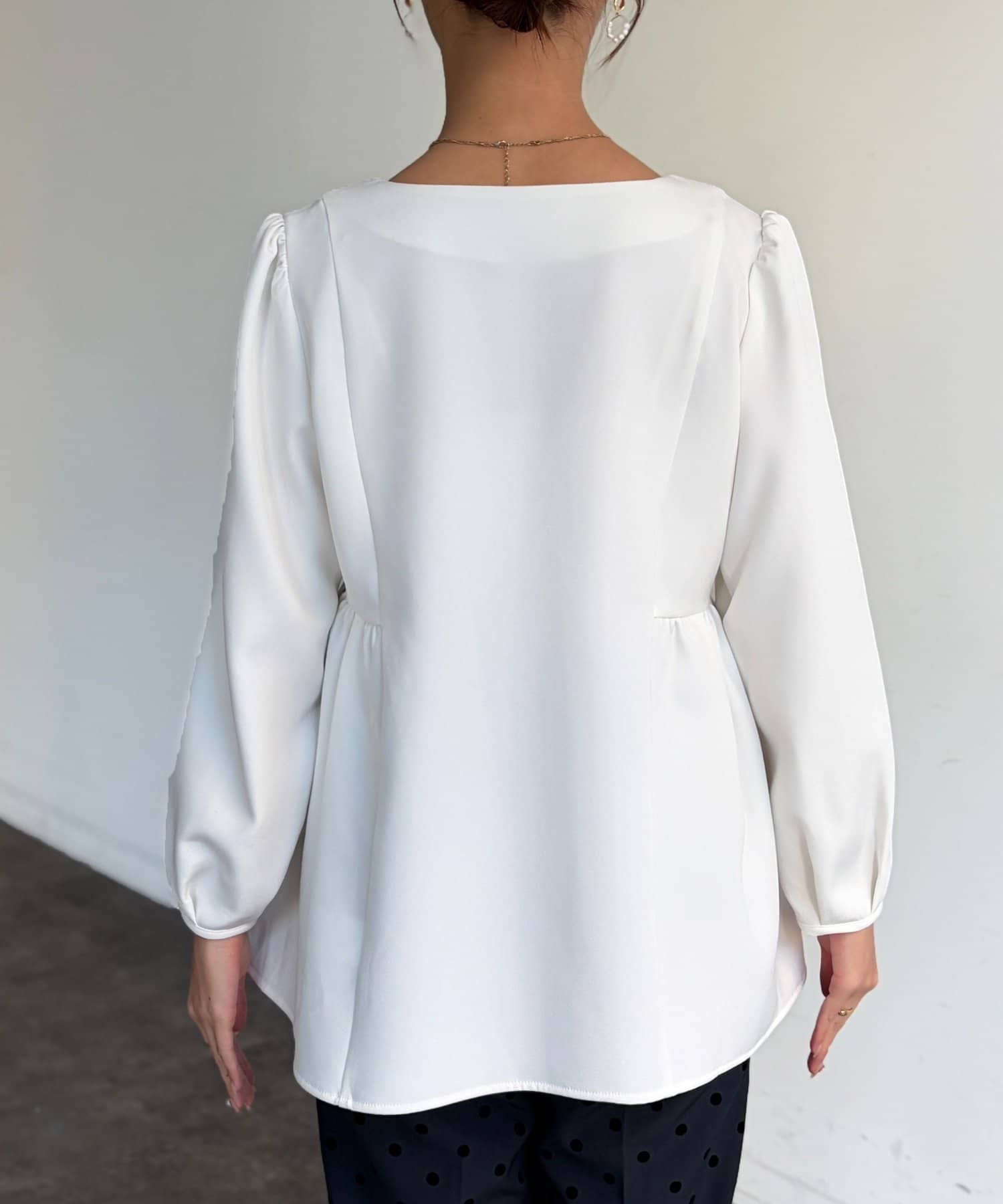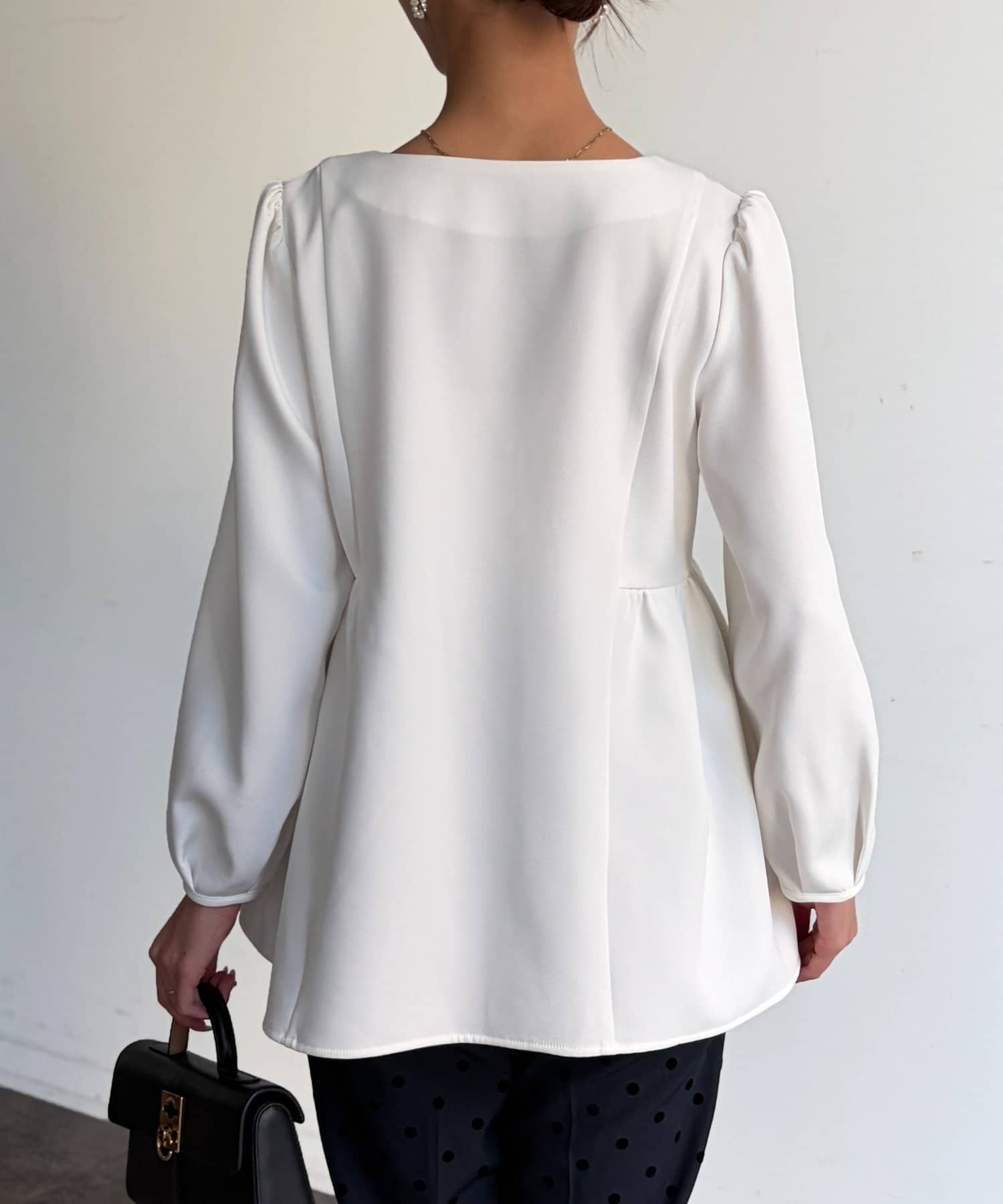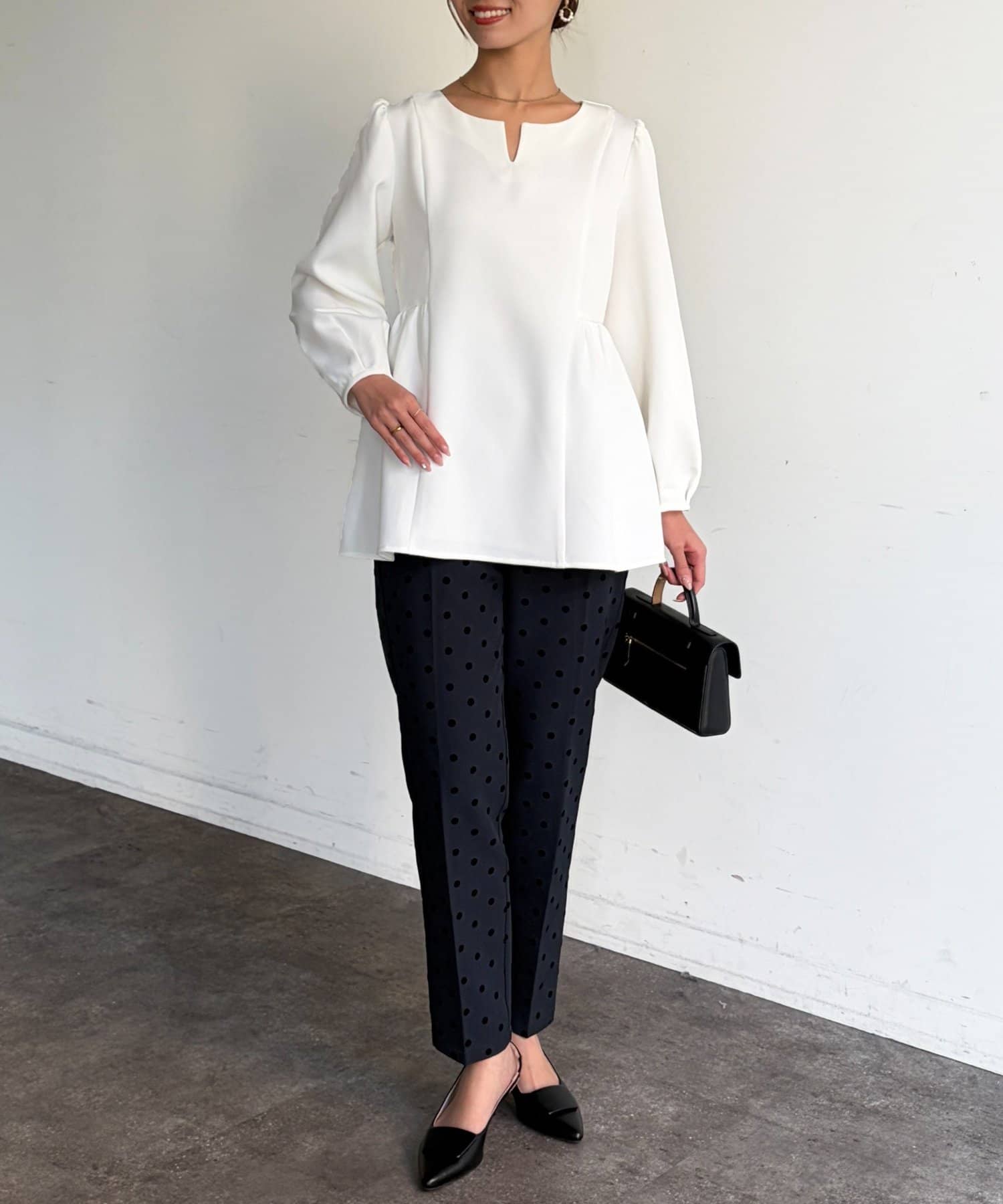 ふんわり広がるペプラムシルエットで体型カバーも叶うブラウス。