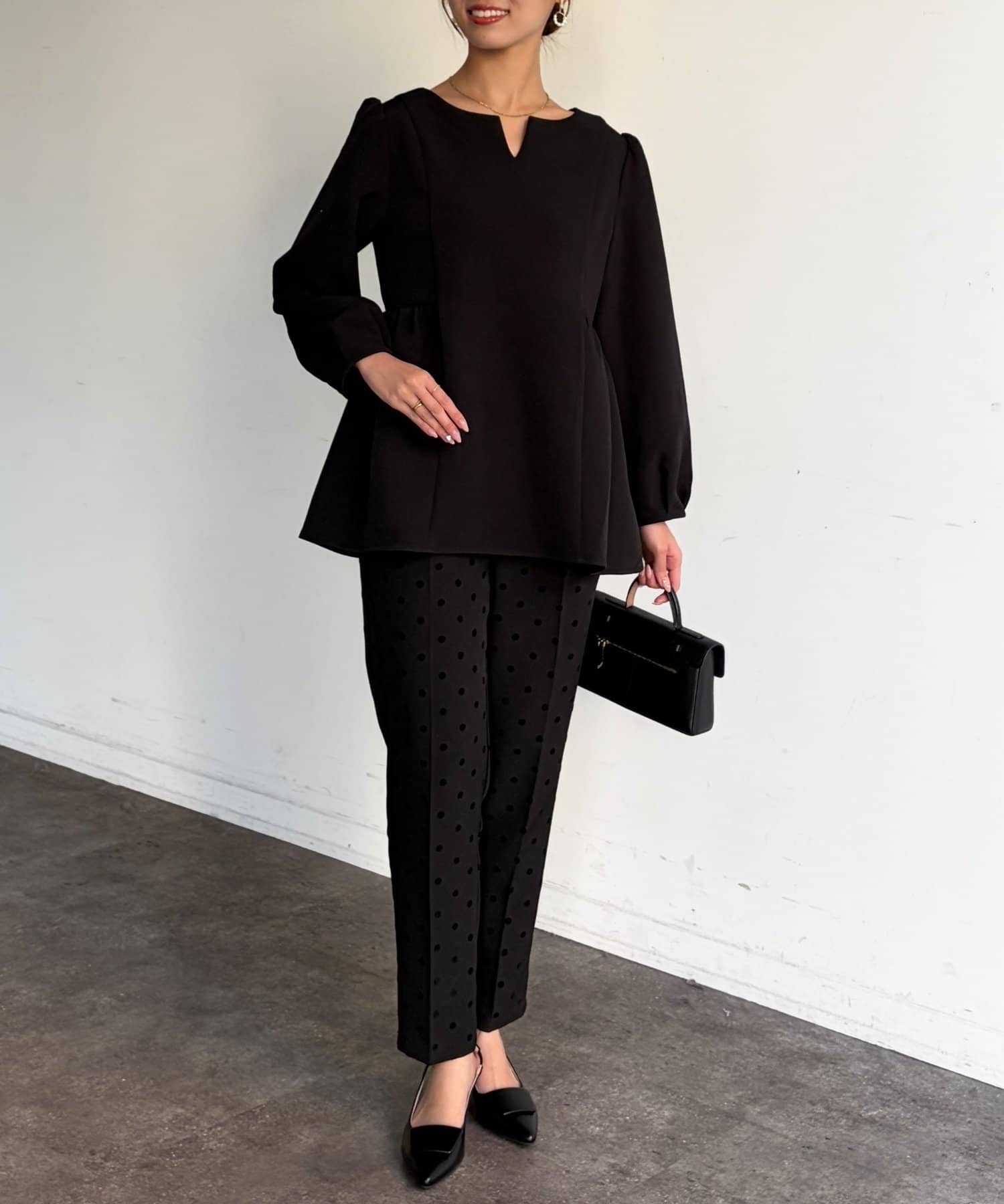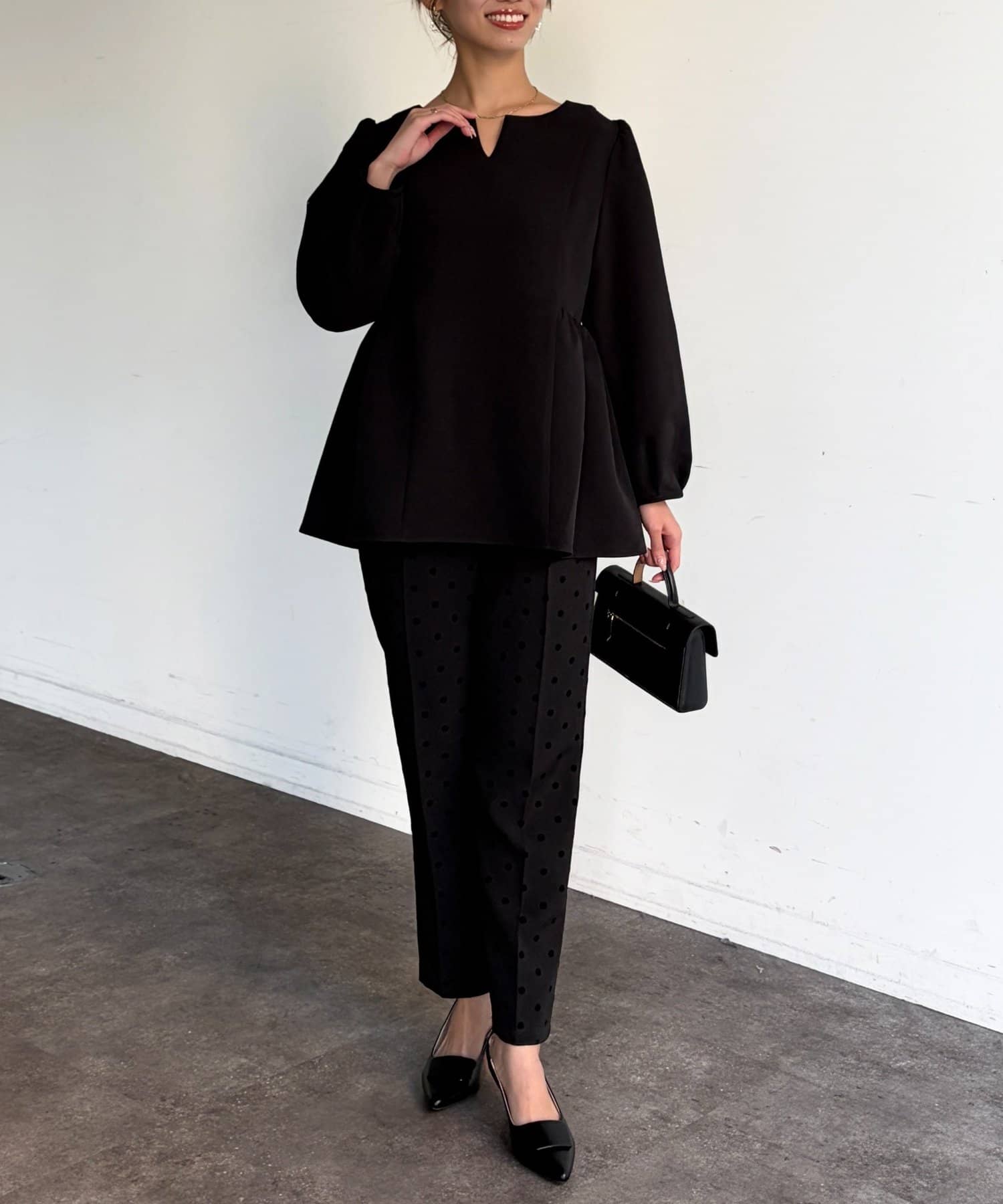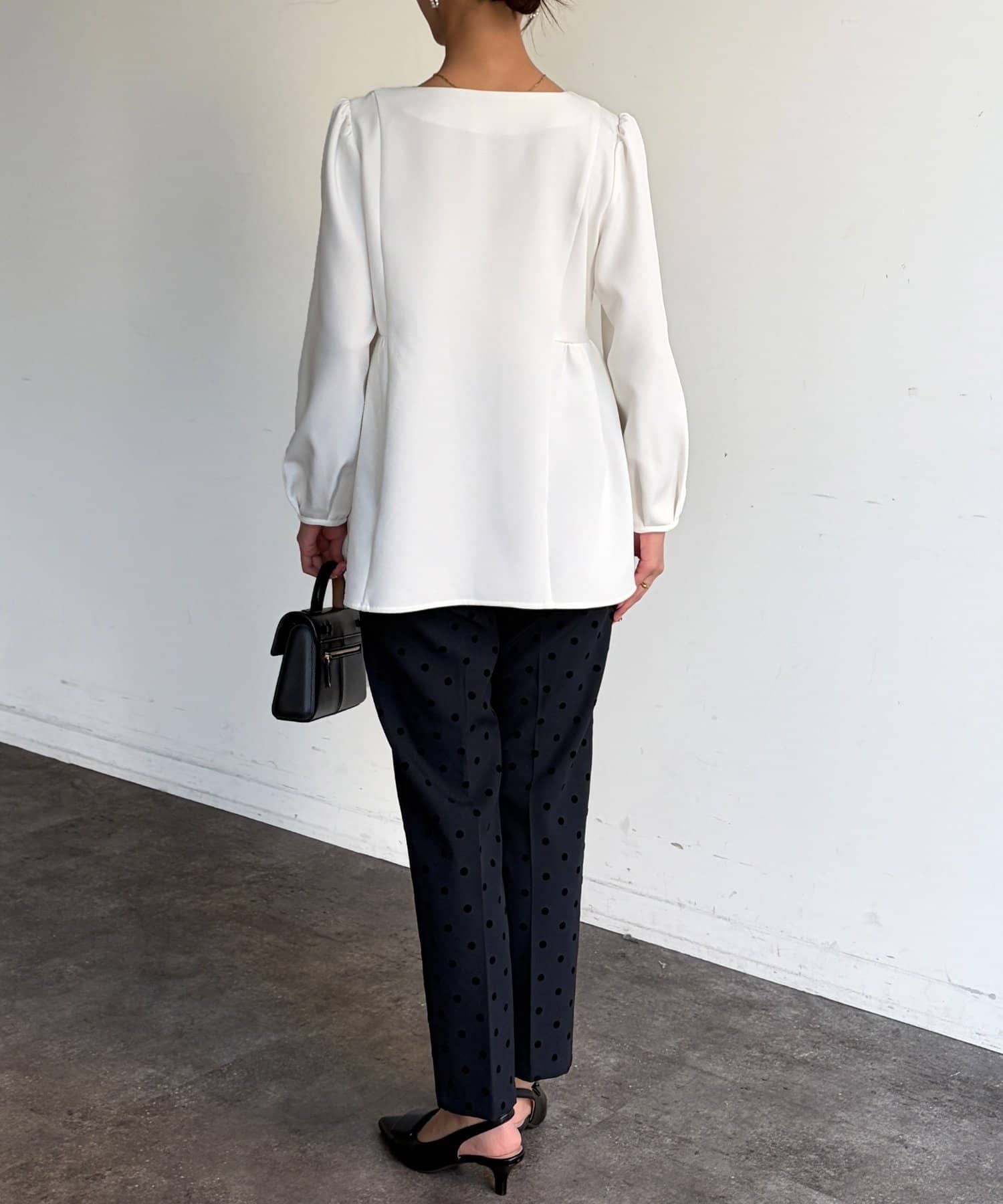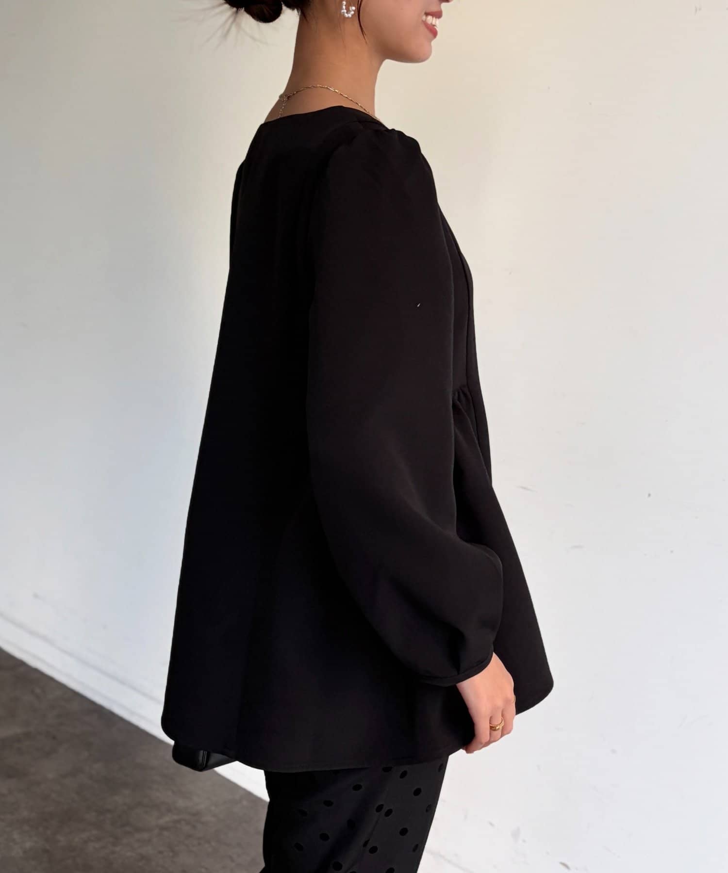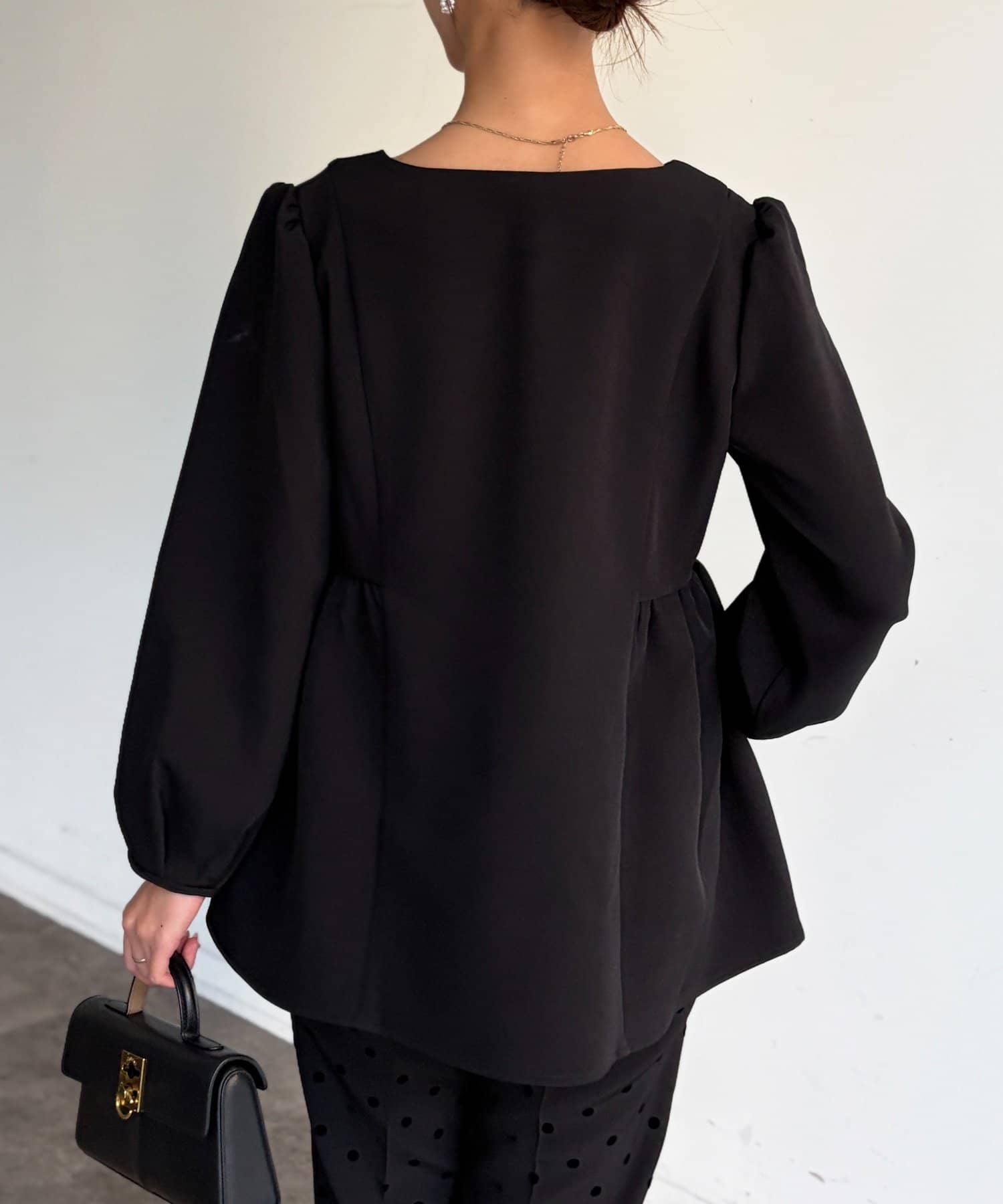 ふんわり広がるペプラムシルエットで体型カバーも叶うブラウス。