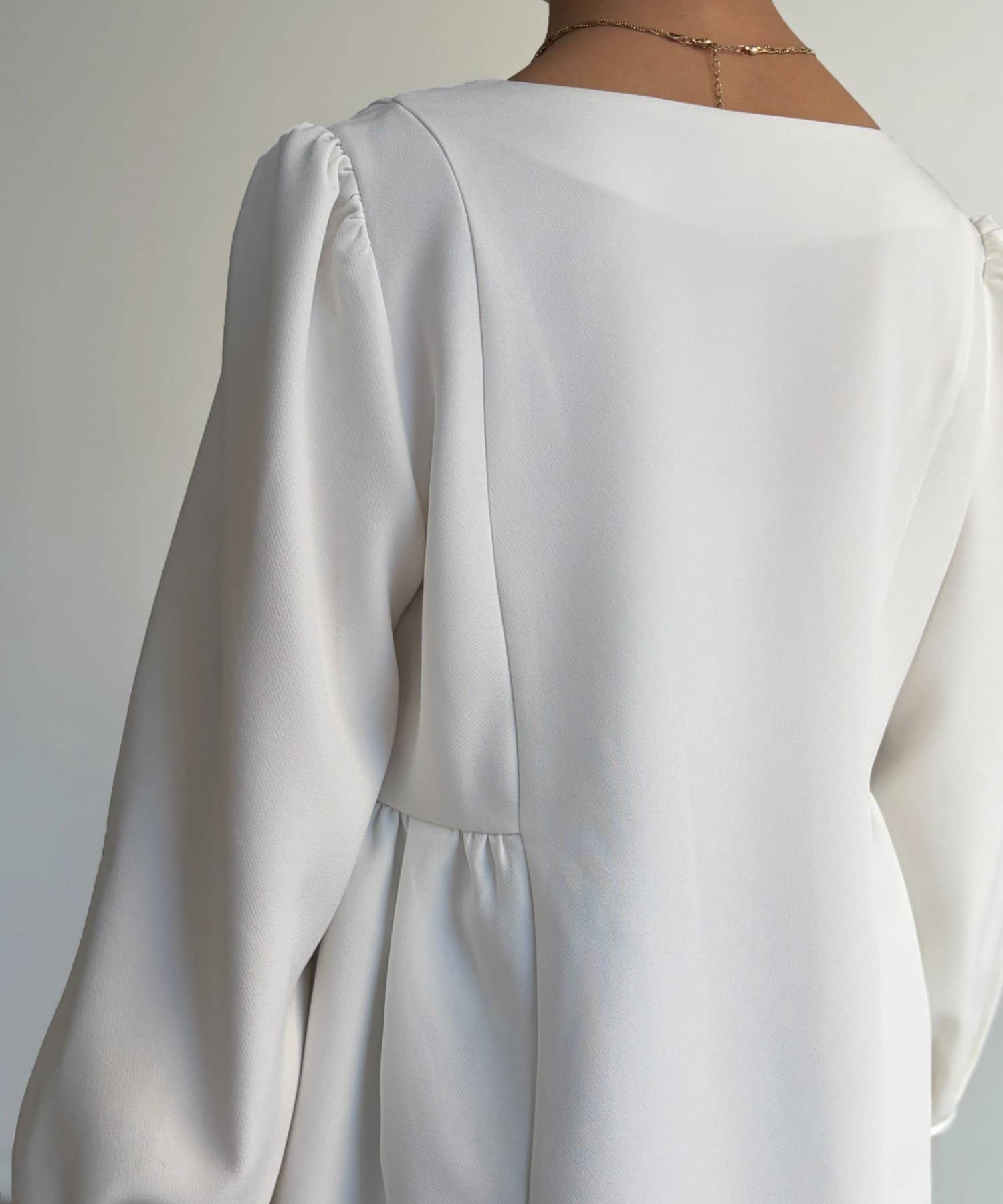 嬉しいポイント。キーネックでデコルテのシルエットもきれいに見せてくれます。