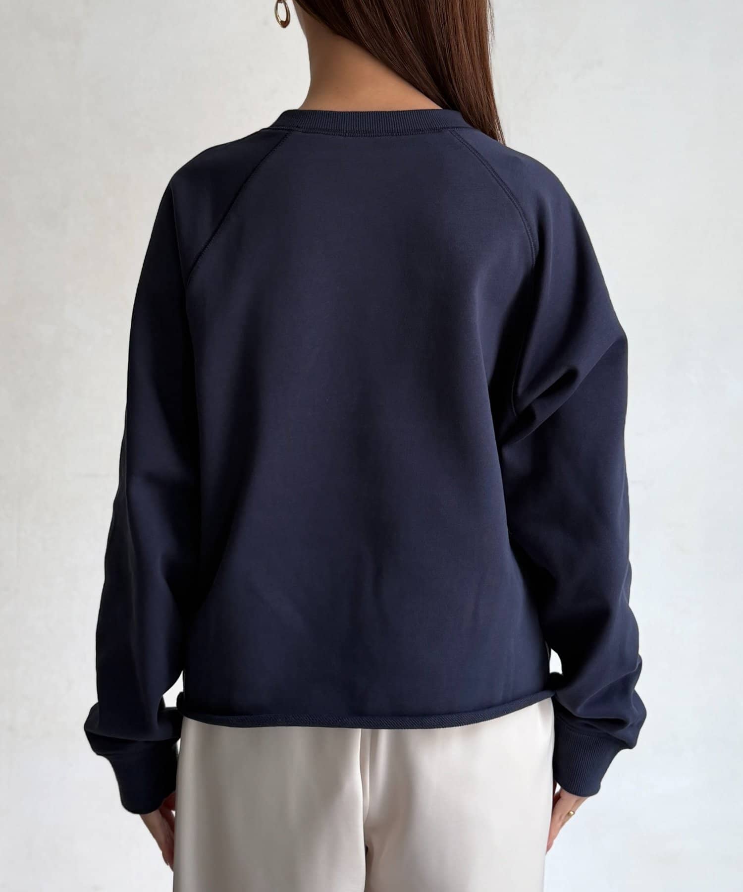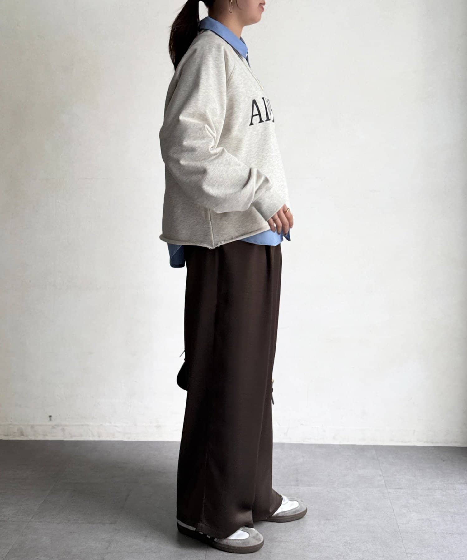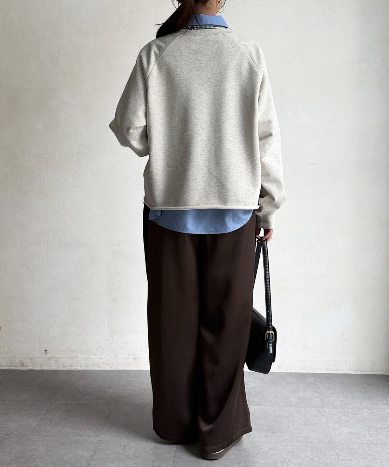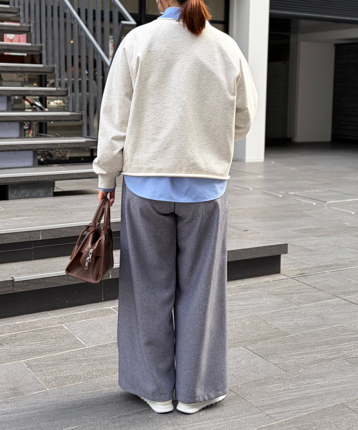 軽い生地感できれいめ見えする表面がポイントの大人スウェット。