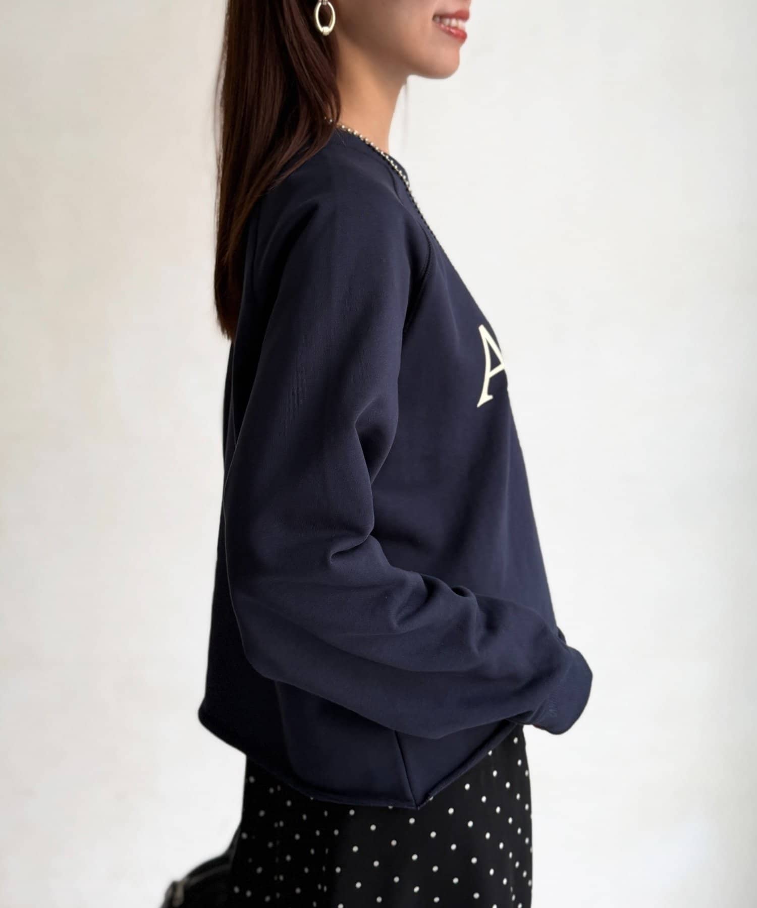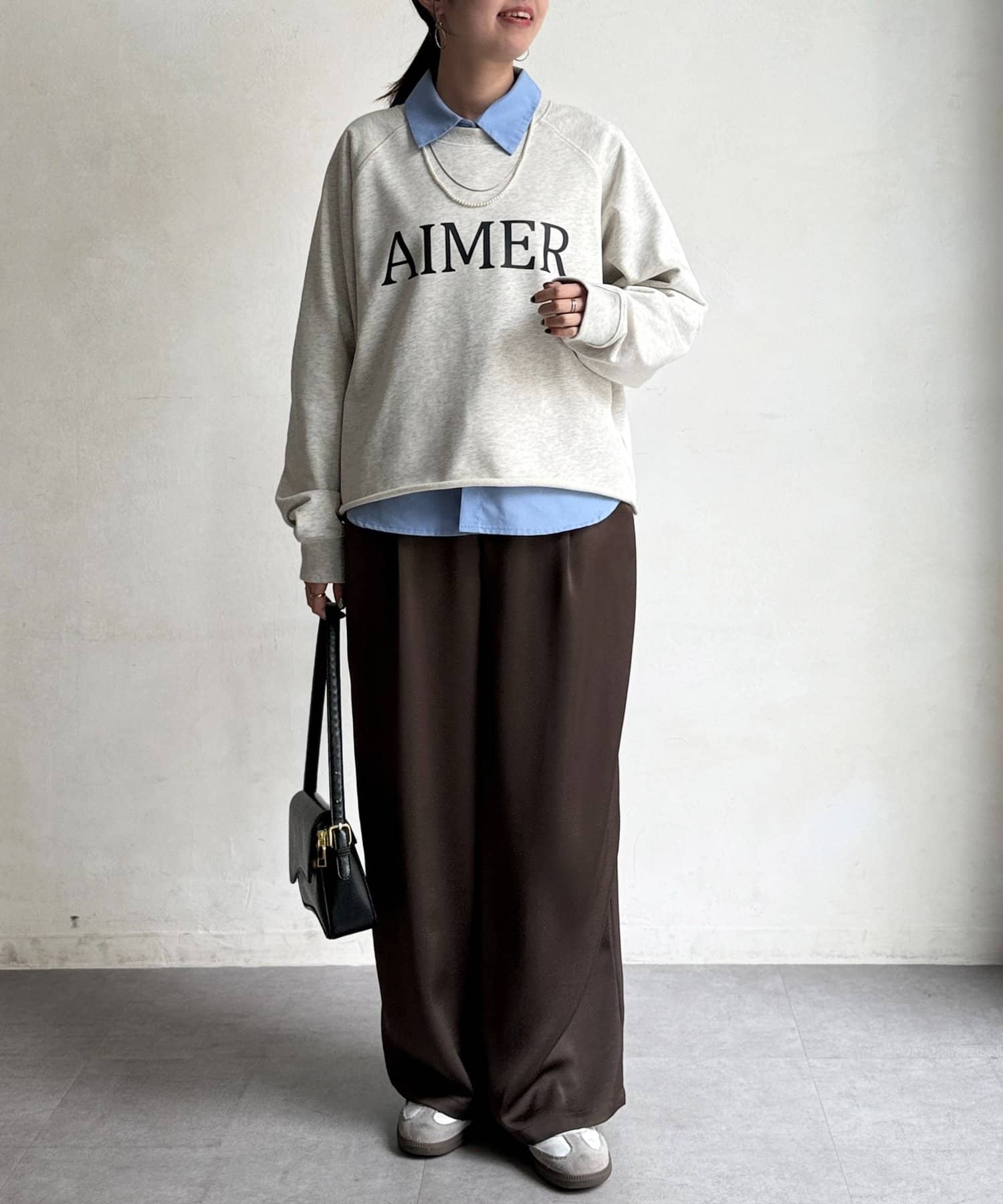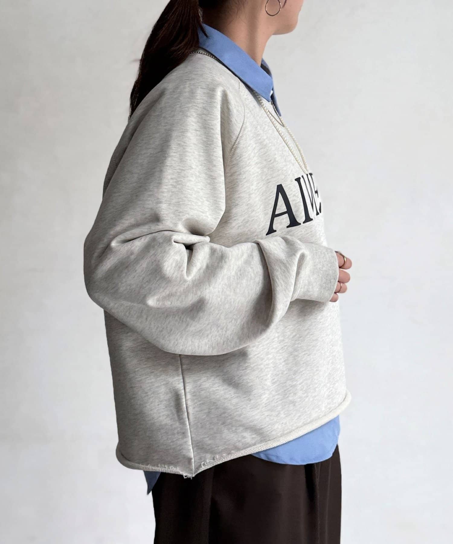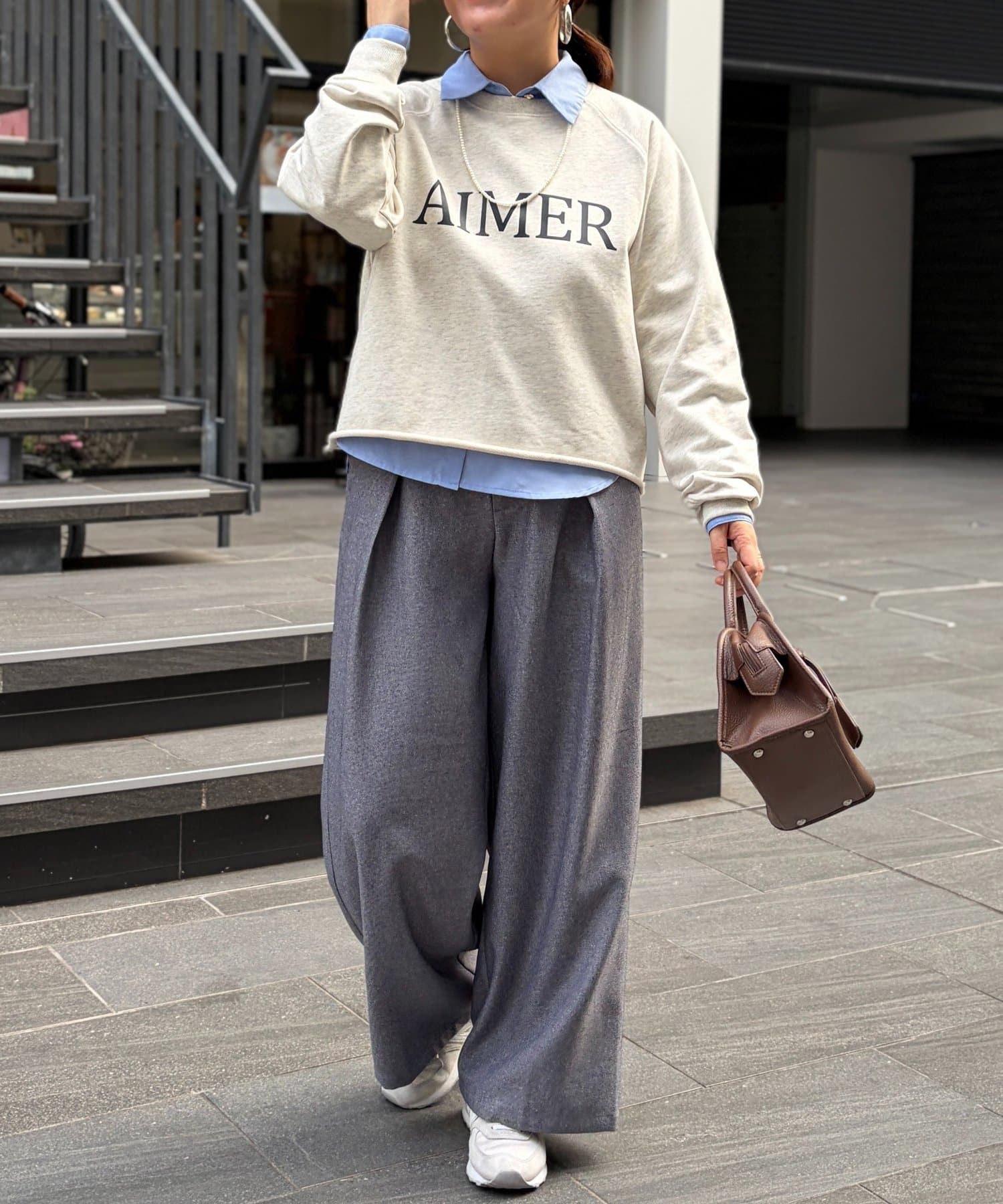 軽い生地感できれいめ見えする表面がポイントの大人スウェット。