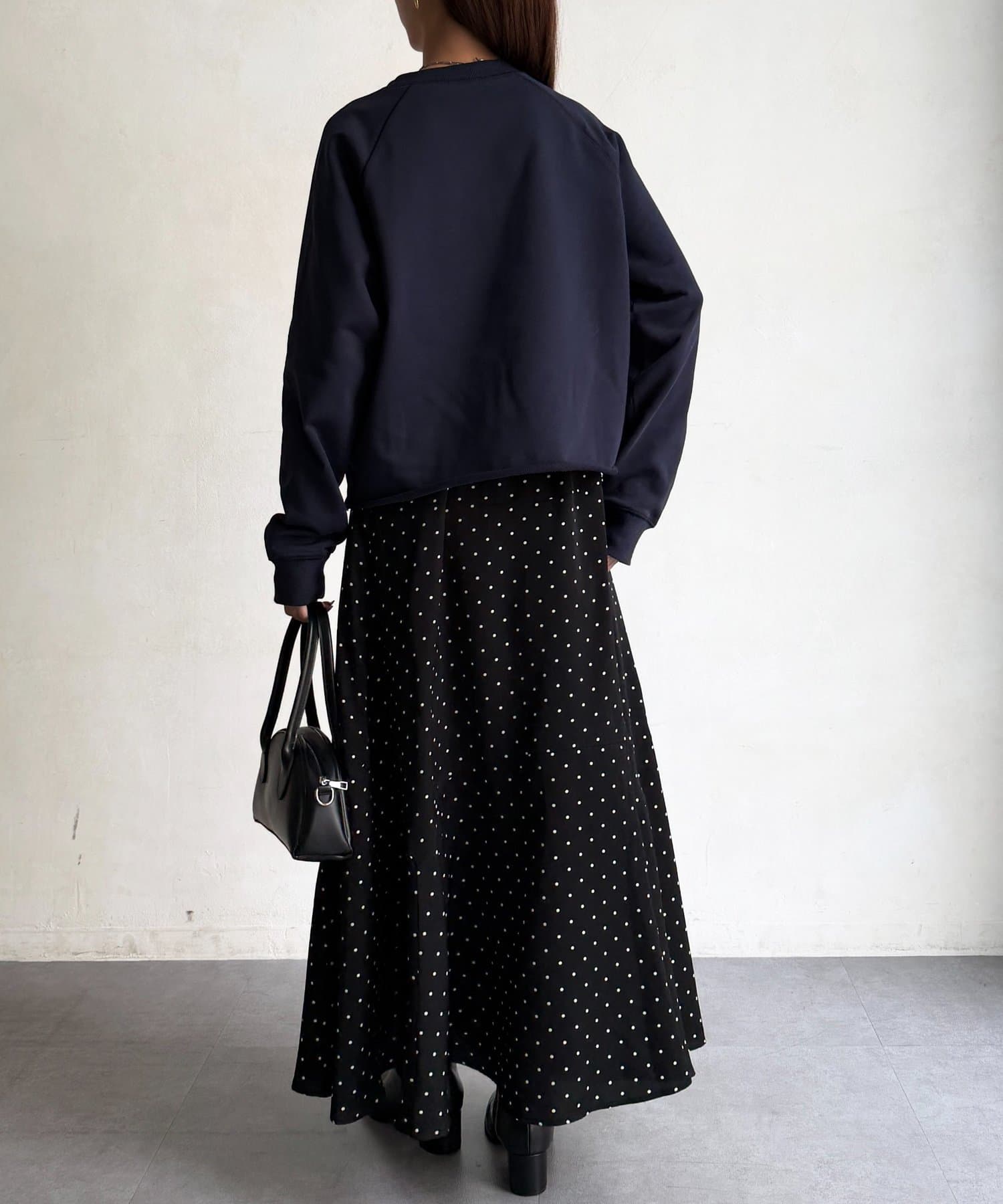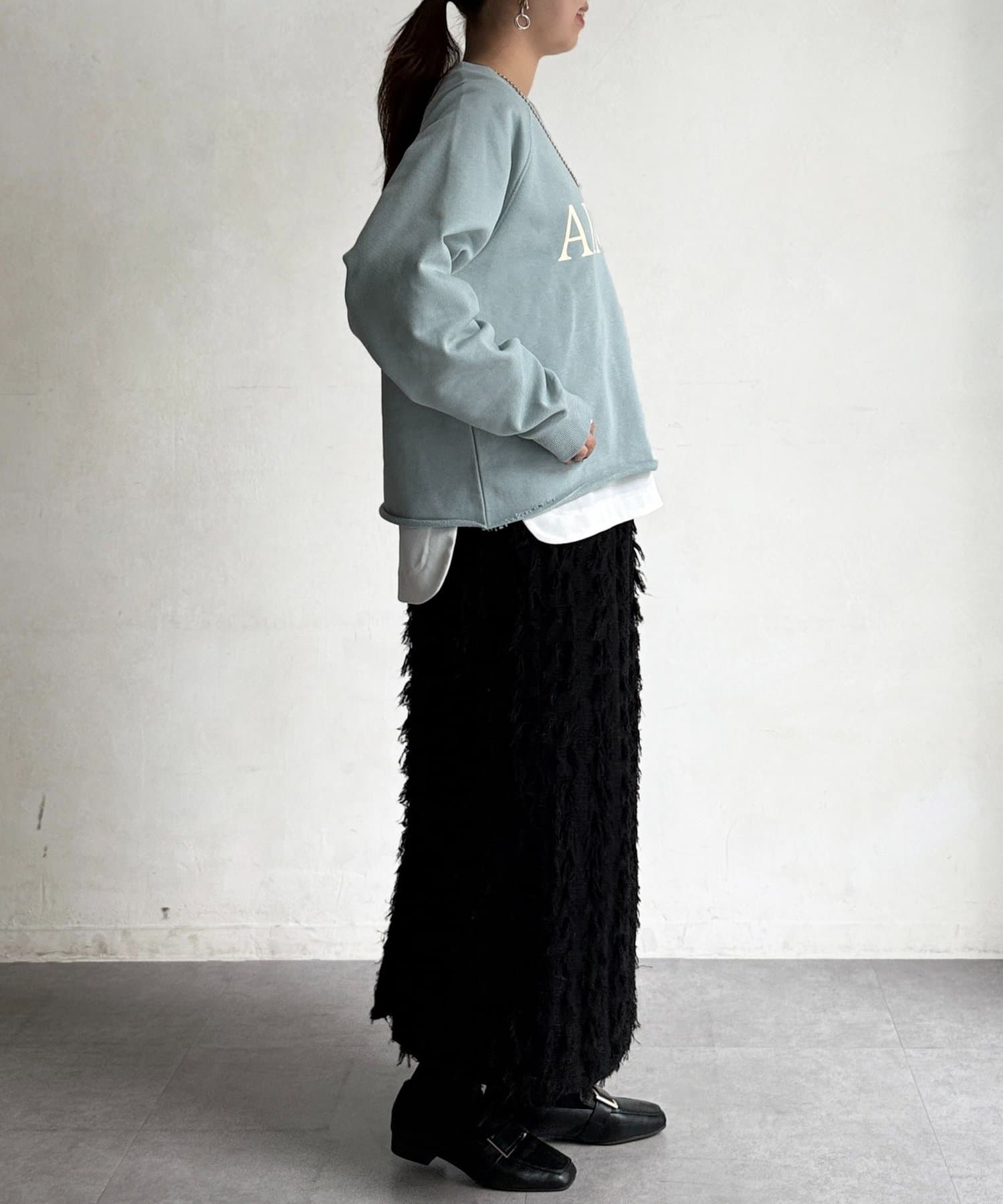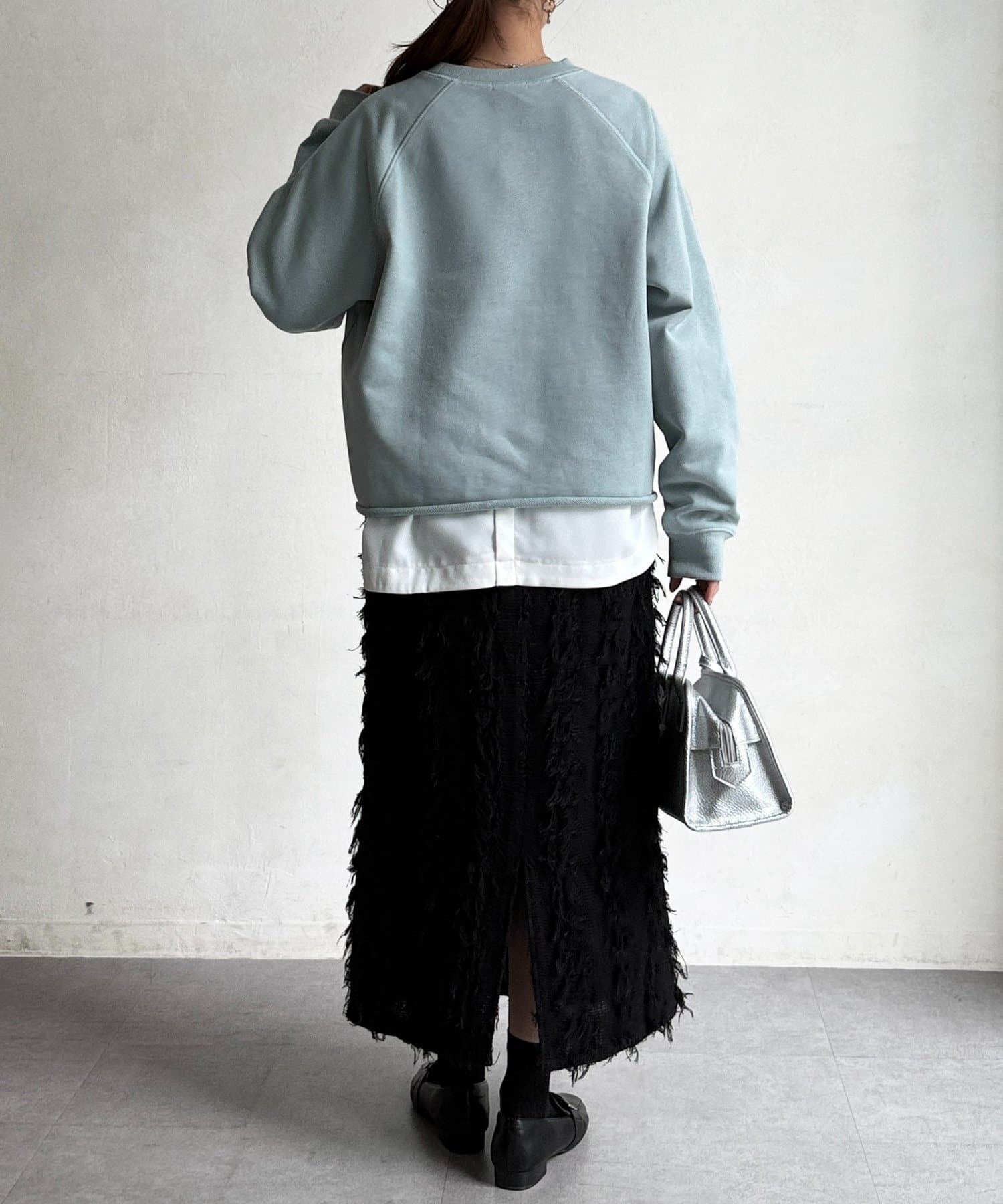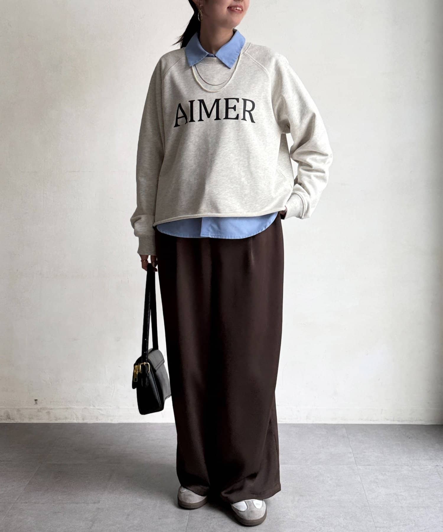 軽い生地感できれいめ見えする表面がポイントの大人スウェット。
