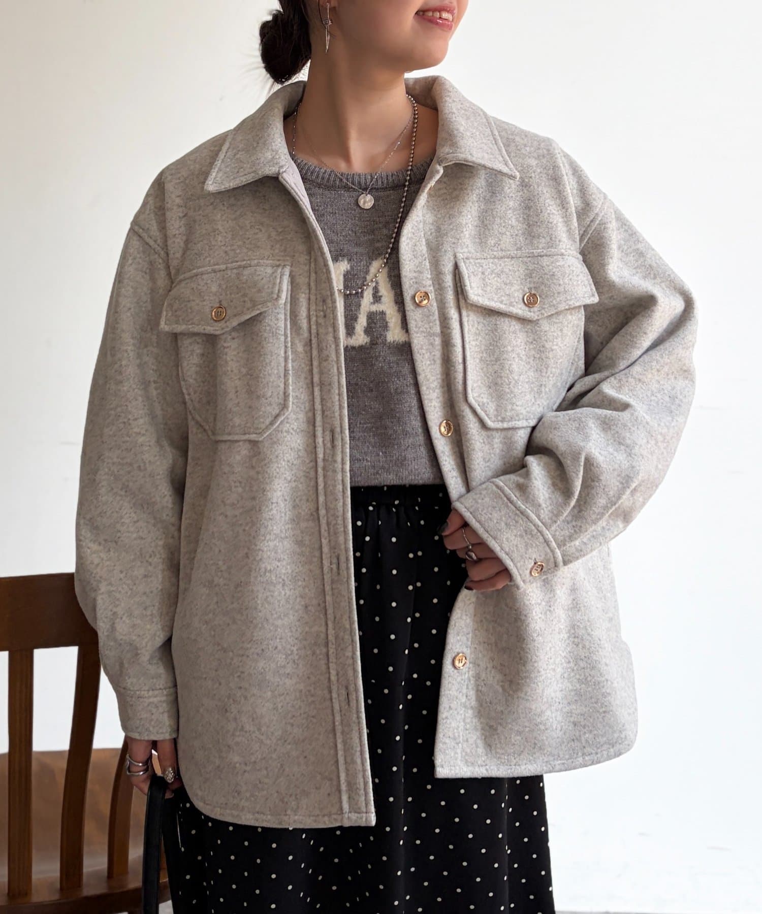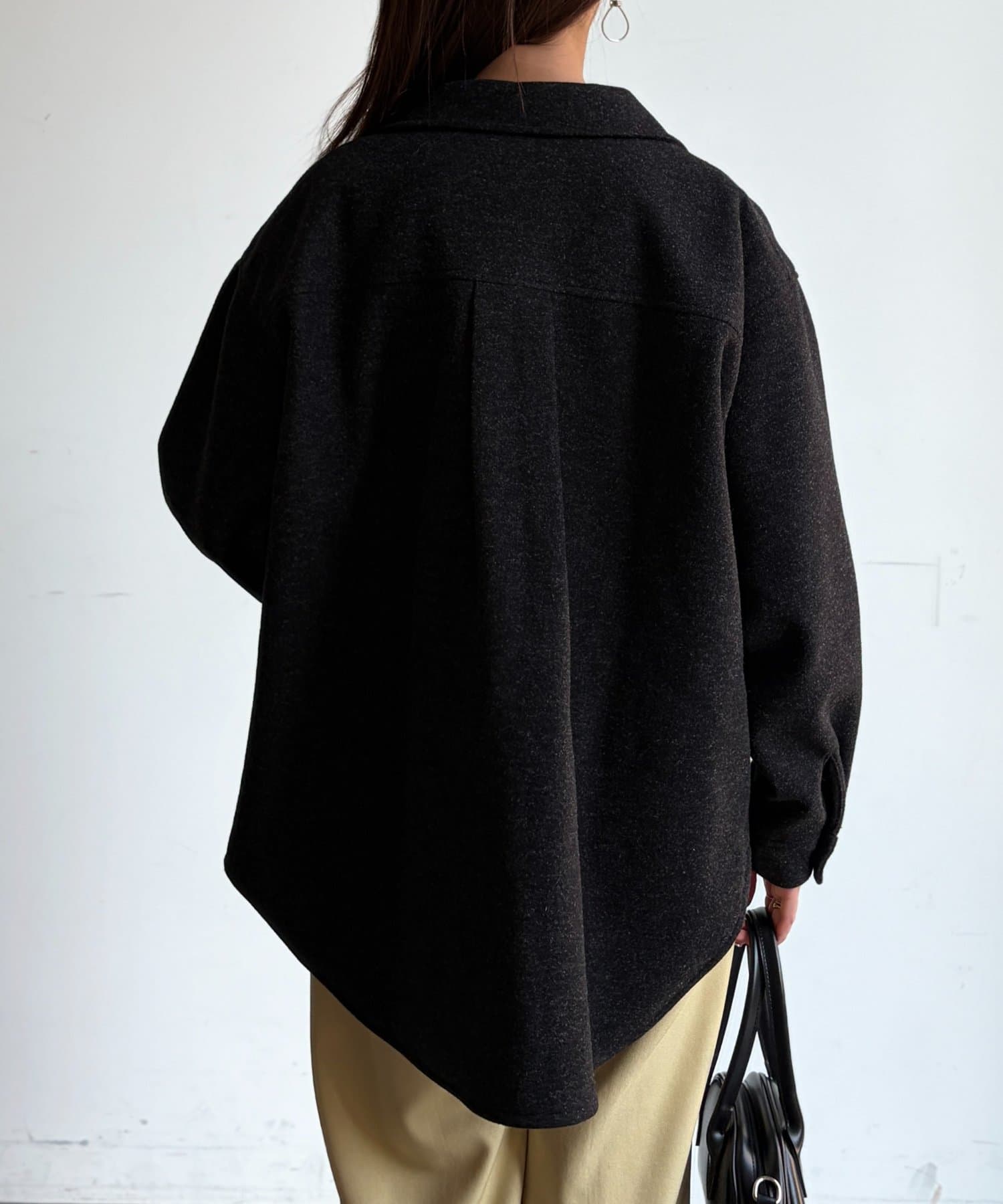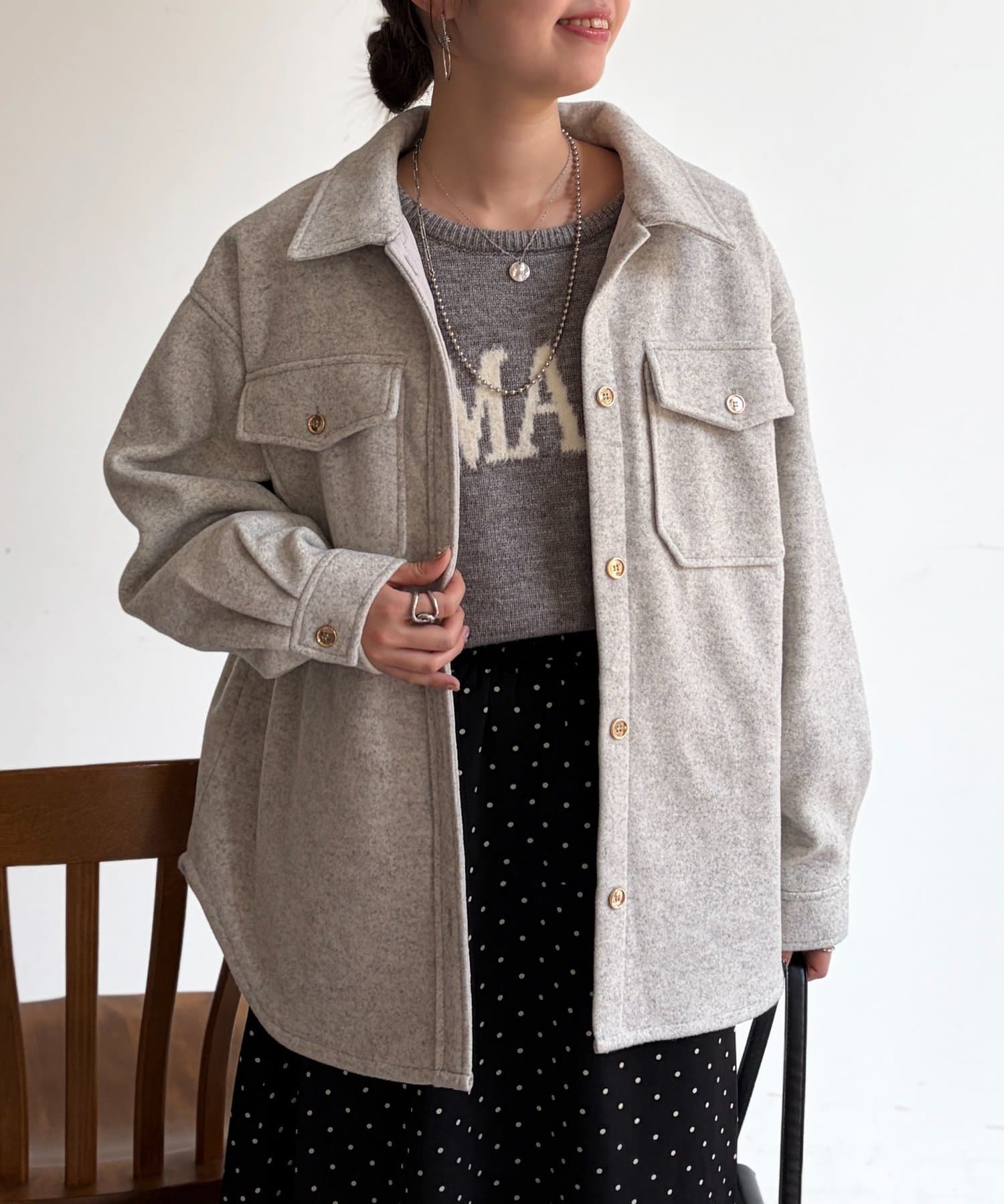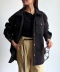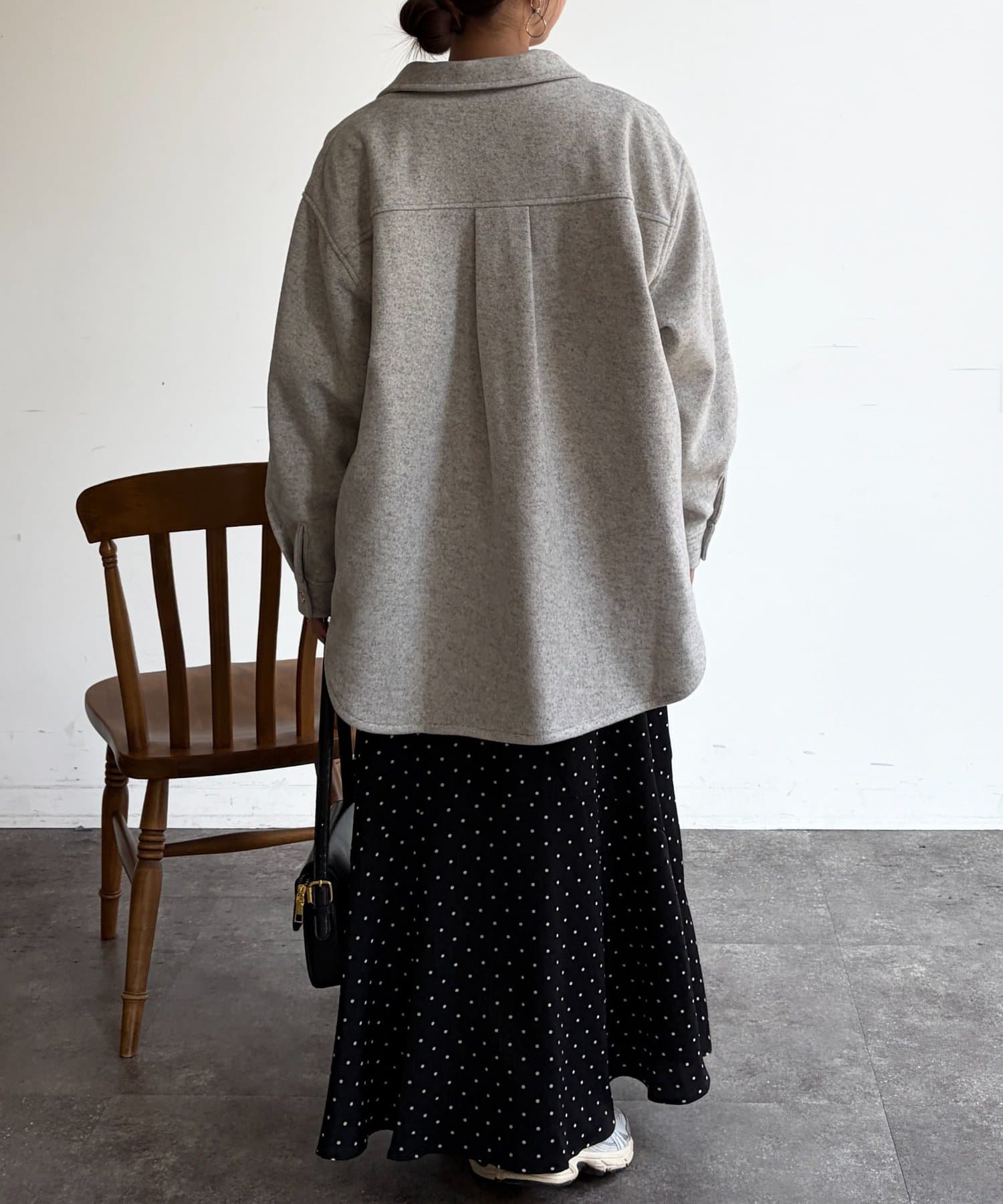 シャツのようにも着れるジャケットなので、スラックスパンツやナロースカートを合わせるとコーデが締まり、キレイメな印象に◎