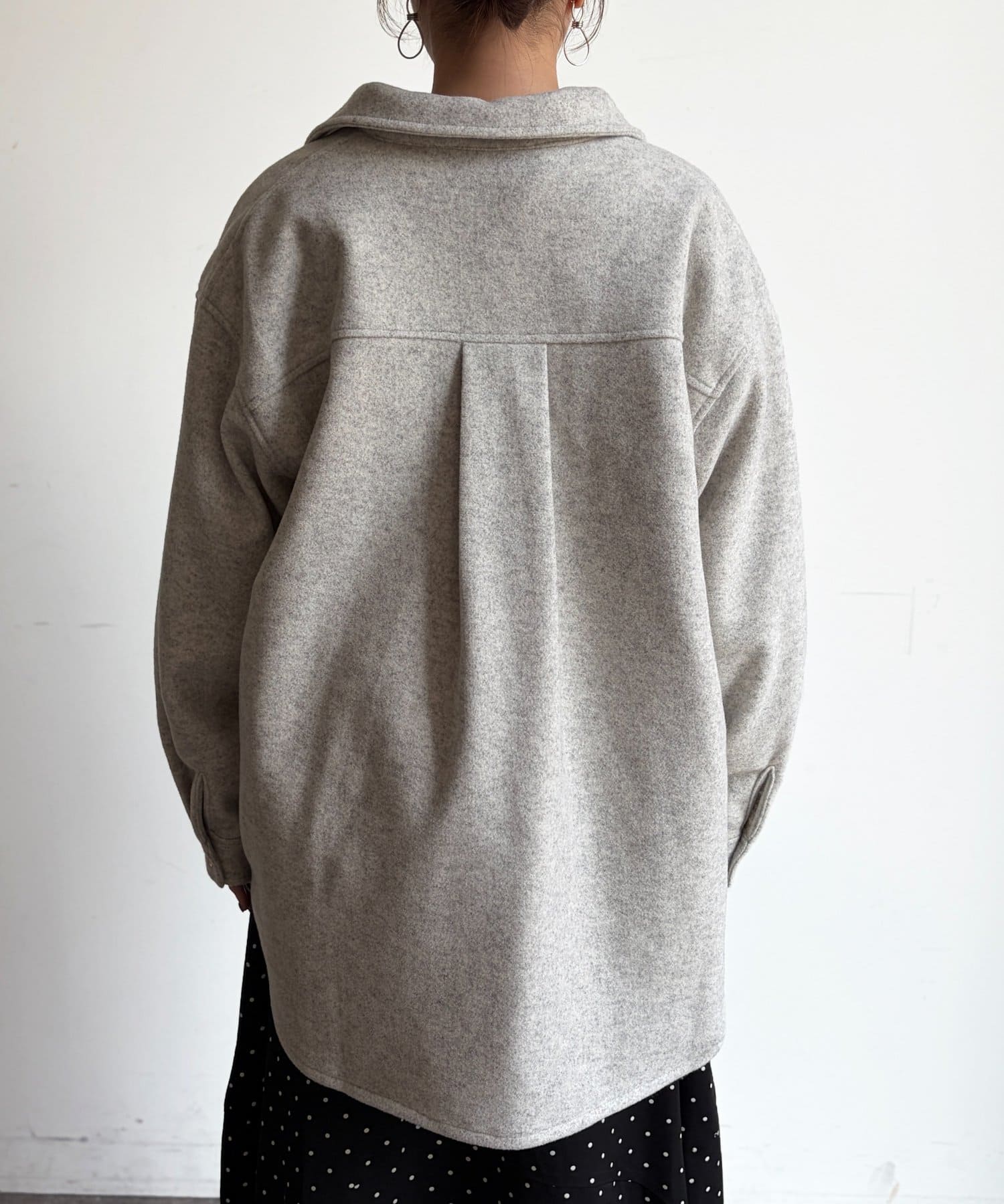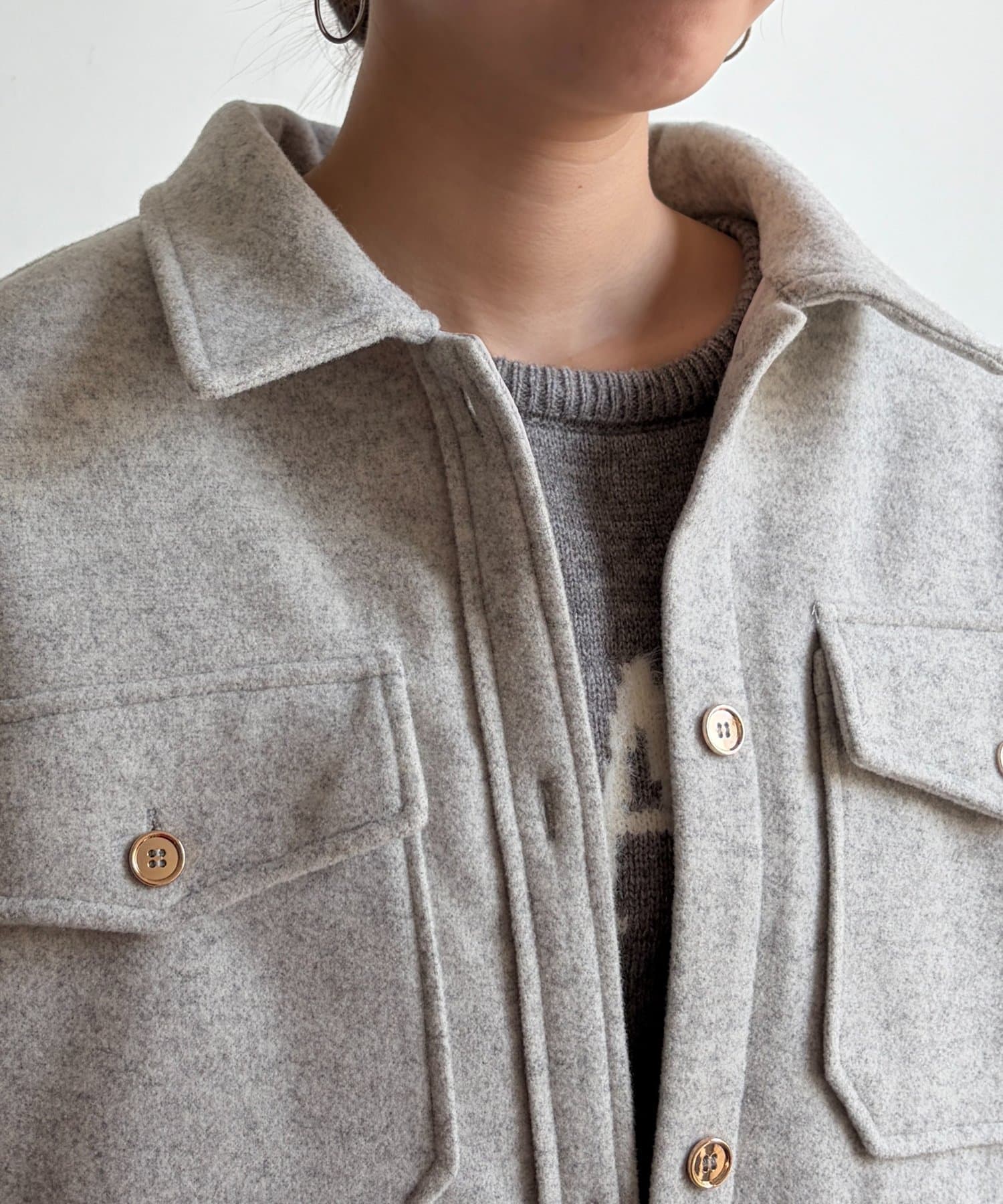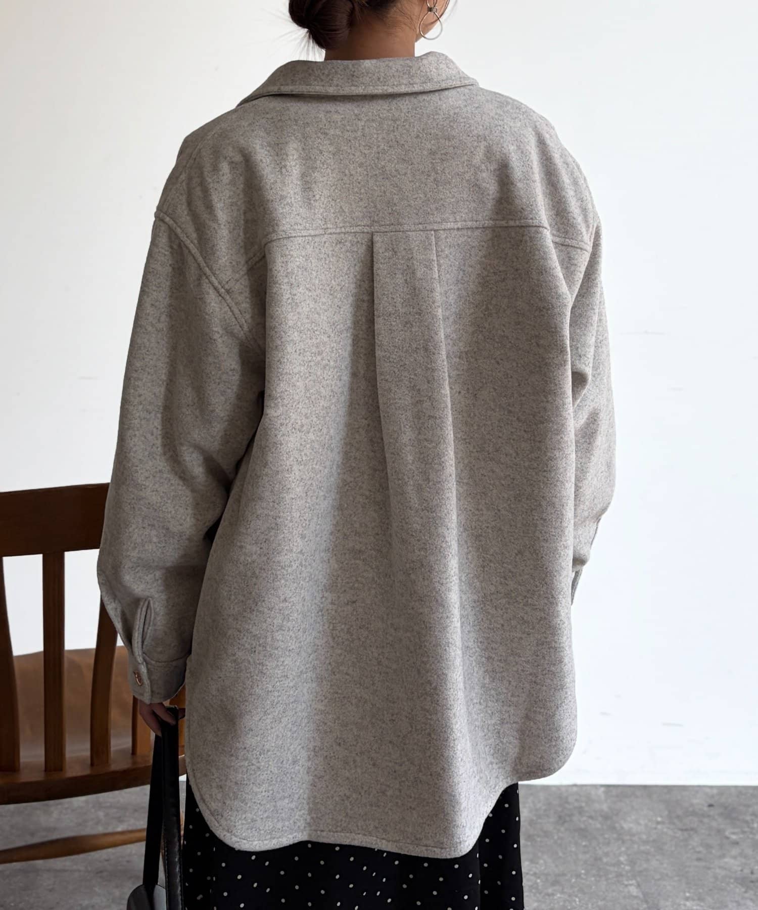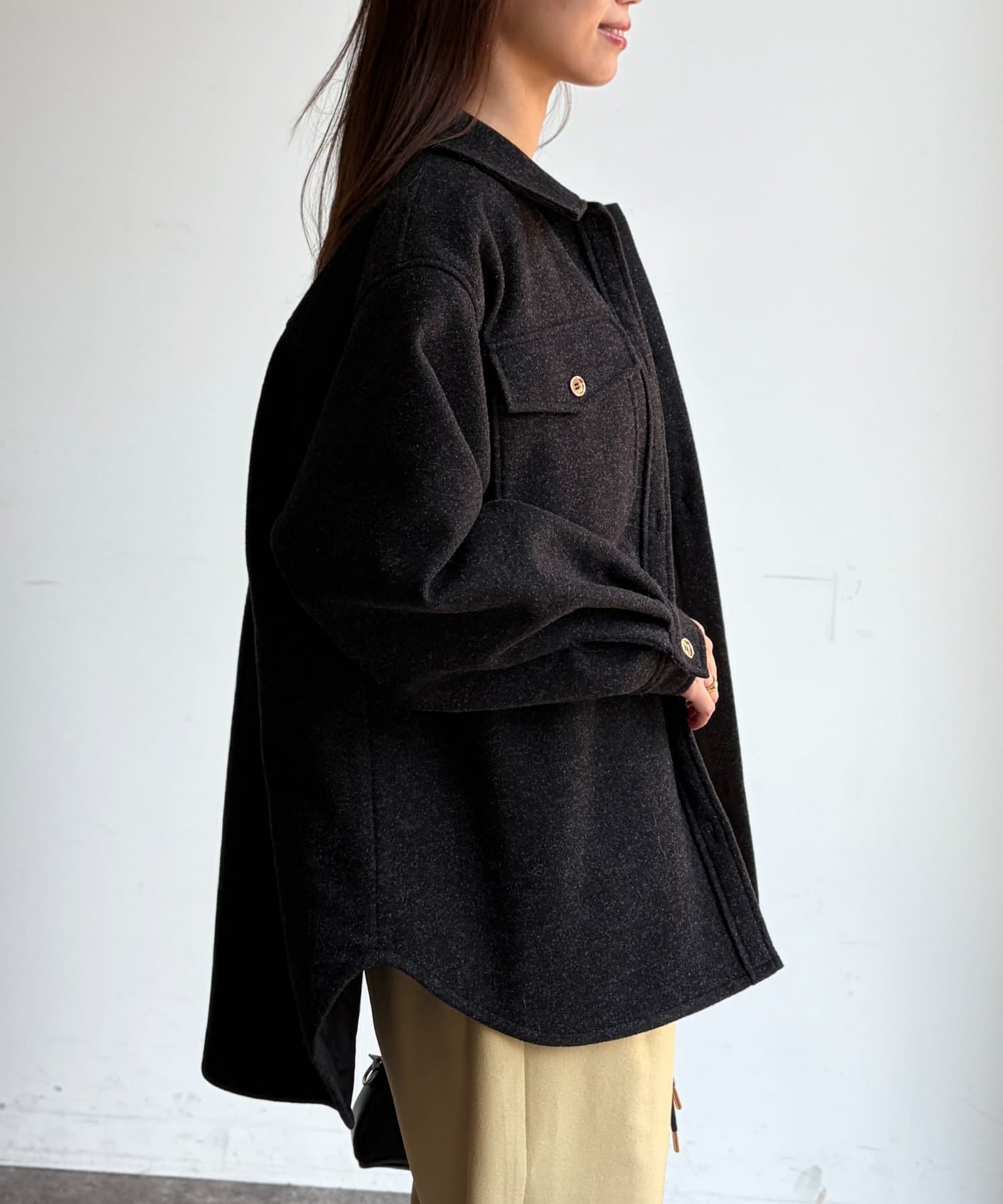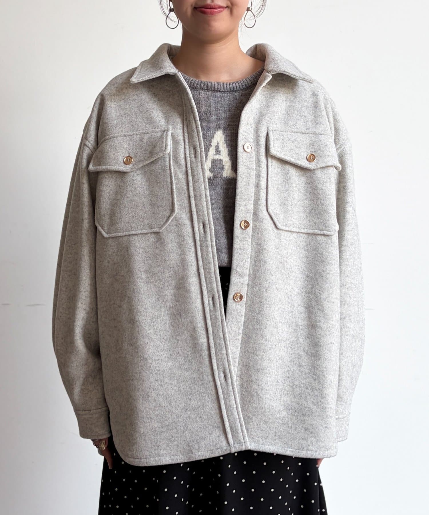 シャツのようにも着れるジャケットなので、スラックスパンツやナロースカートを合わせるとコーデが締まり、キレイメな印象に◎