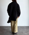 ゆとりのある身幅に腕周りなので、コンパクトなトップスだけではなく、スウェットやニットも忍ばせることができます。