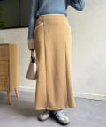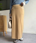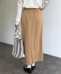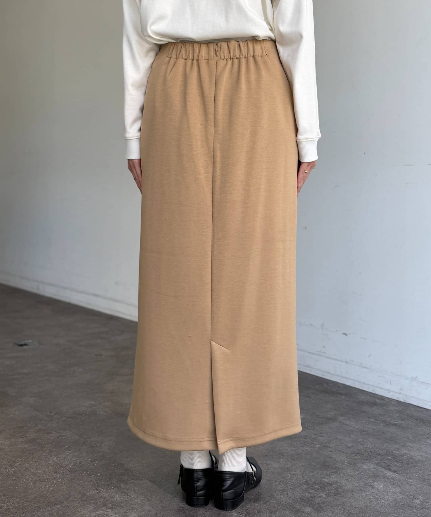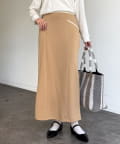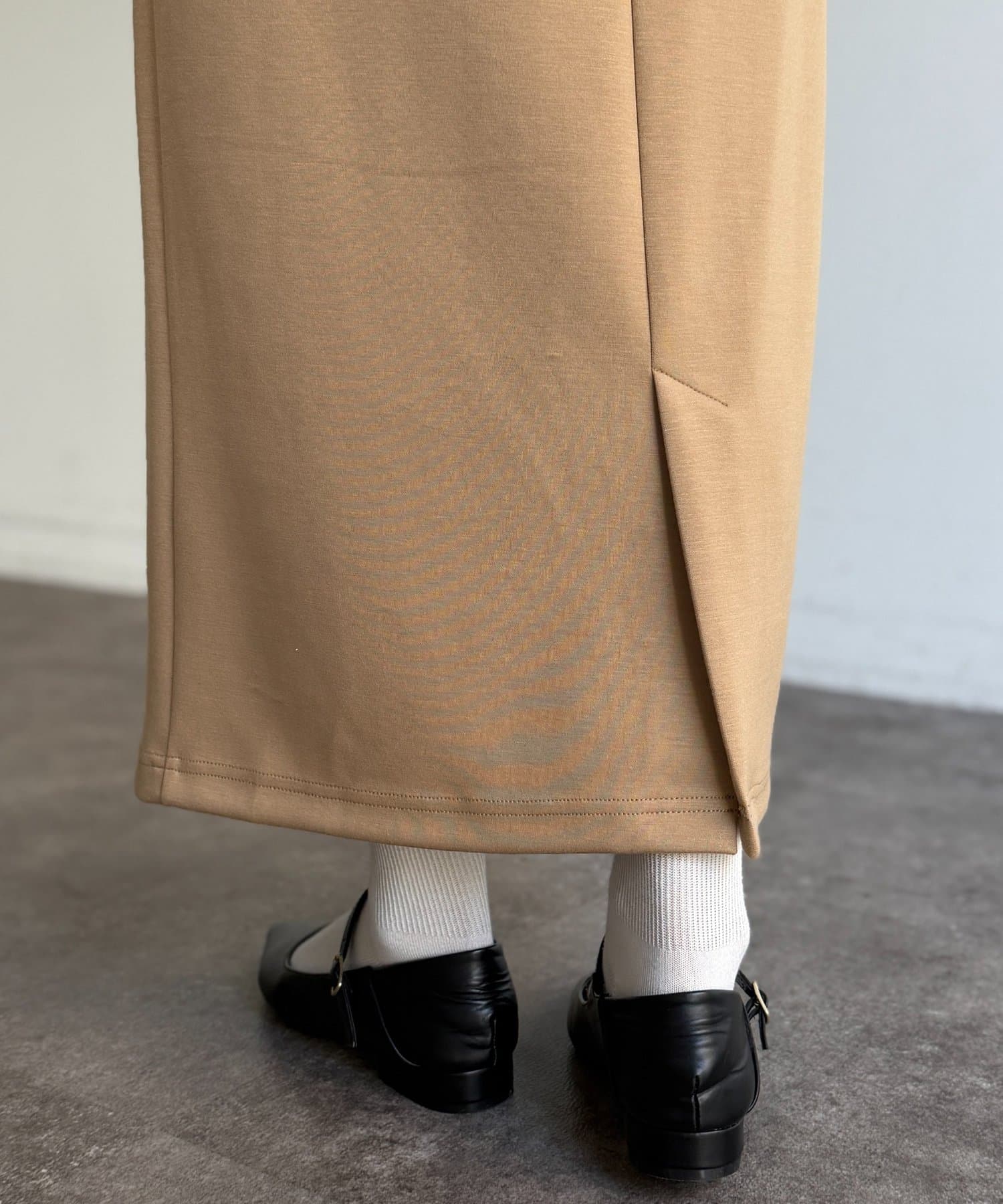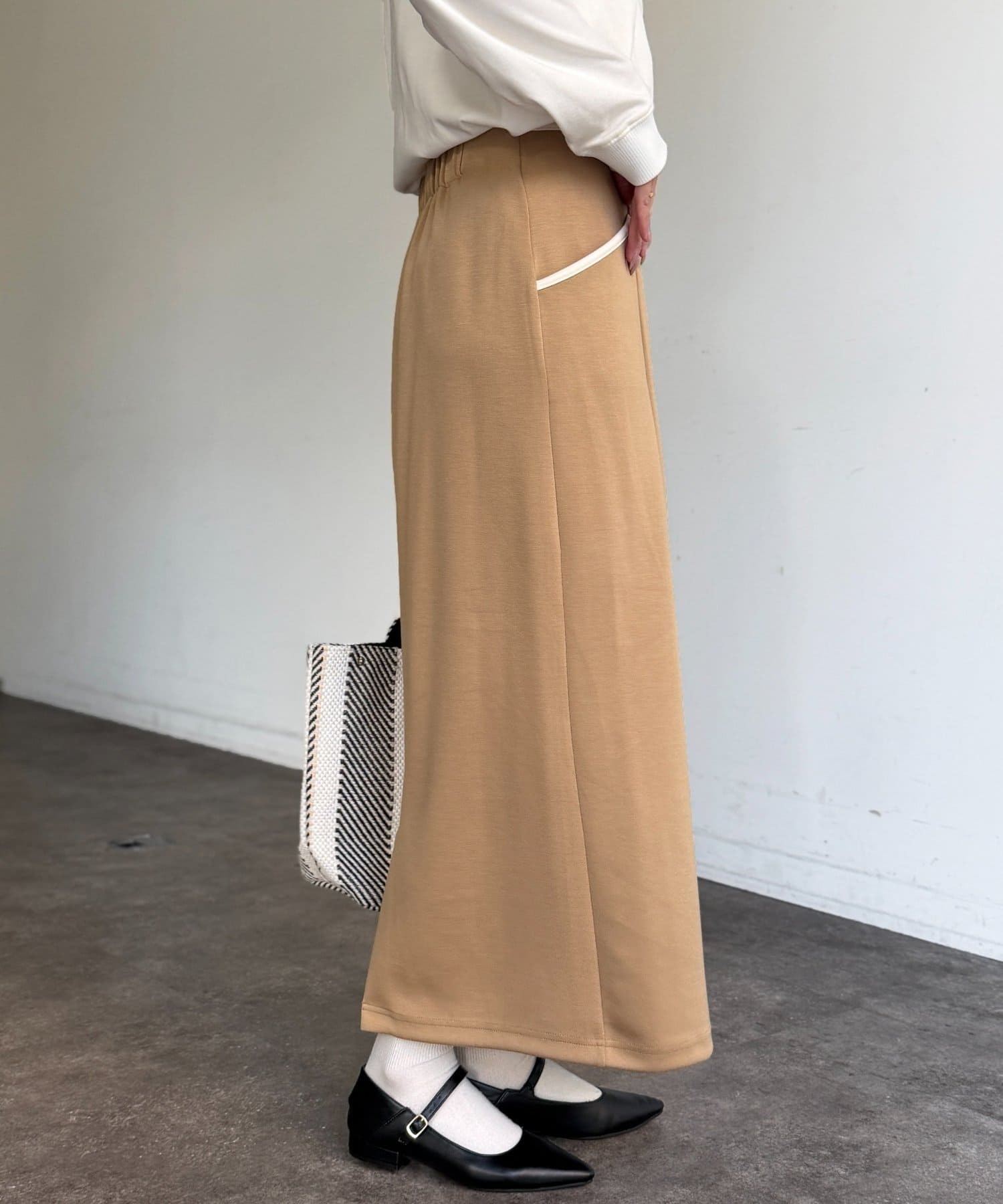 身体のラインを拾いすぎず、きれい見えするナロースカート。