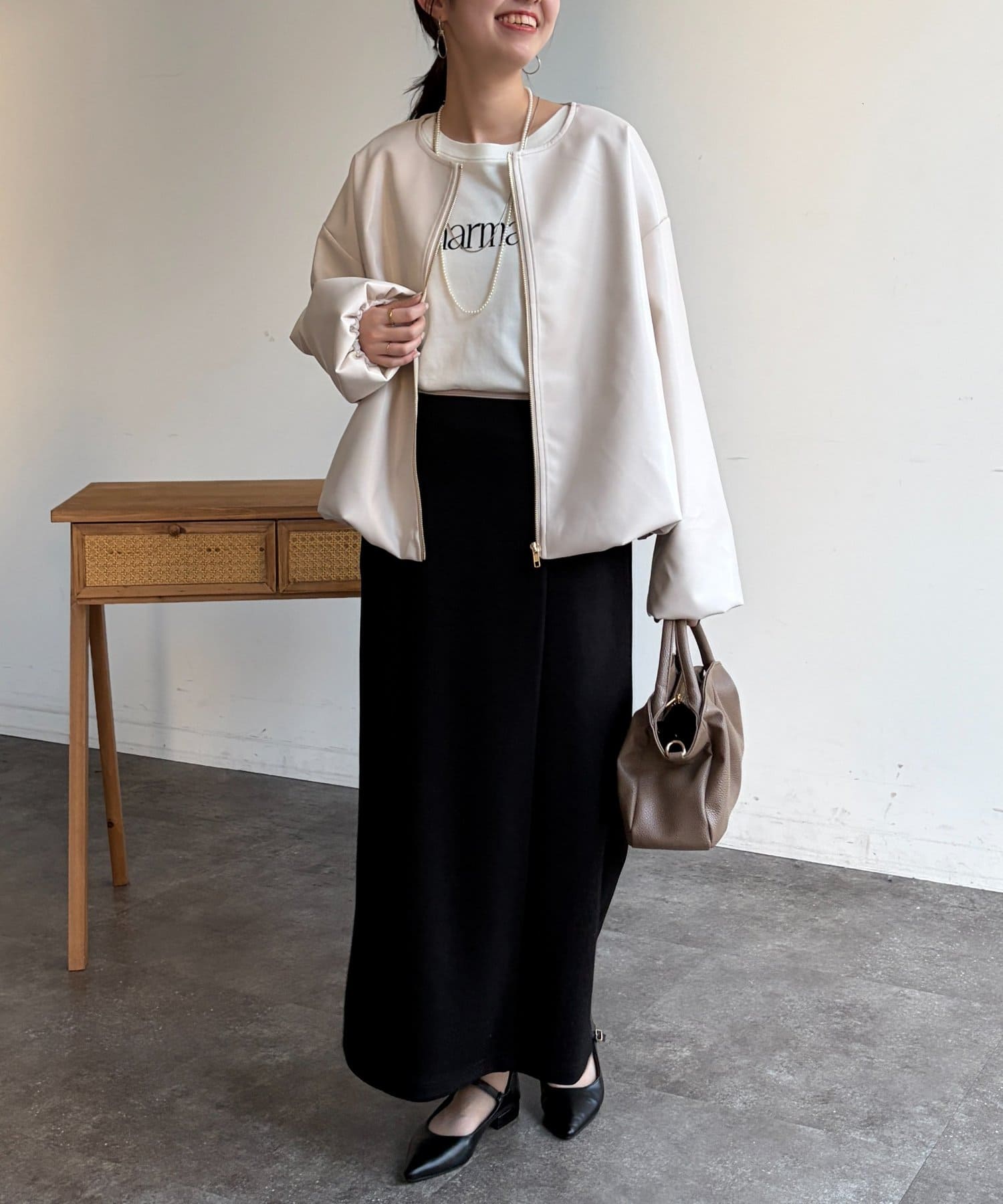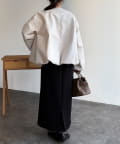 全体的にすっきりと見せてくれるので、シンプルなブラウスやざっくりしたシアーニット合わせがおすすめ。