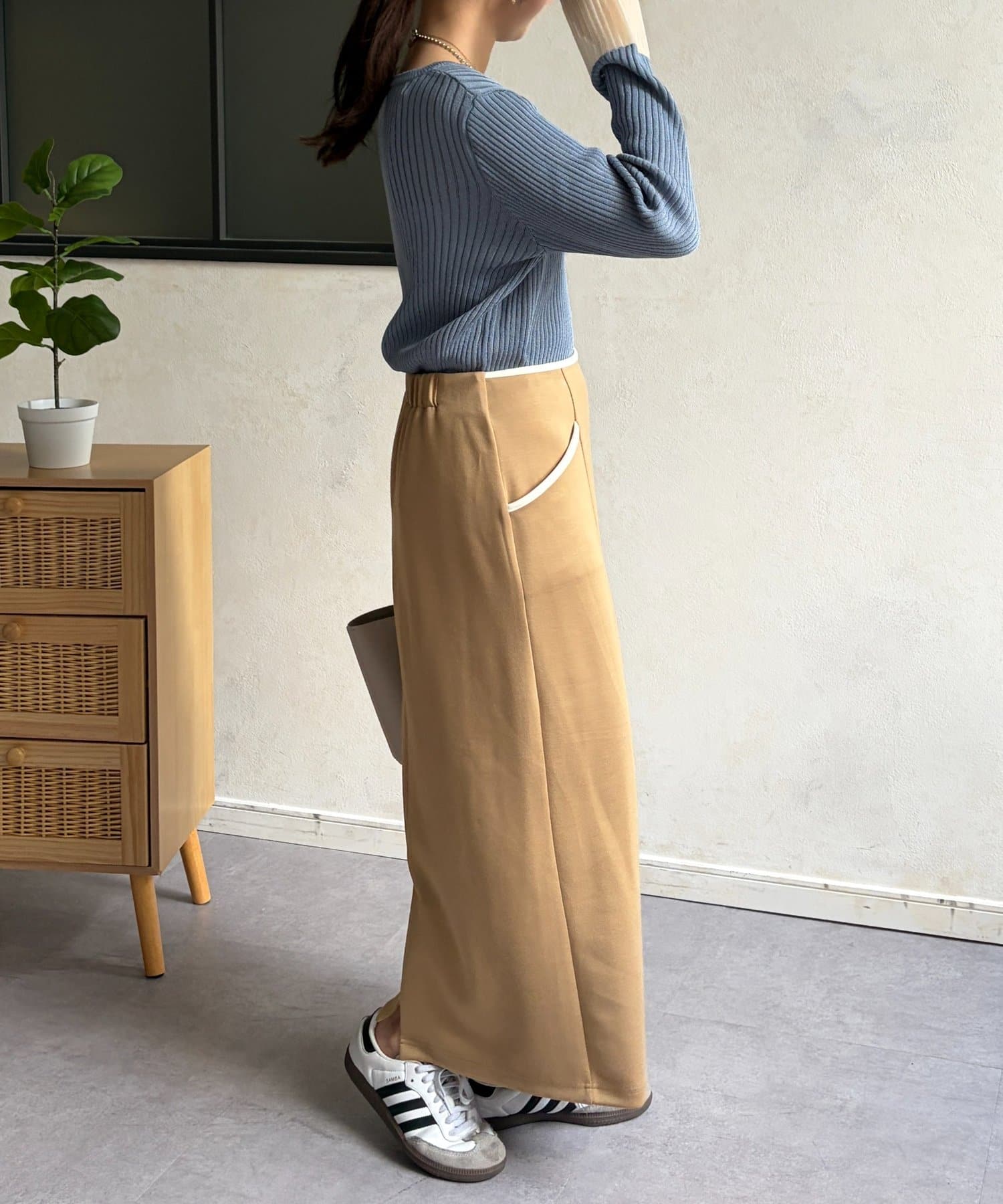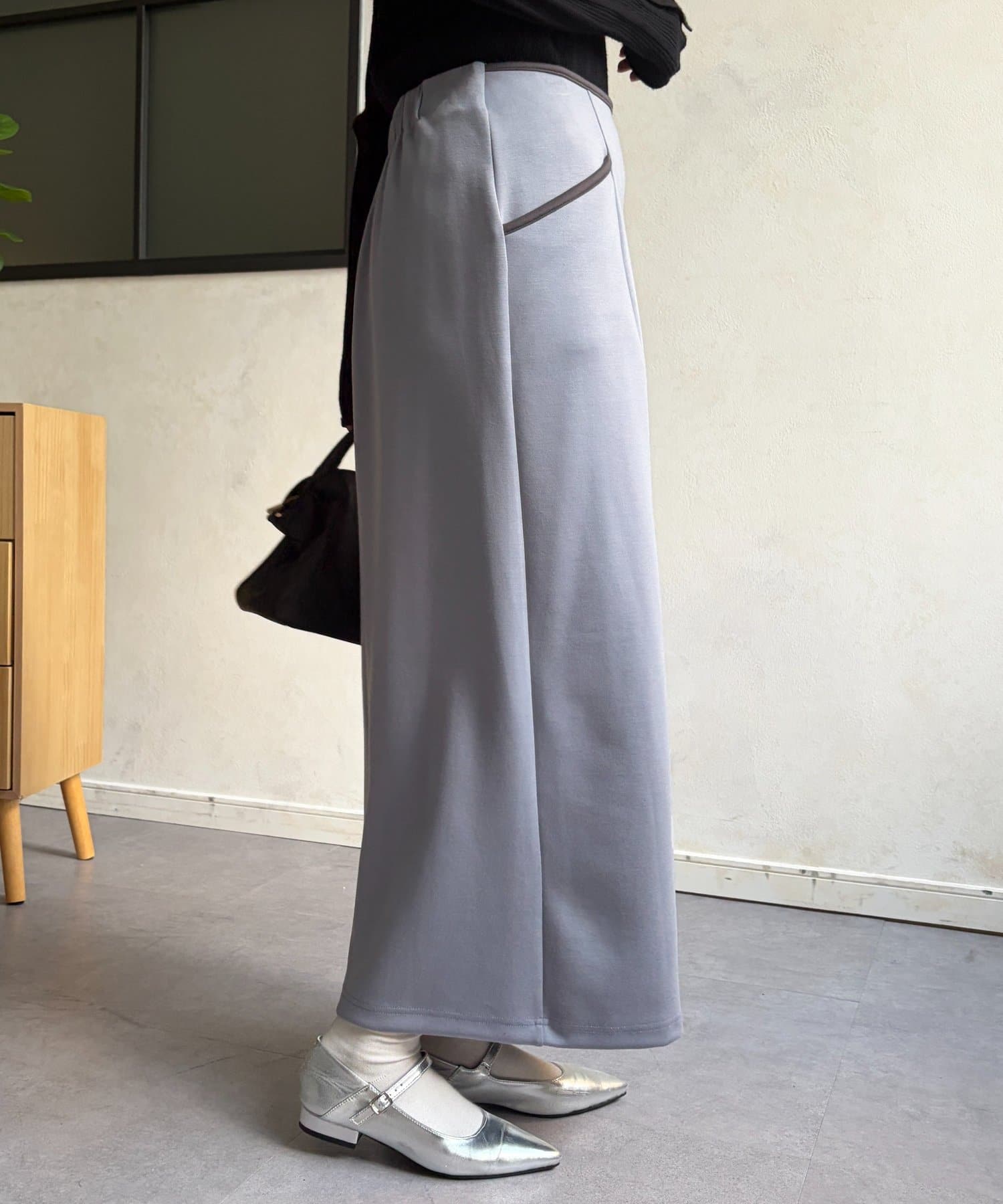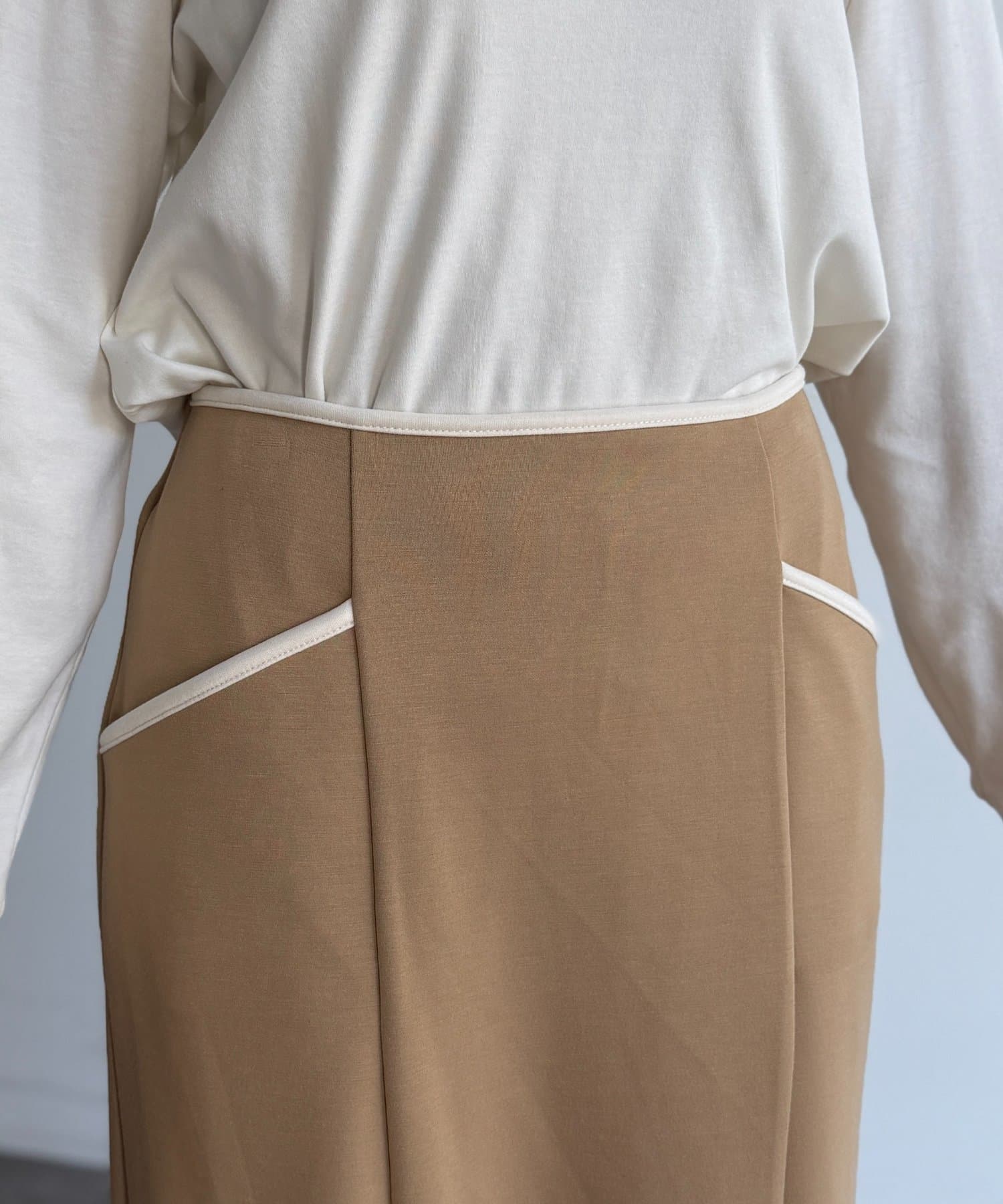 ウエストに入れたパイピングがシルエットにメリハリをもたせ、脚長効果のスタイルアップが叶うデザインです♪