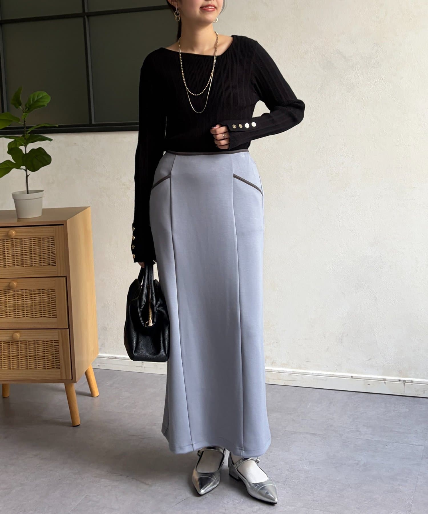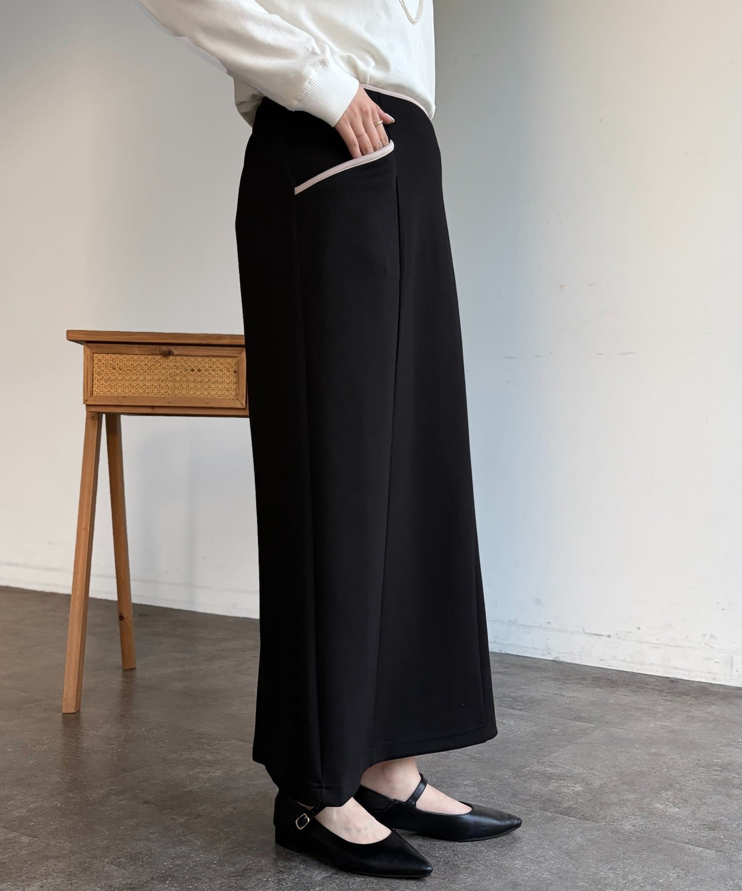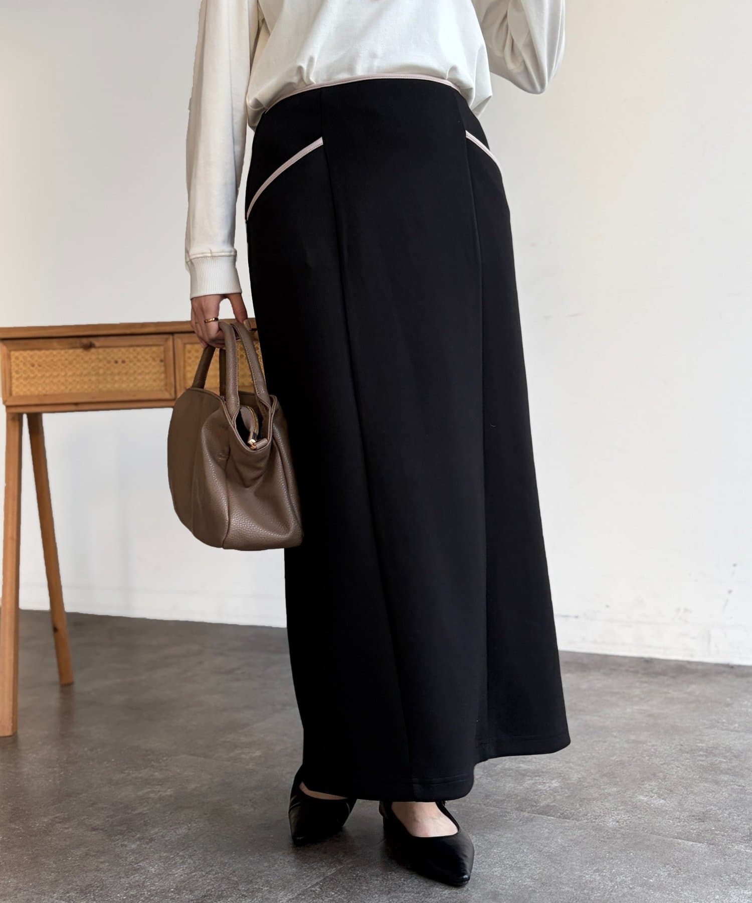 ウエストに入れたパイピングがシルエットにメリハリをもたせ、脚長効果のスタイルアップが叶うデザインです♪