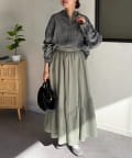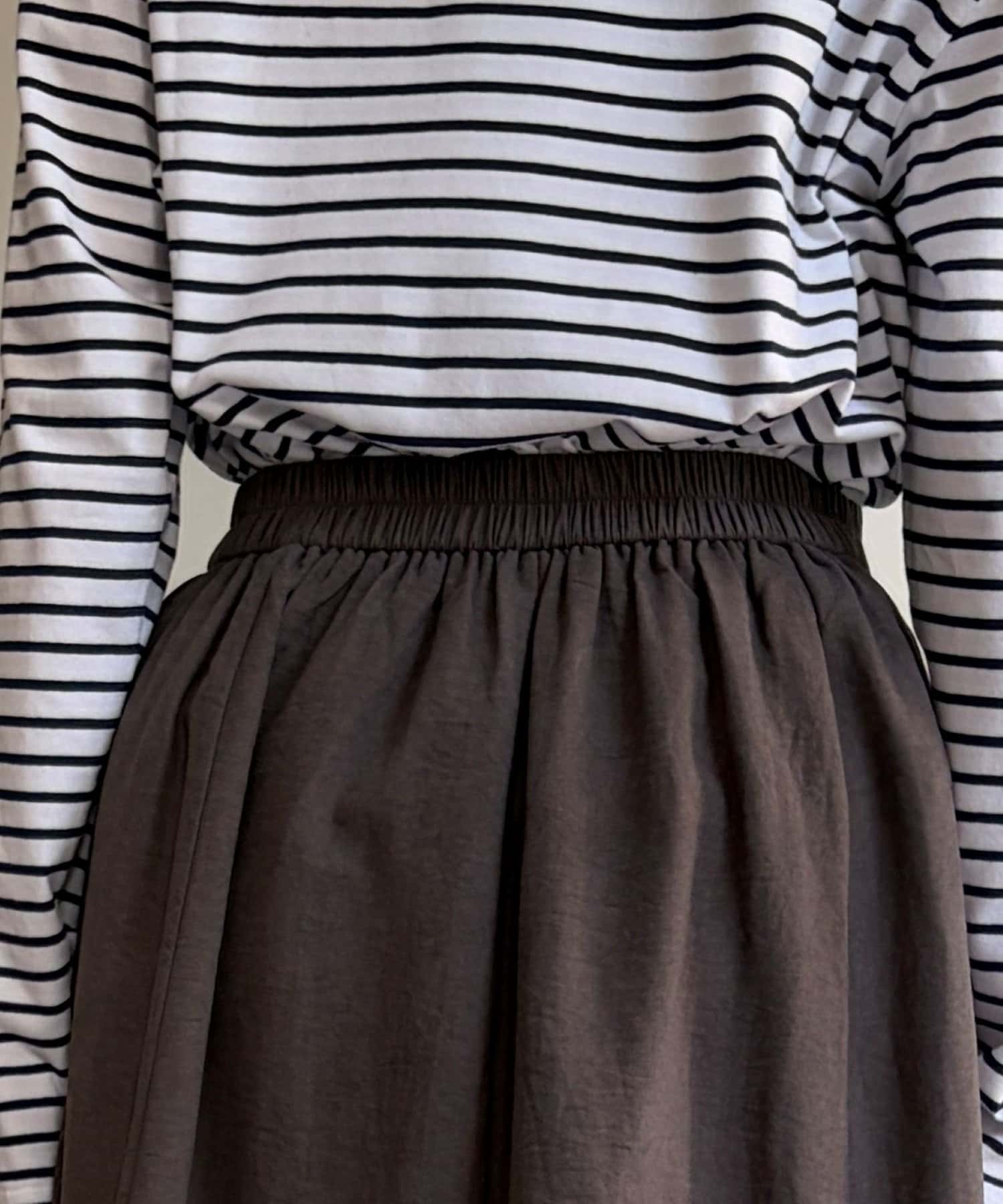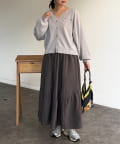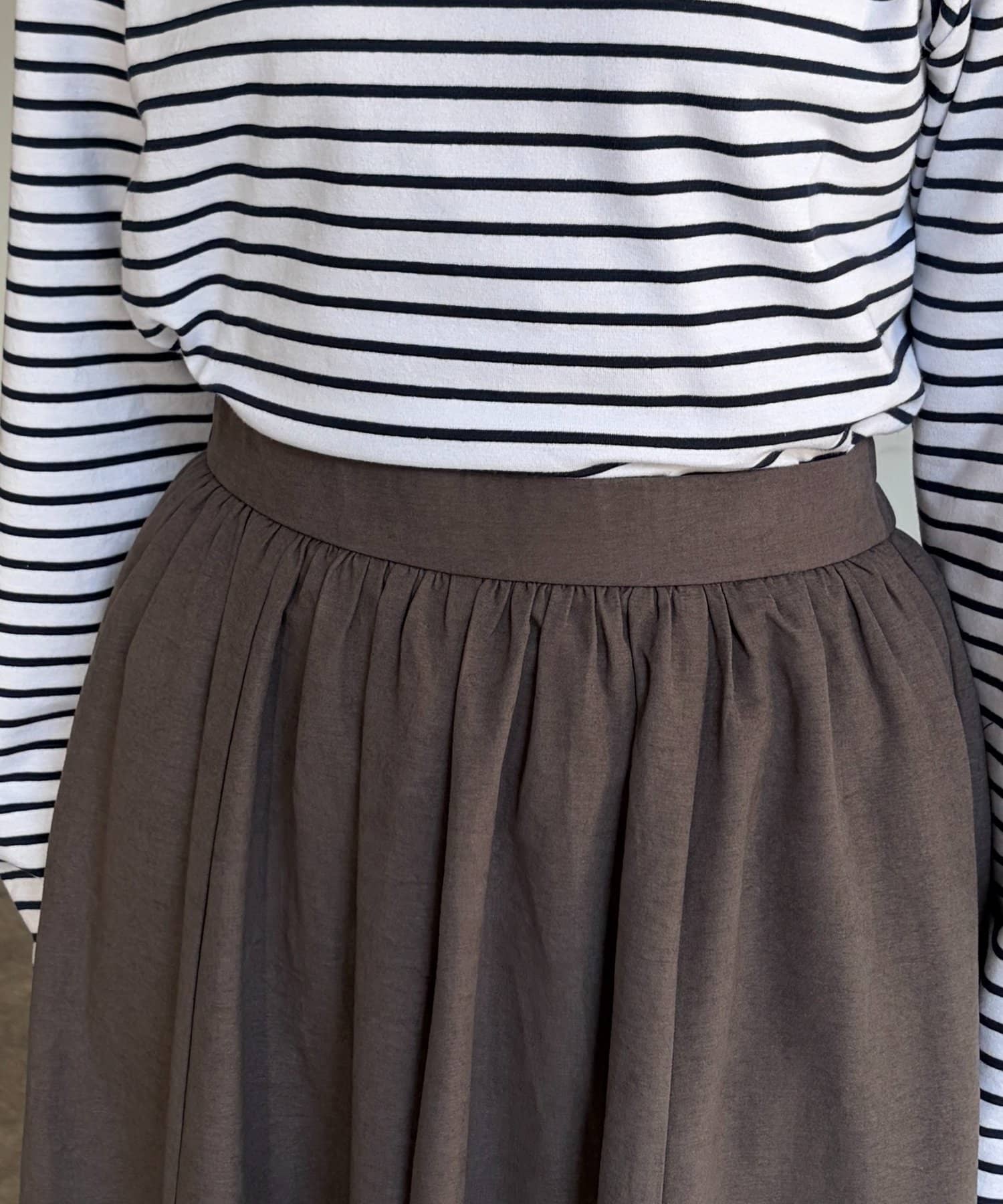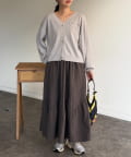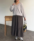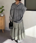 ギャザーのふんわりとしたシルエットとアシメの切り替えがポイント◎