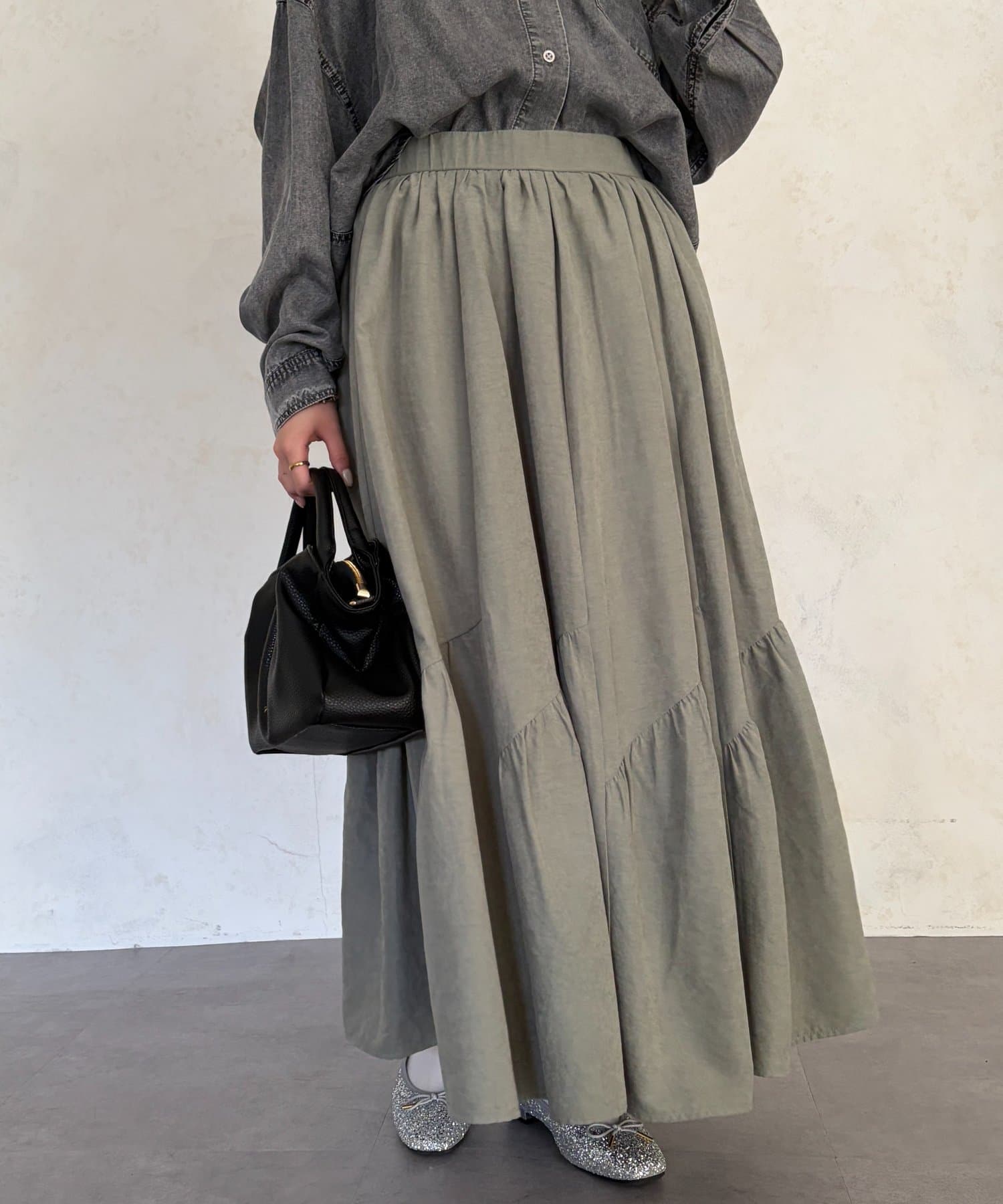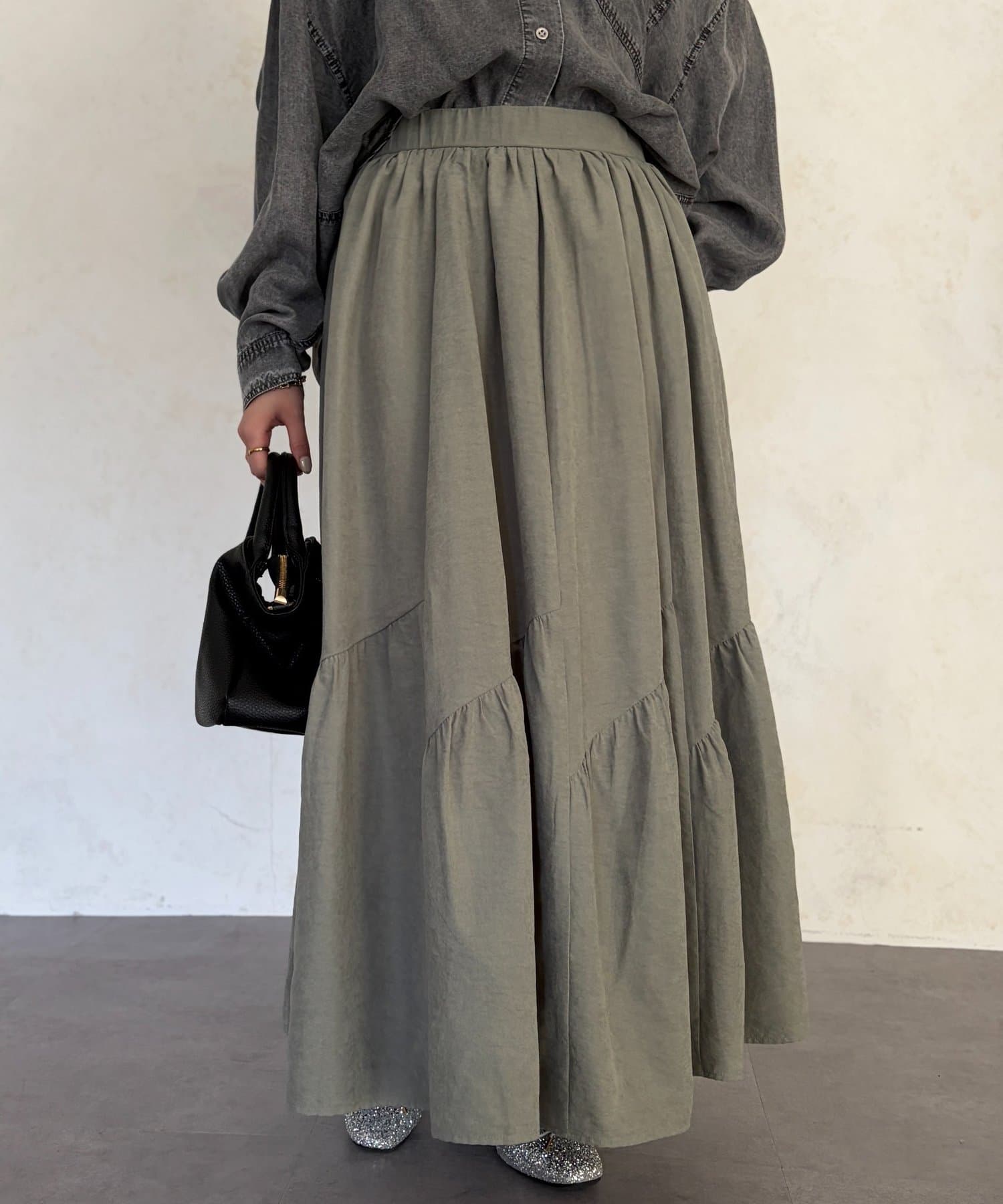 スエードティアードフレアスカート