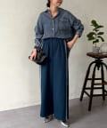 BACKギャザーパウダー加工デニムシャツ