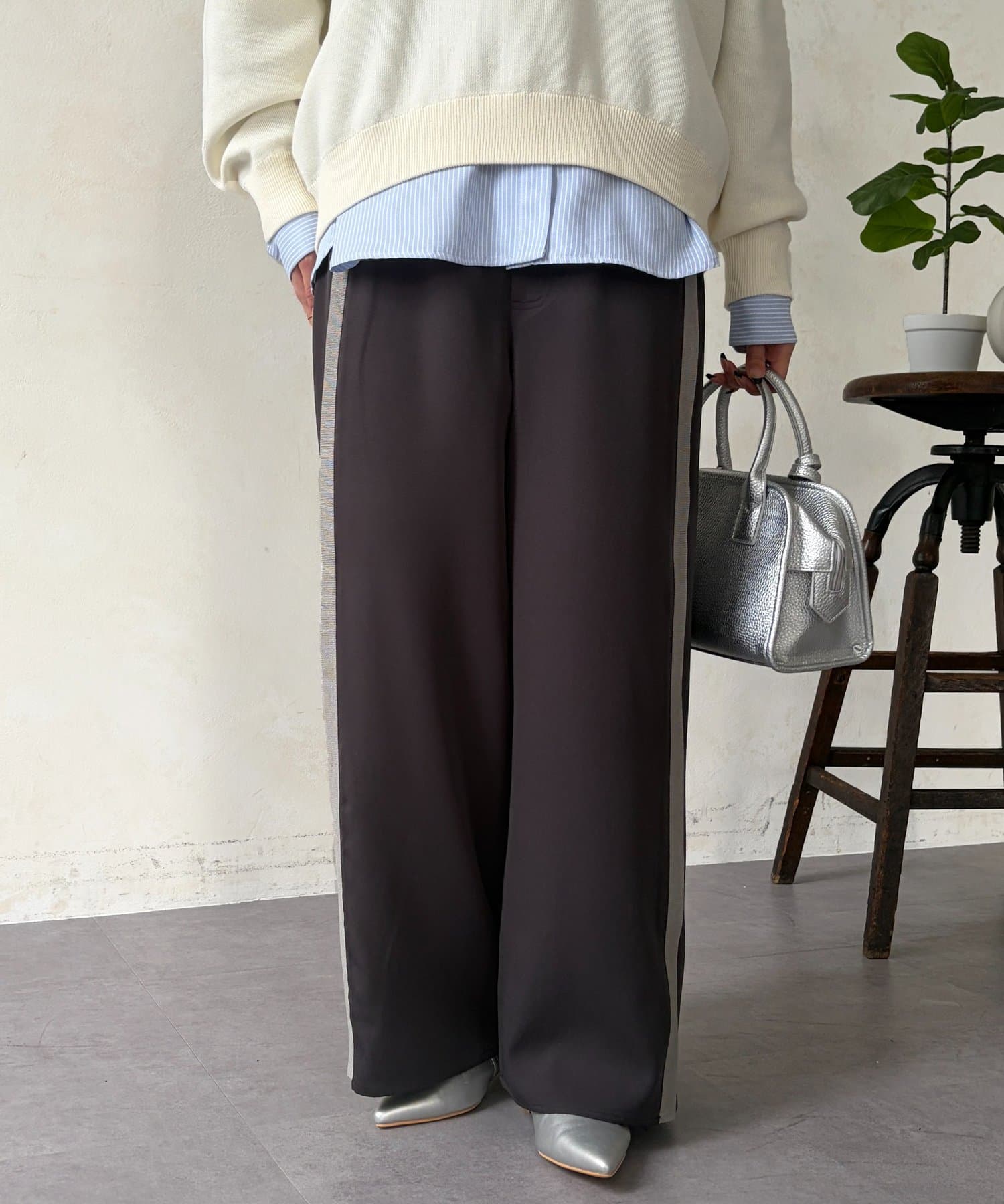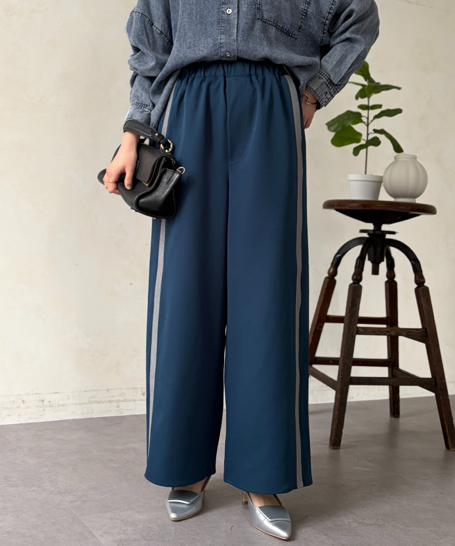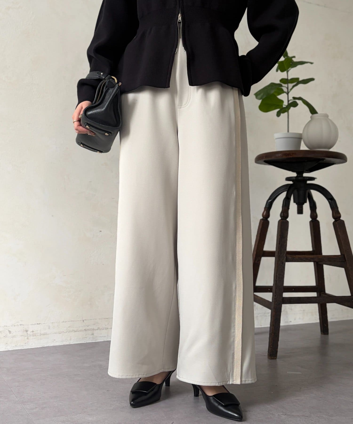 体型を選ばず細見えが叶うトレンドのサイドラインパンツ。