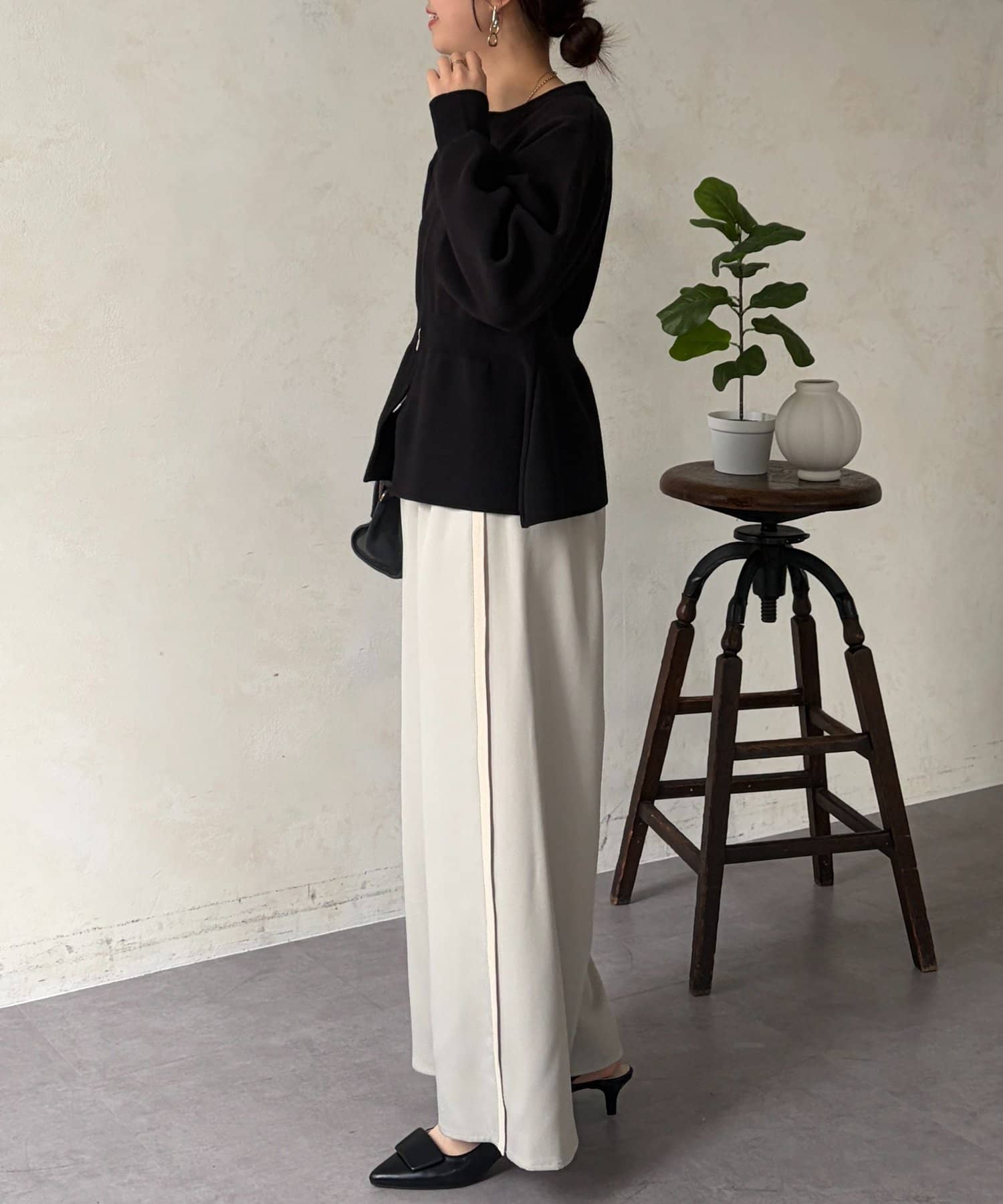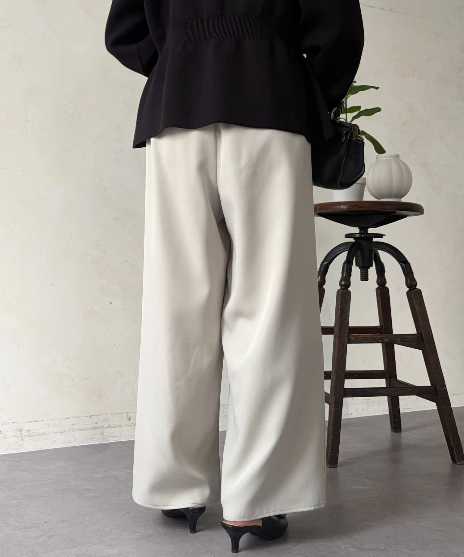 オールシーズン履ける生地感で、縦ラインが強調され脚長効果に◎