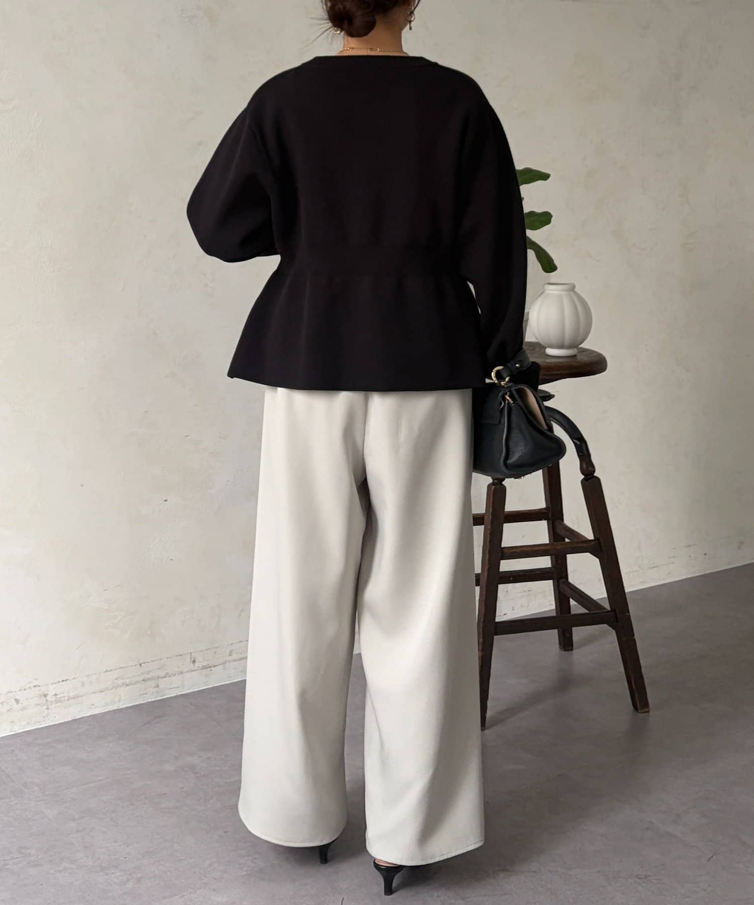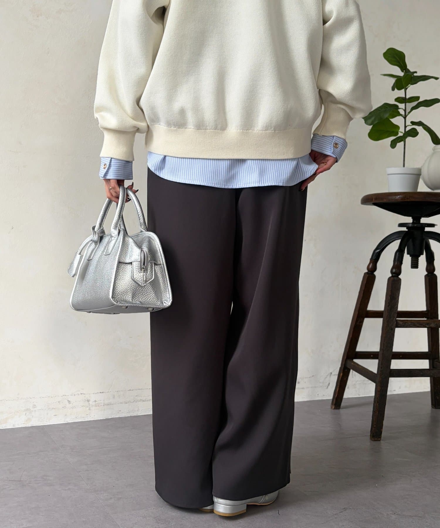 適度なゆとりが美しいシルエットを生むストレートラインのパンツ