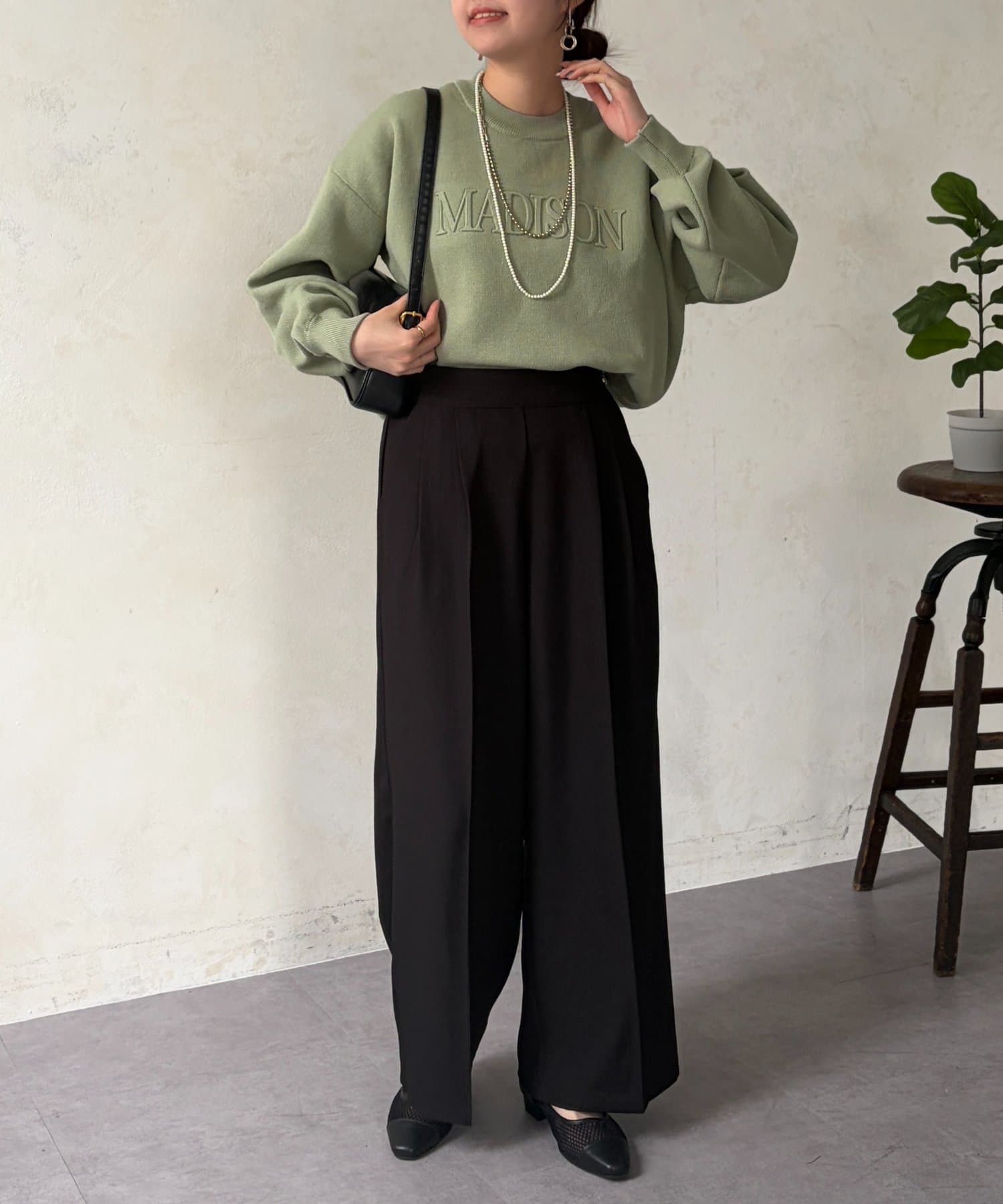 シンプルなデザインなのでキレイめブラウスやニットとも、カジュアルなスエットやロングコートと合わせたコーデにもぴったりです!