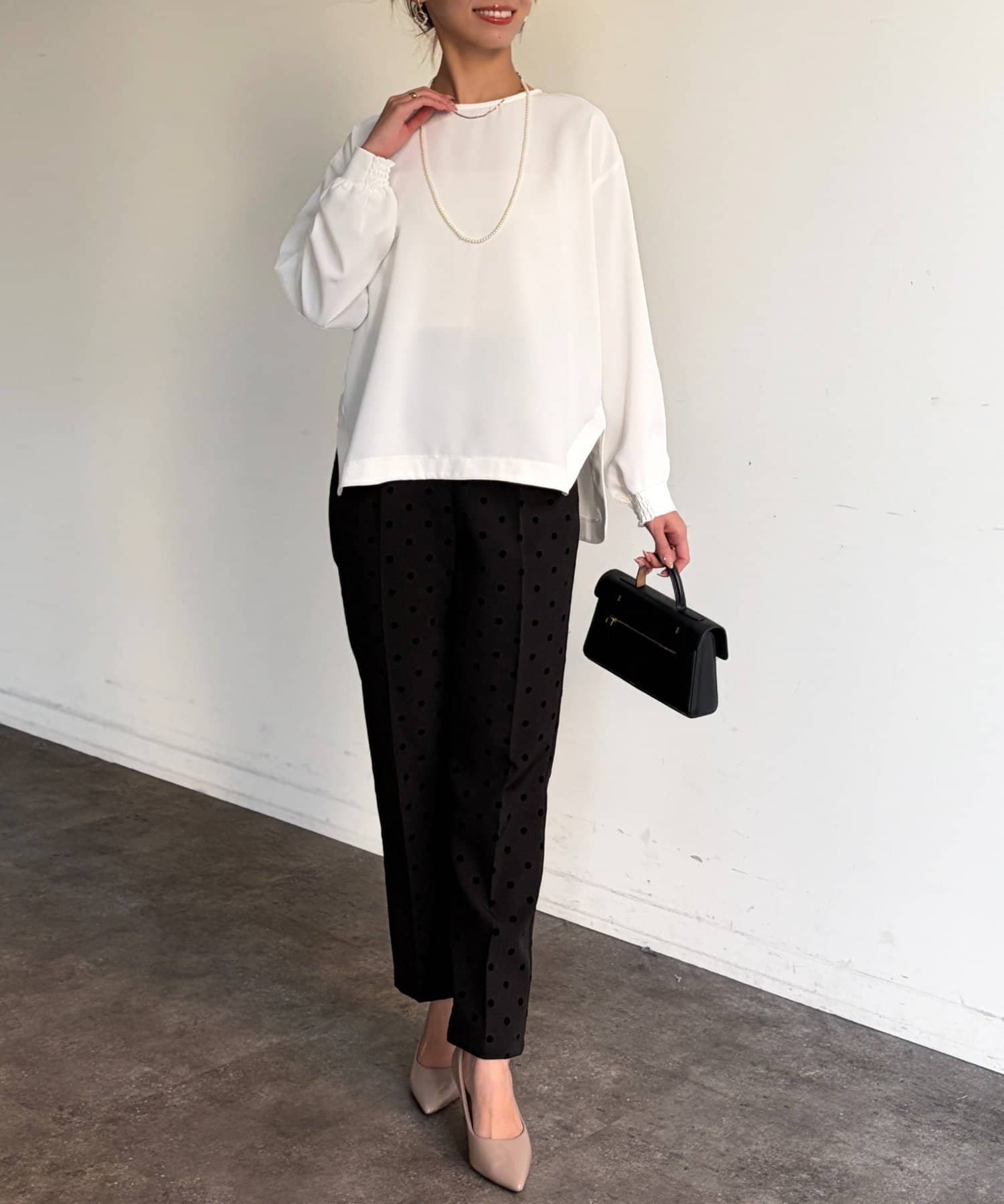 【セレモニー対応可】フロッキードットテーパードパンツ