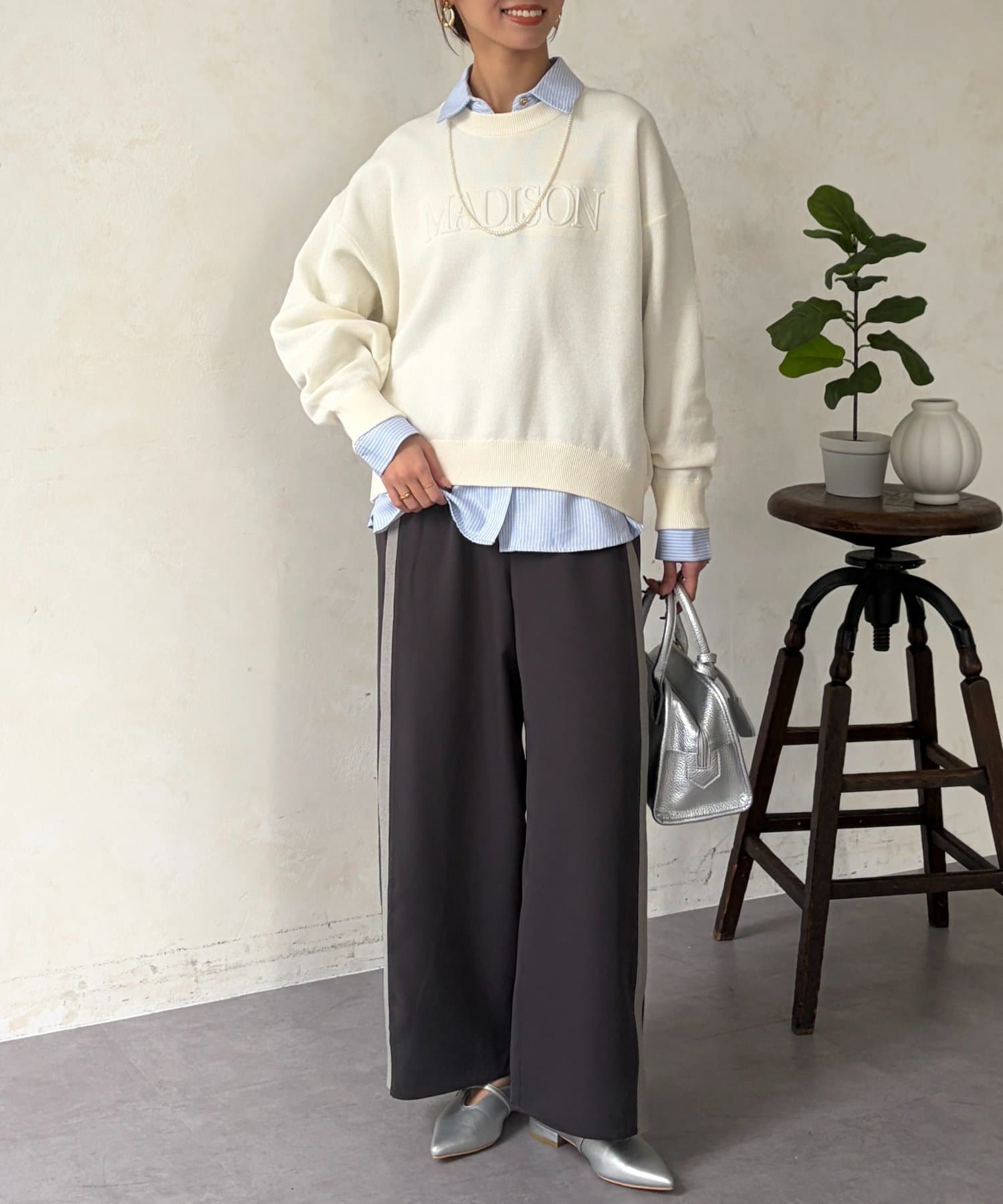 デニムパンツやワイドパンツと合わせてカジュアルに、スカートスタイルに合わせてきれいめにもマッチします!