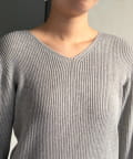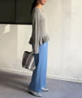 Vネックで首元に抜け感がでるので顔まわりもスッキリ。
