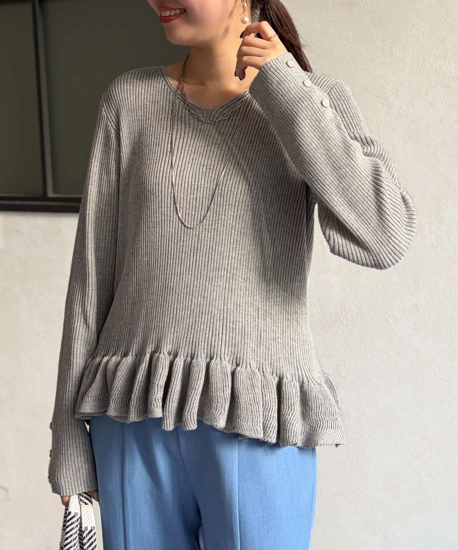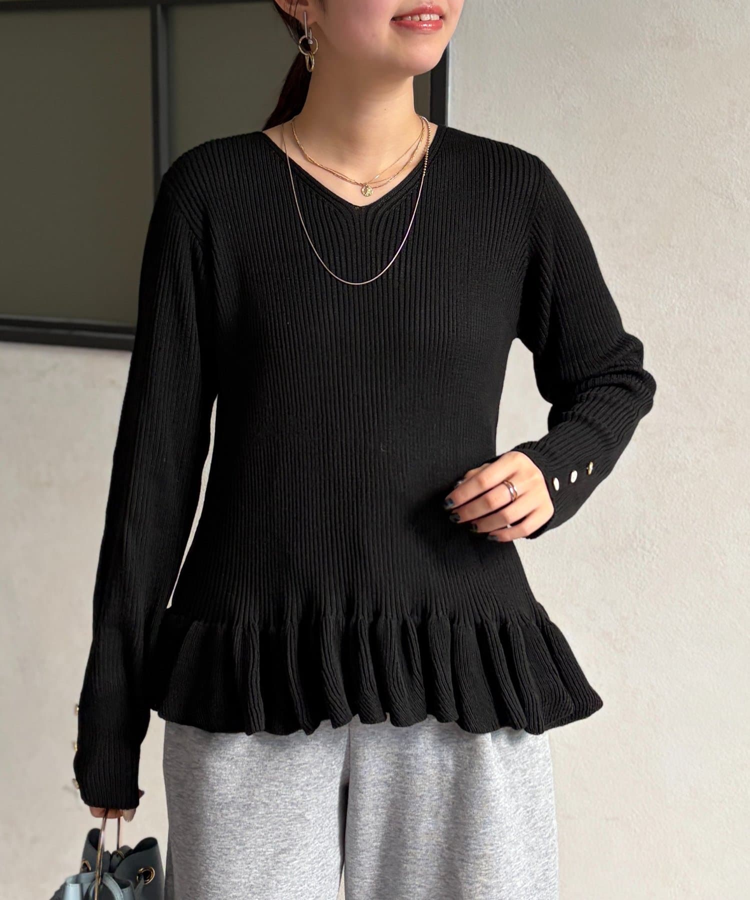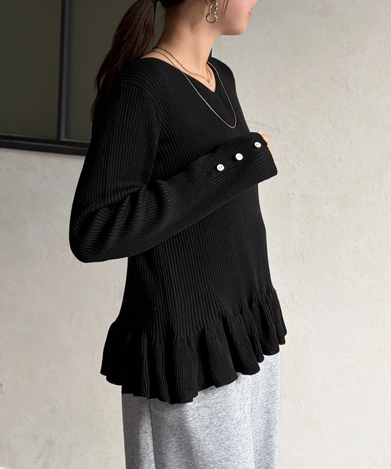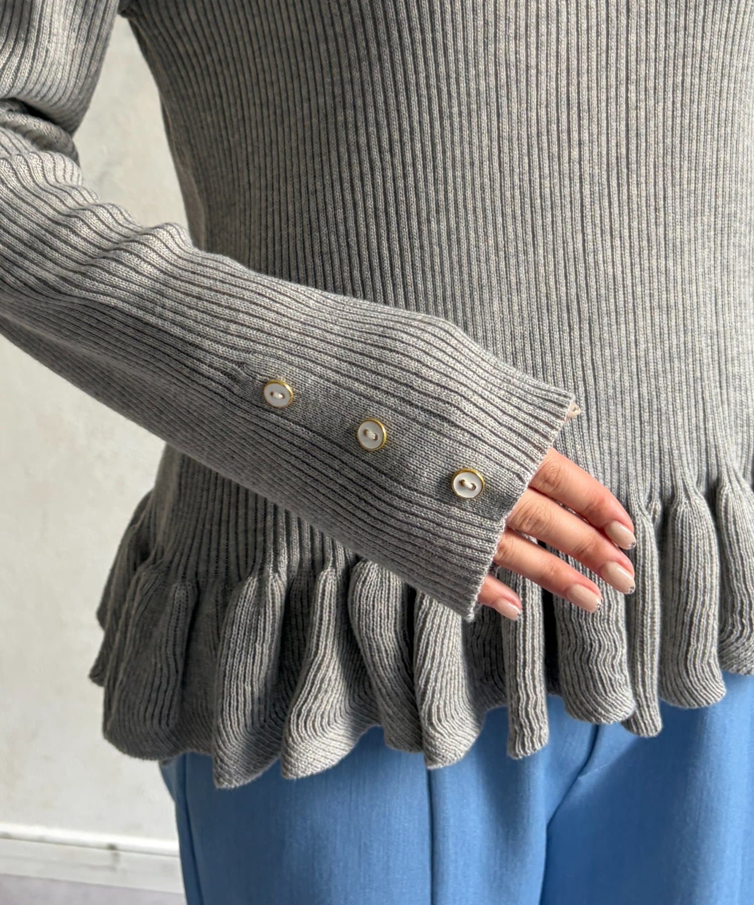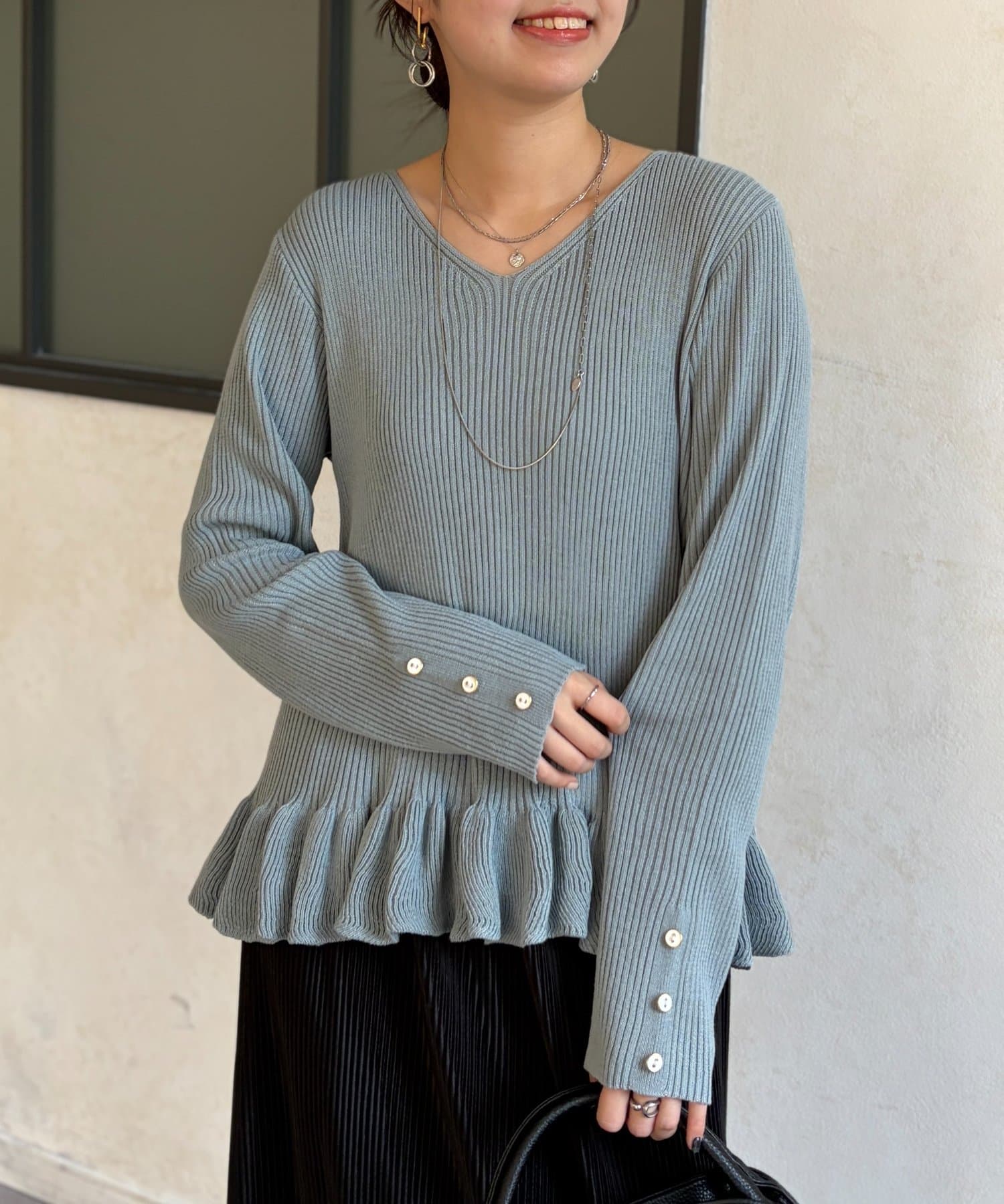 裾のフリルが大人かわいいニット。