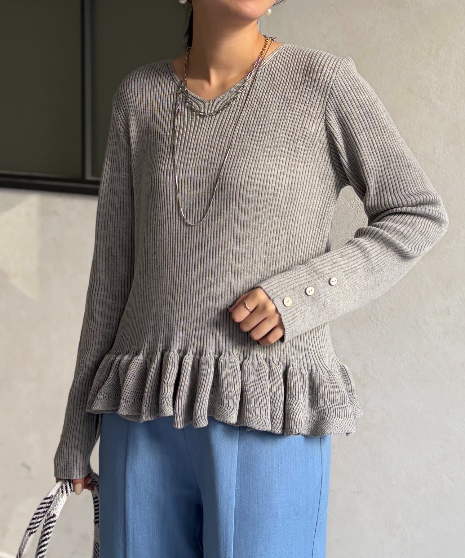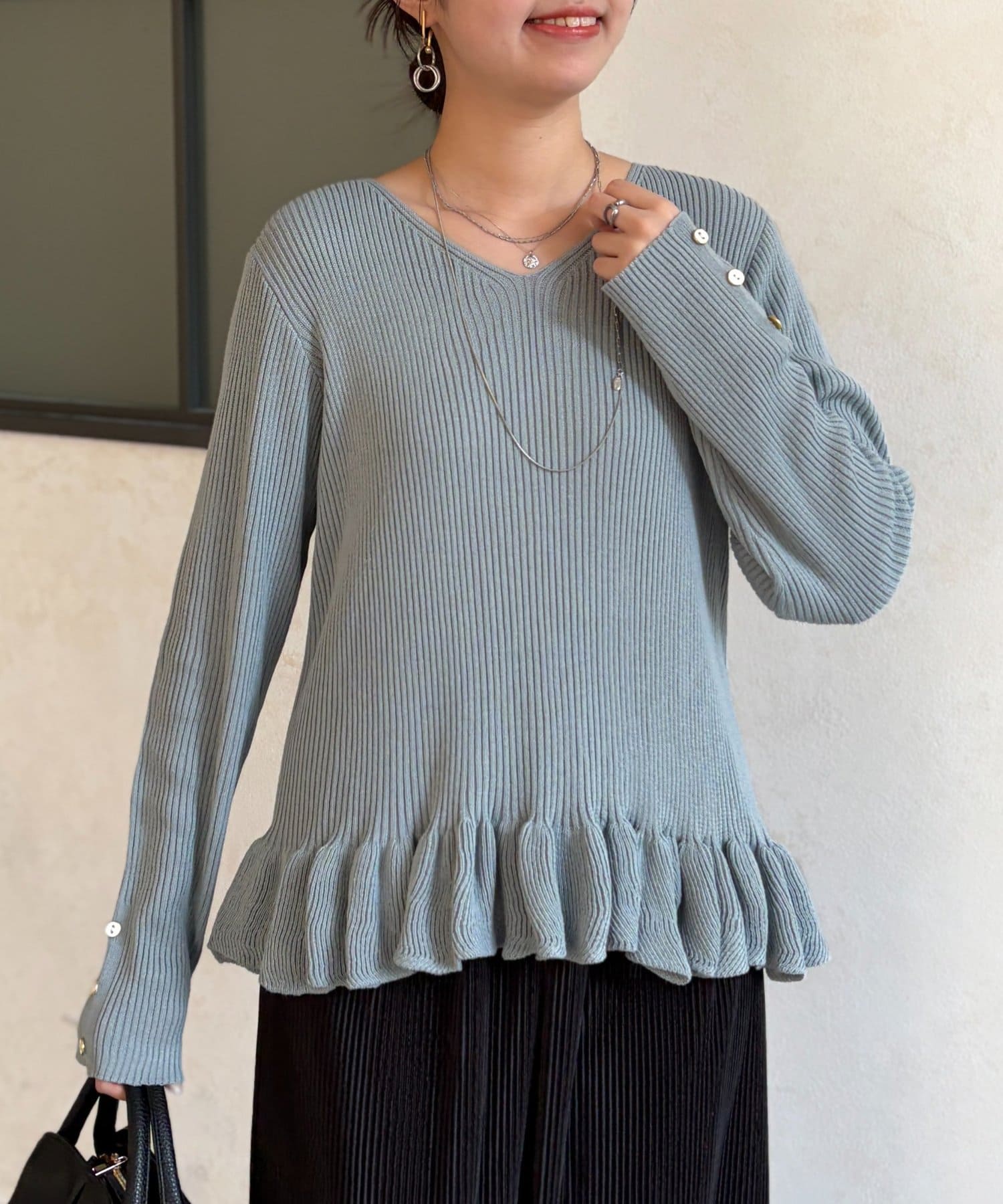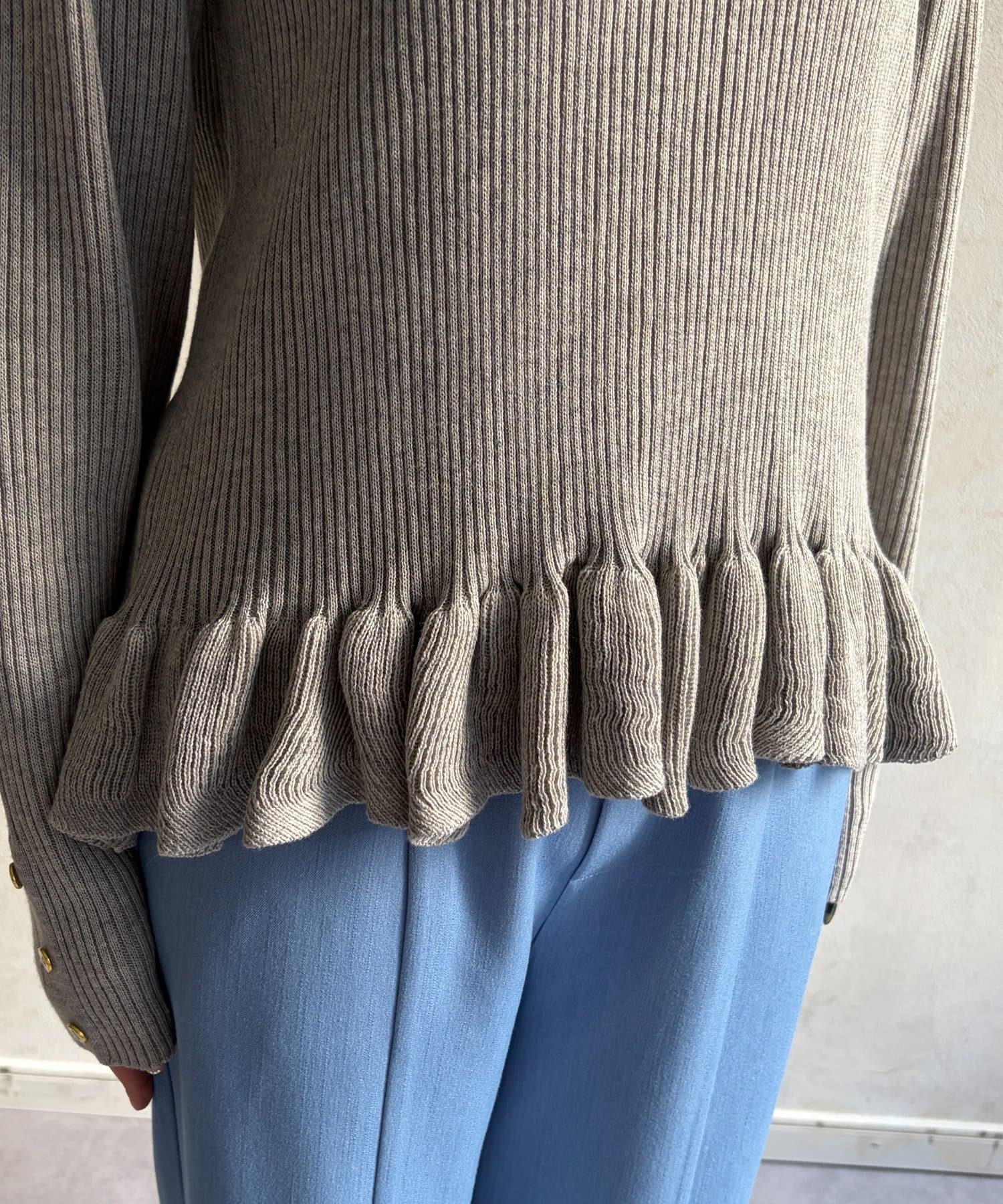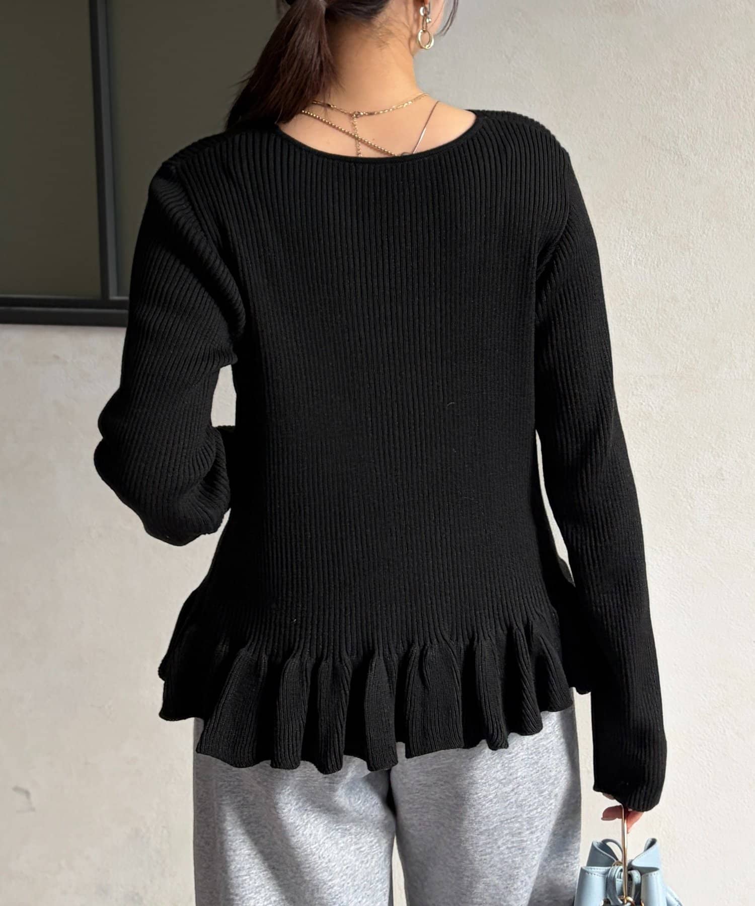 裾のフリルが大人かわいいニット。