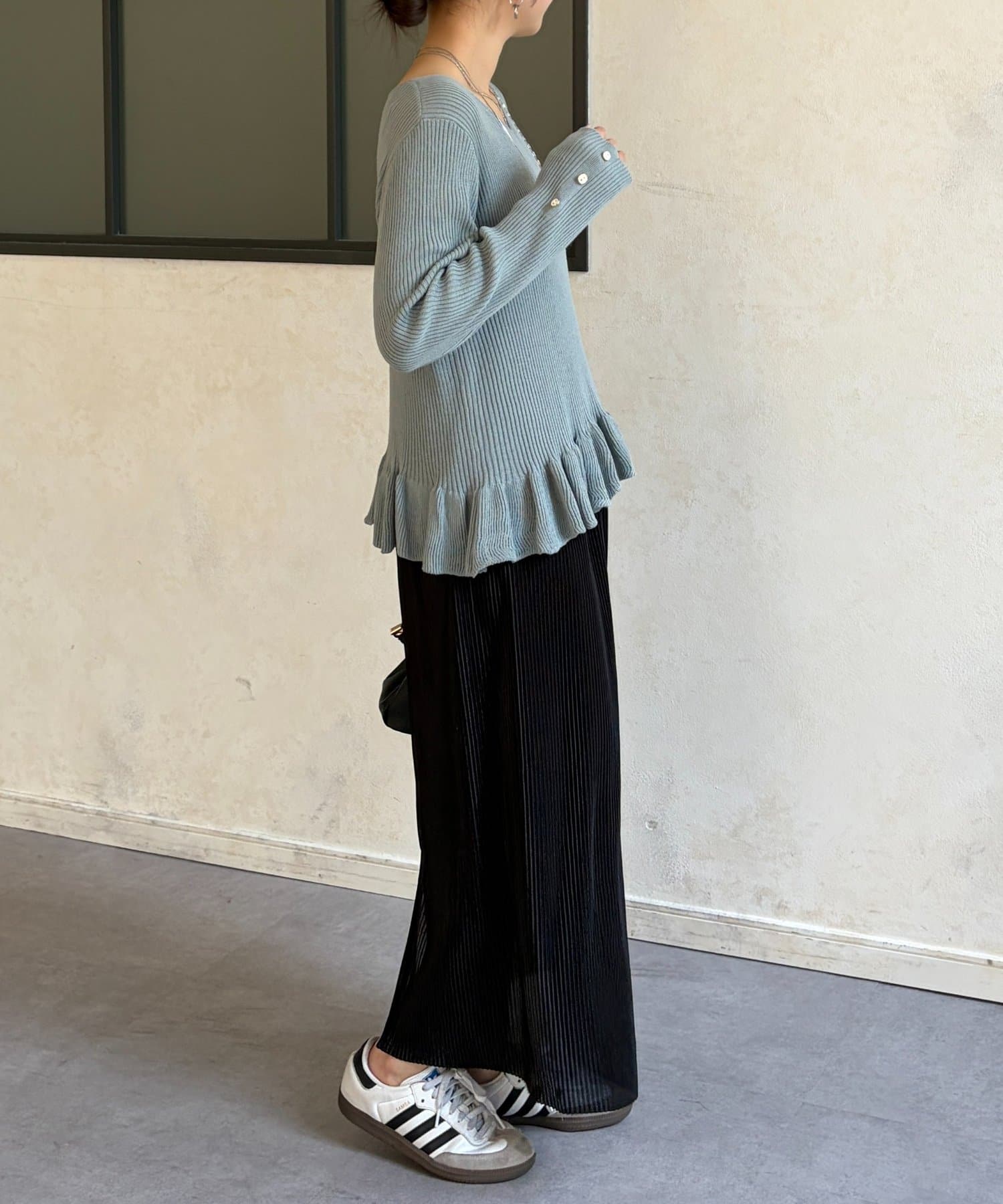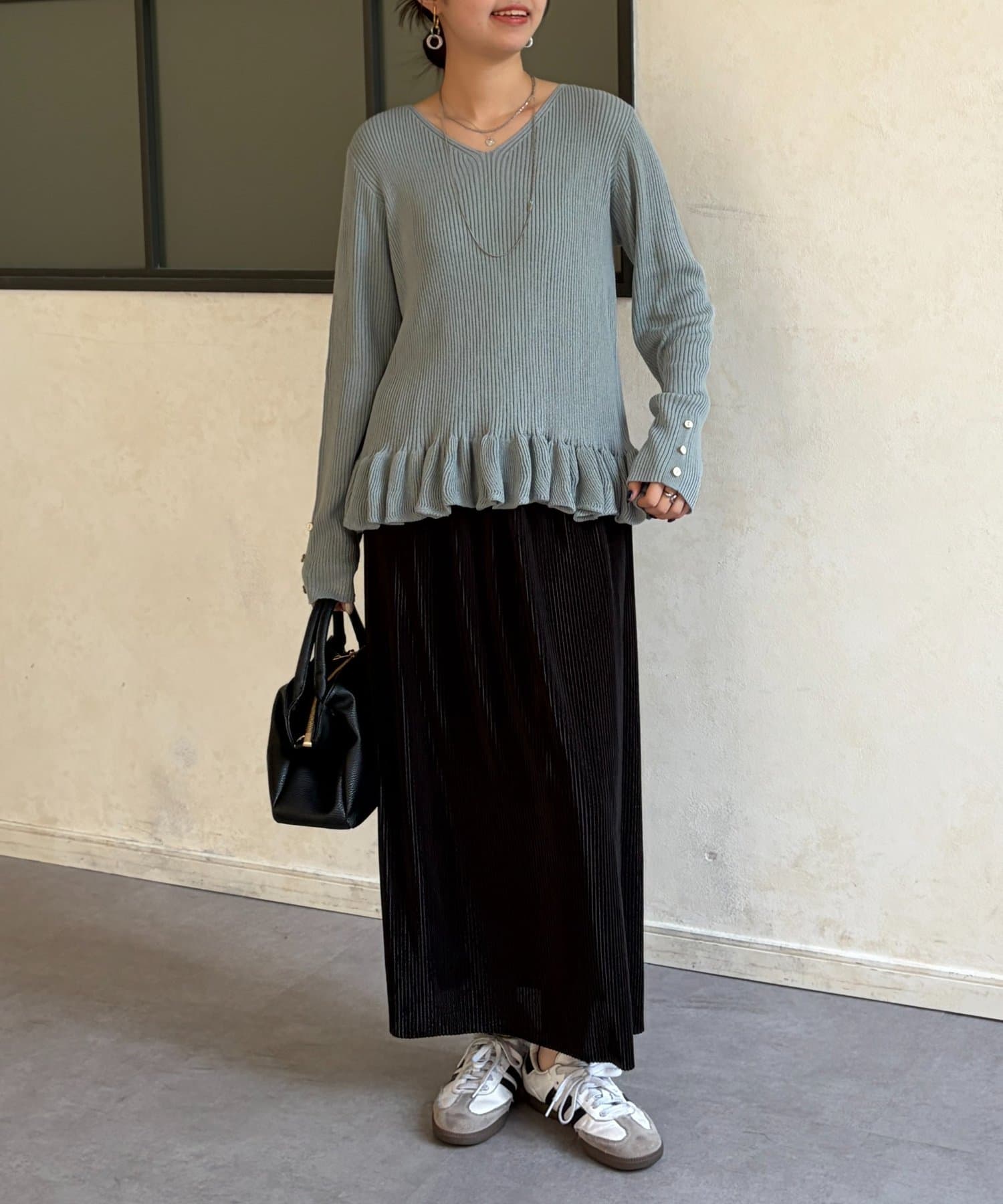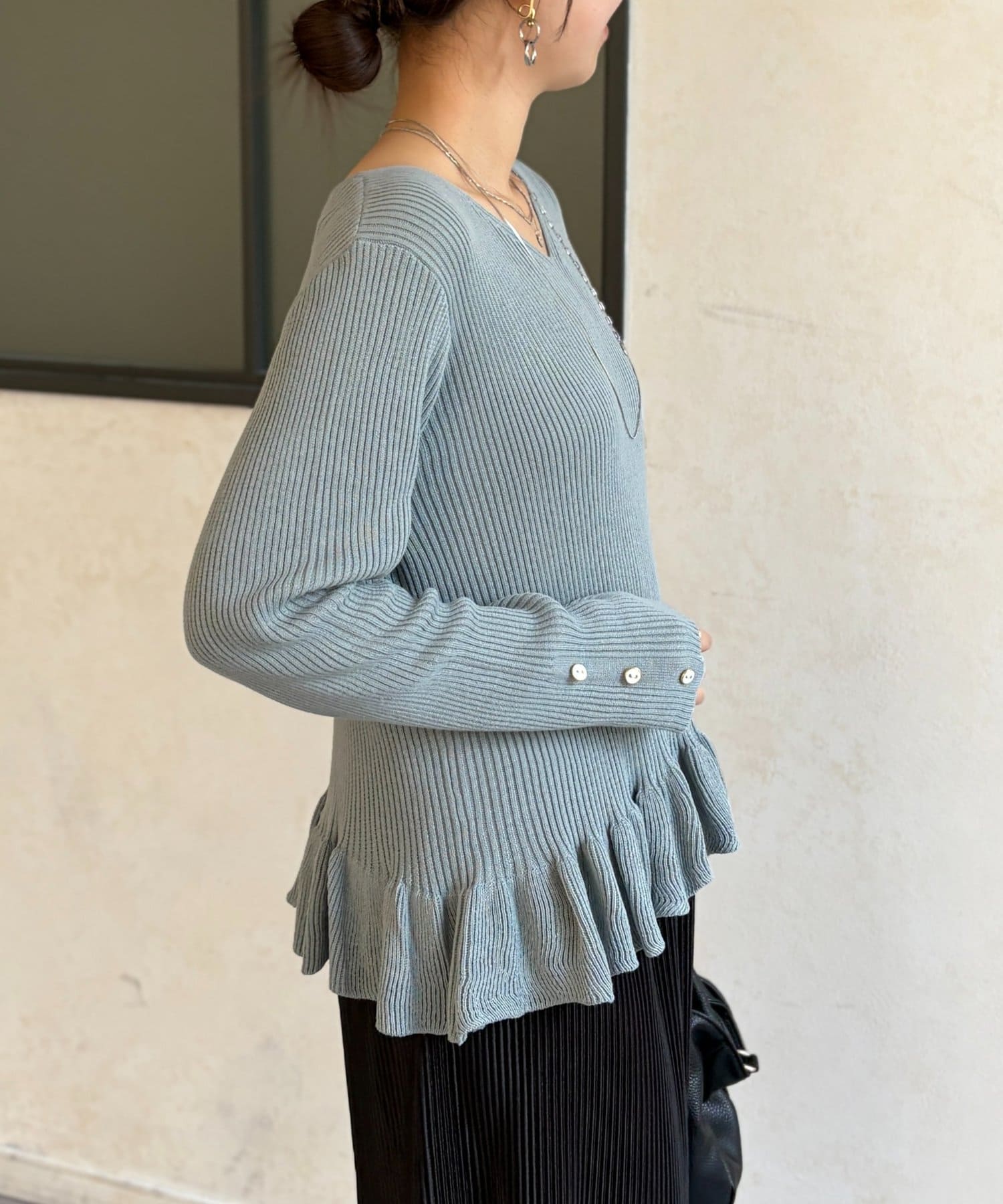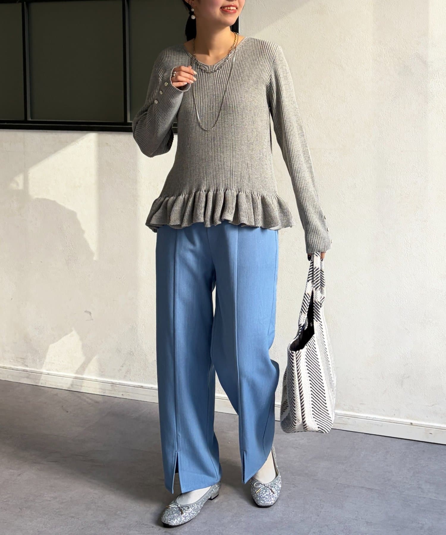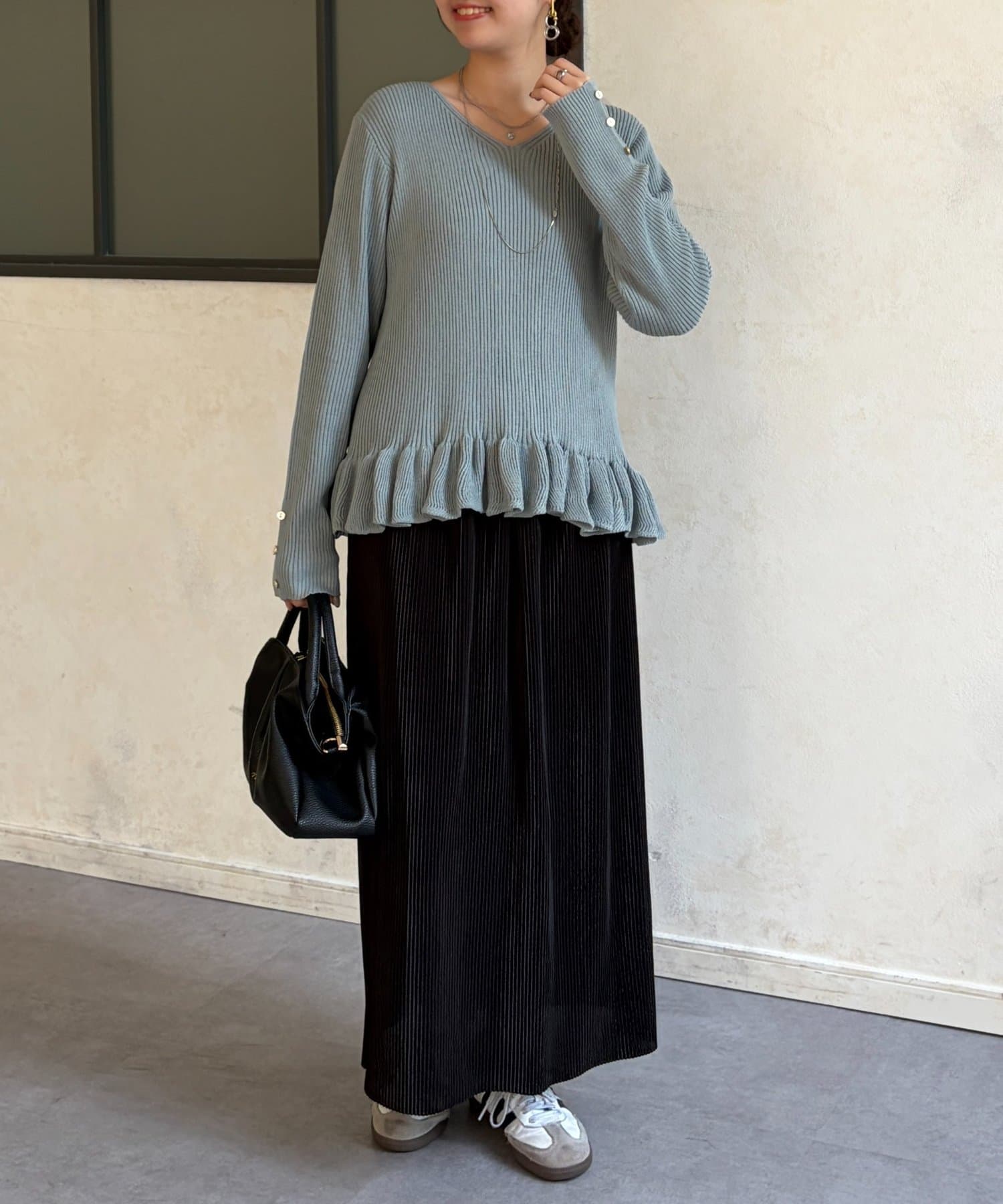 裾のフリルが大人かわいいニット。