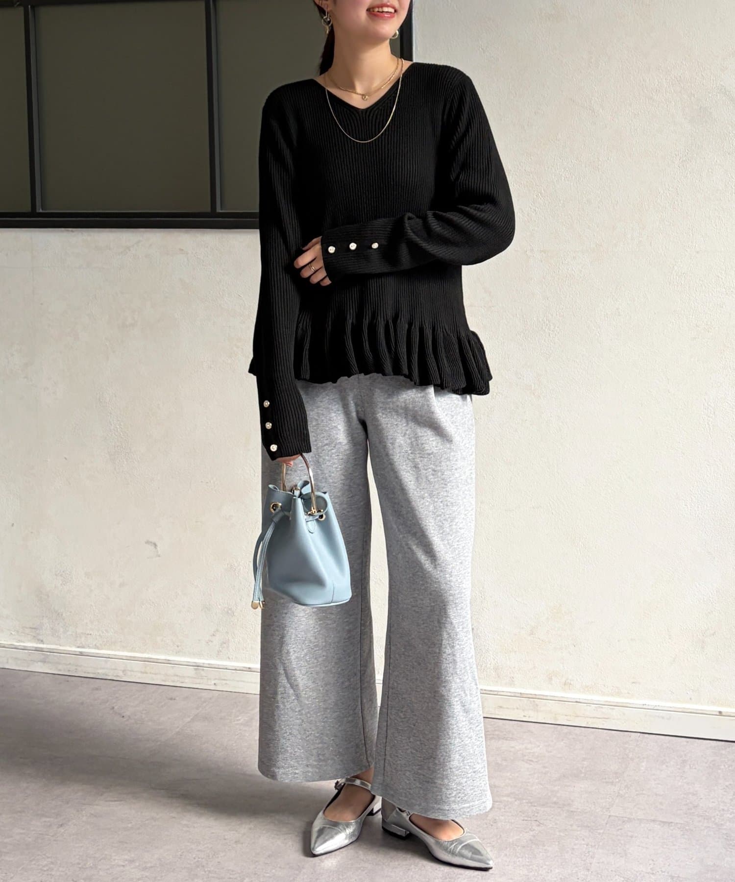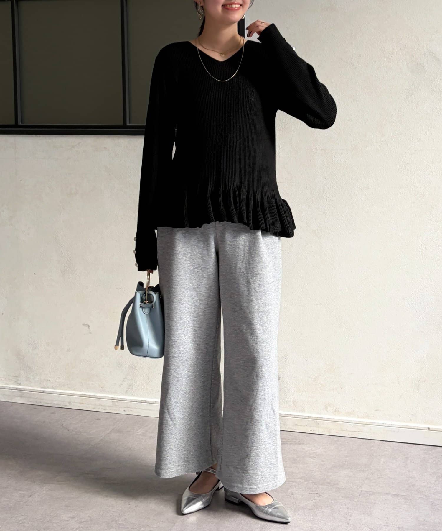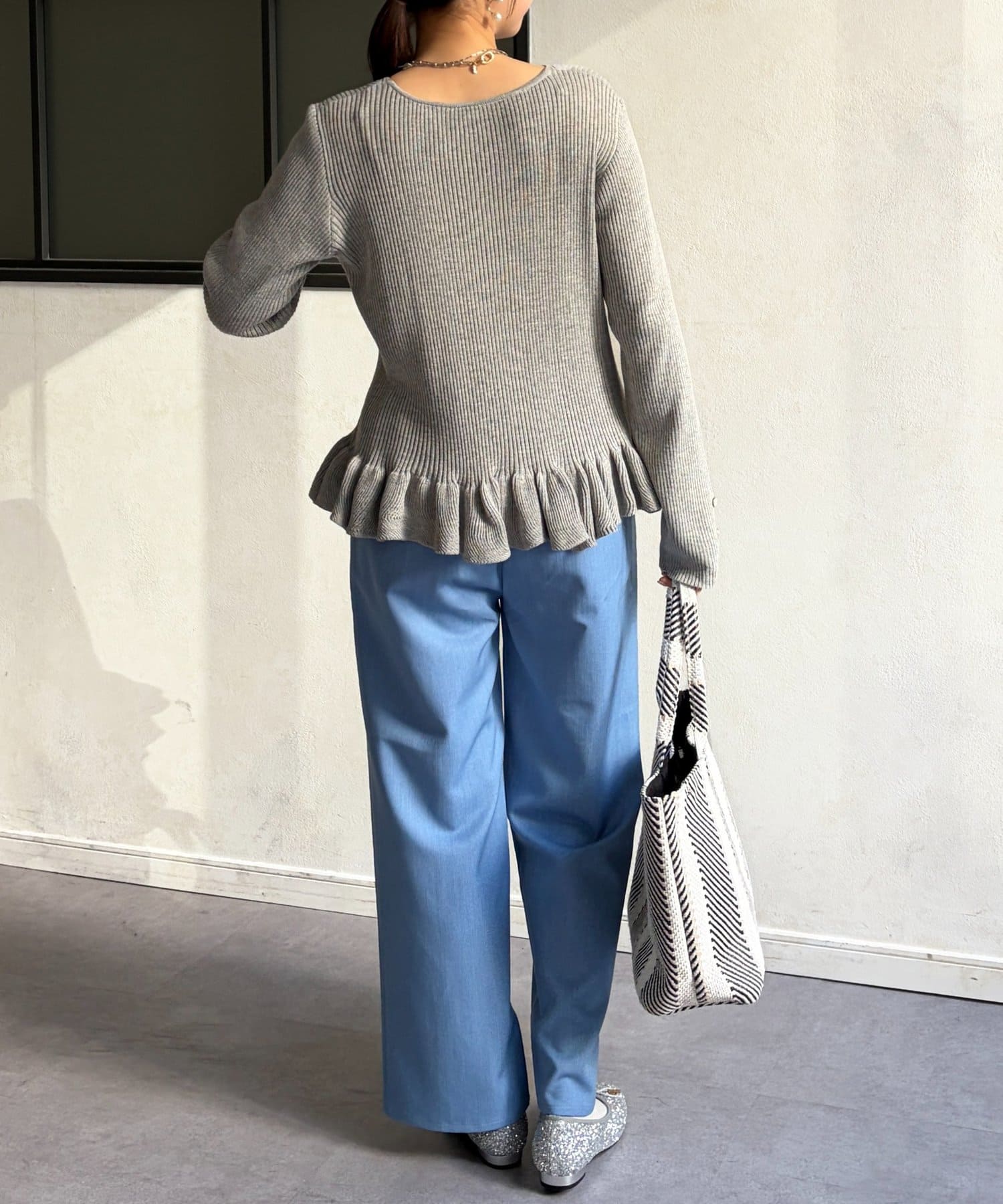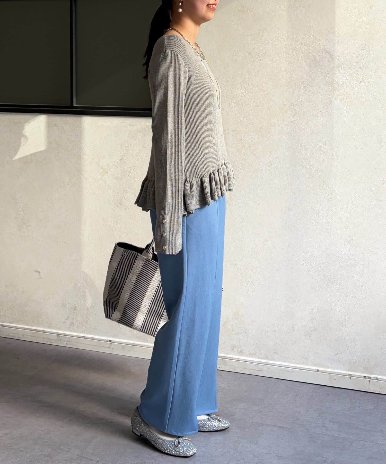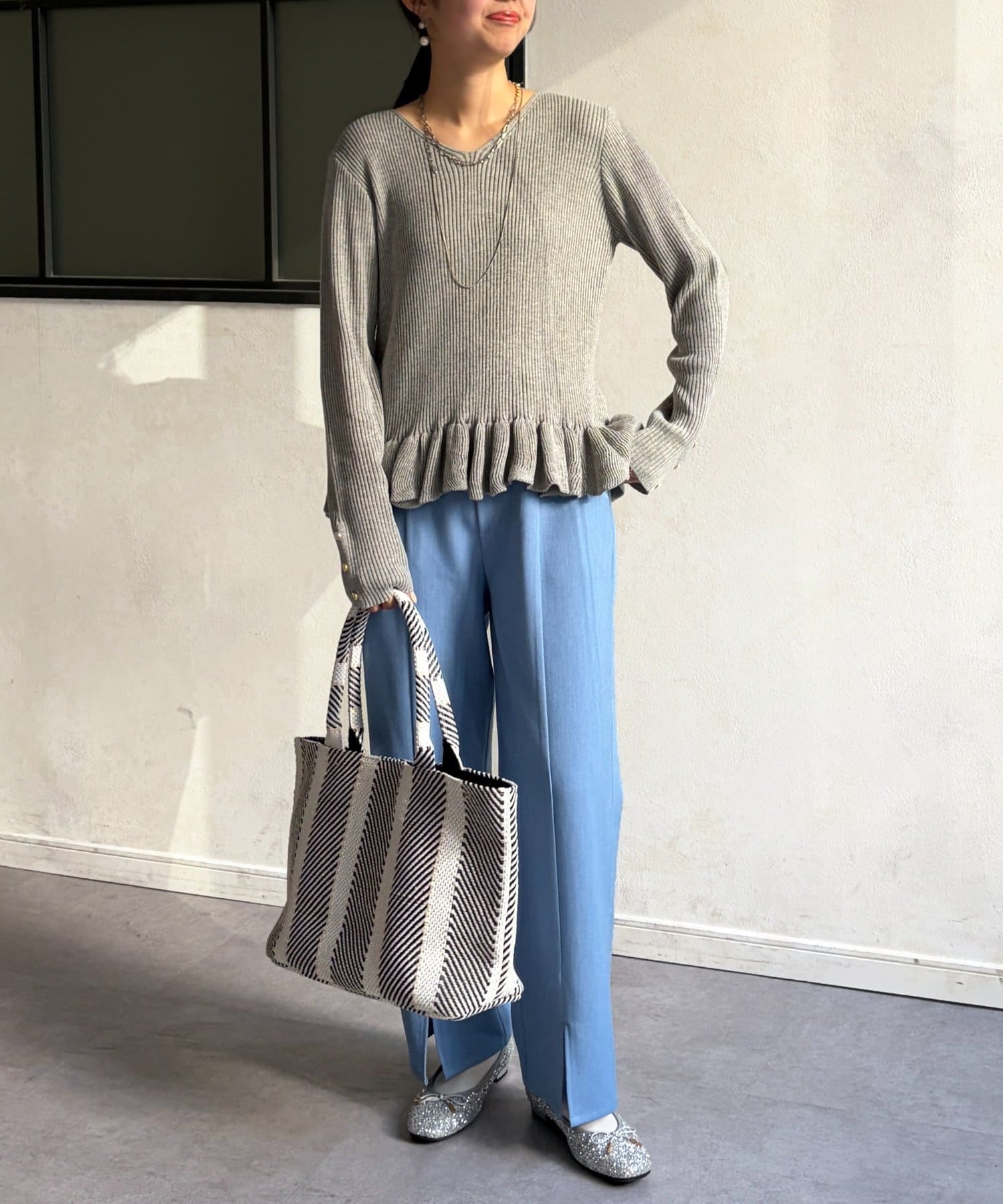 裾のフリルが大人かわいいニット。