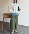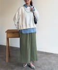 ナロースカートワイドパンツ、シャツをレイヤードするなど、シンプルなデザインなので幅広く活躍するアイテムです。