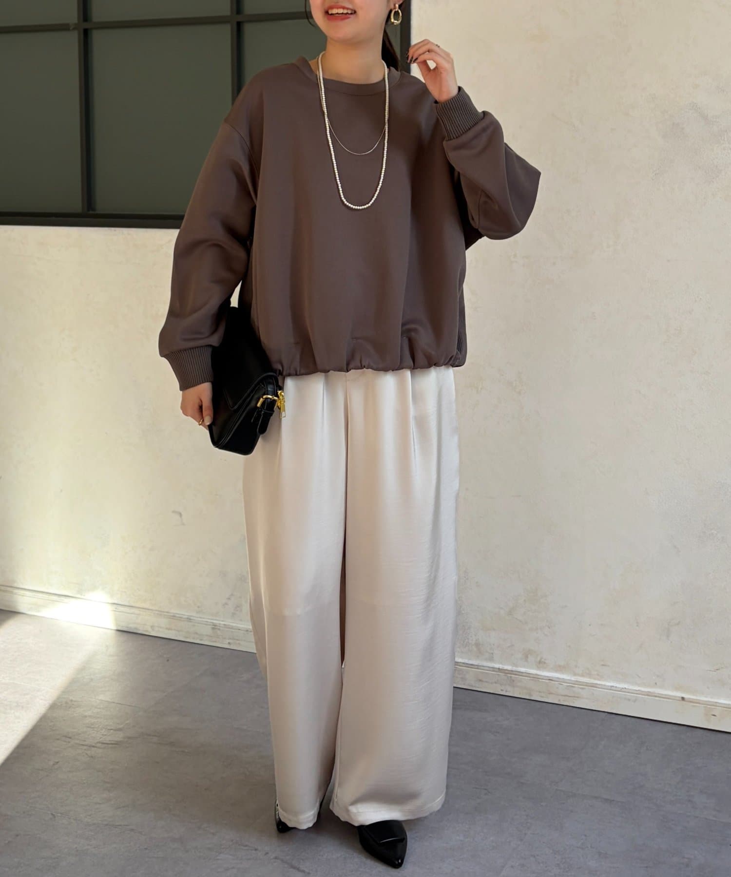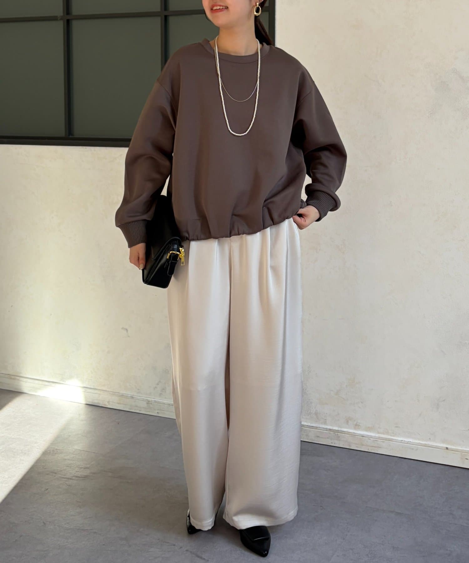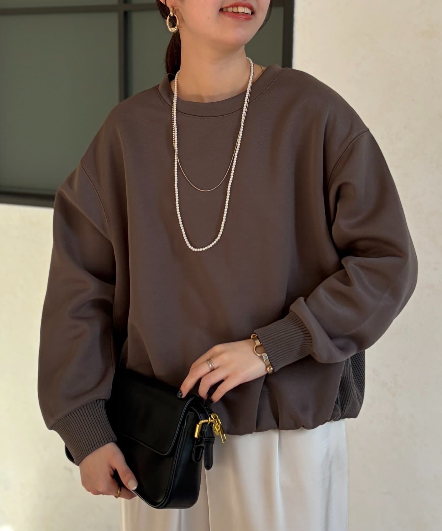 インせずスタイルアップが叶う軽量ボンディングプルオーバー