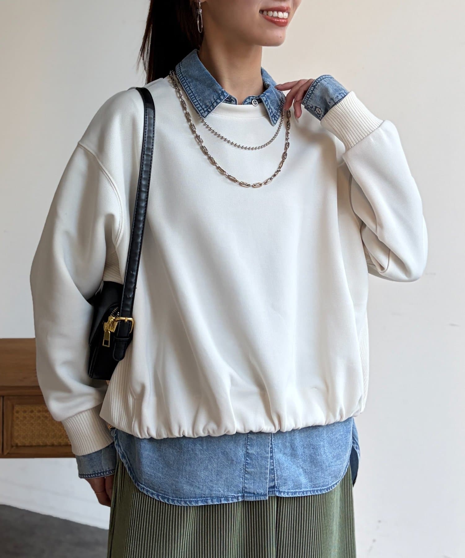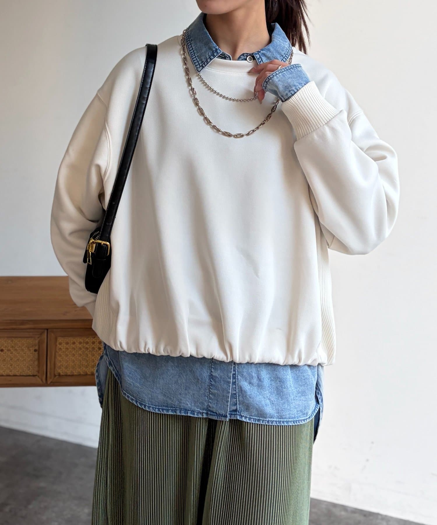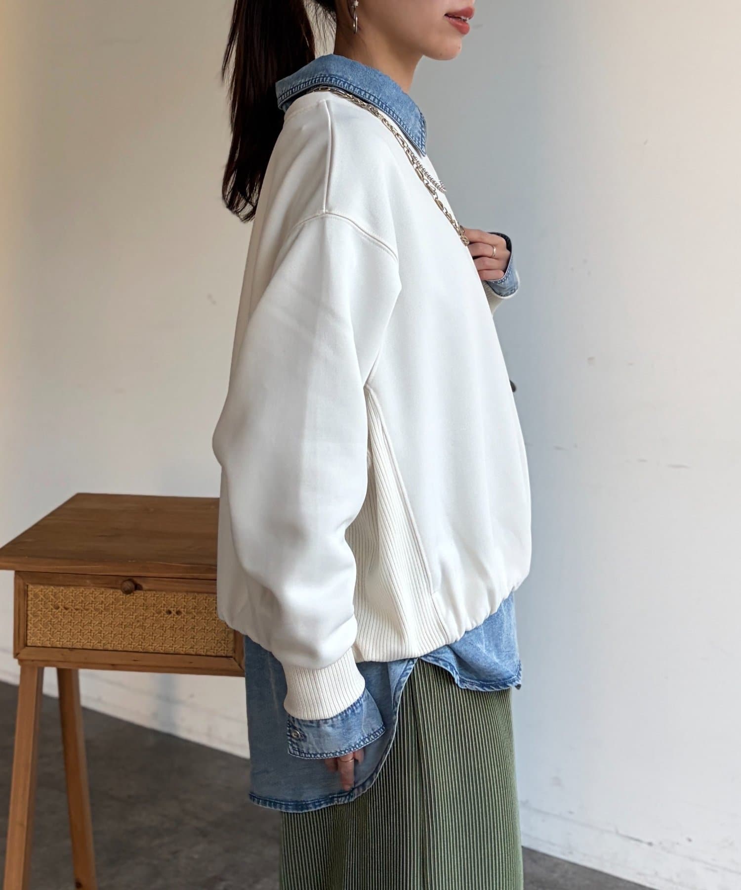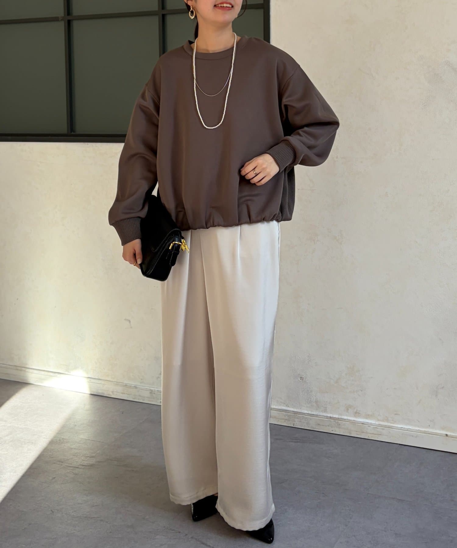 インせずスタイルアップが叶う軽量ボンディングプルオーバー