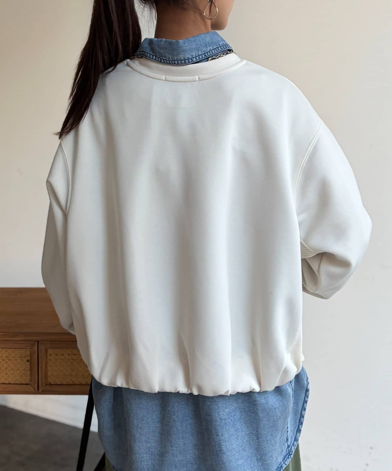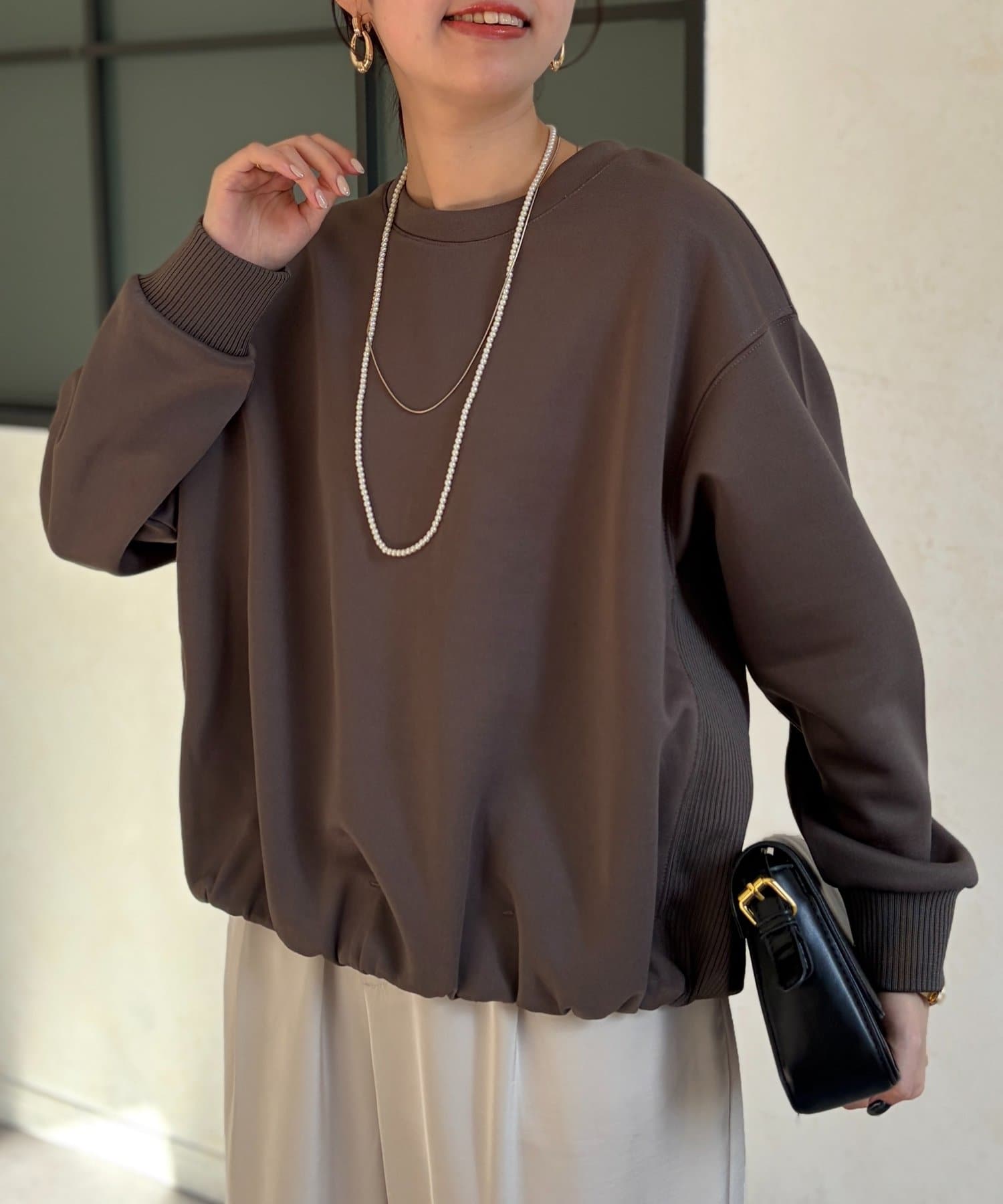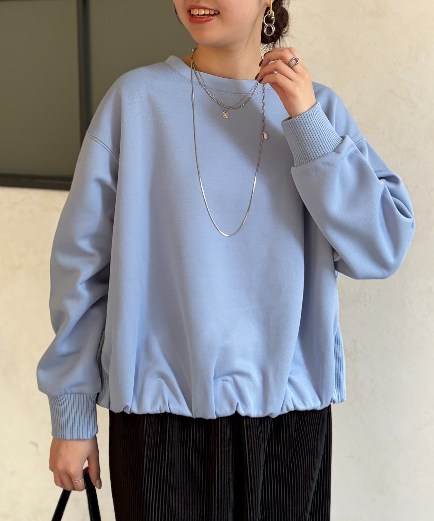 軽量ボンディング裾ボリュームプルオーバー