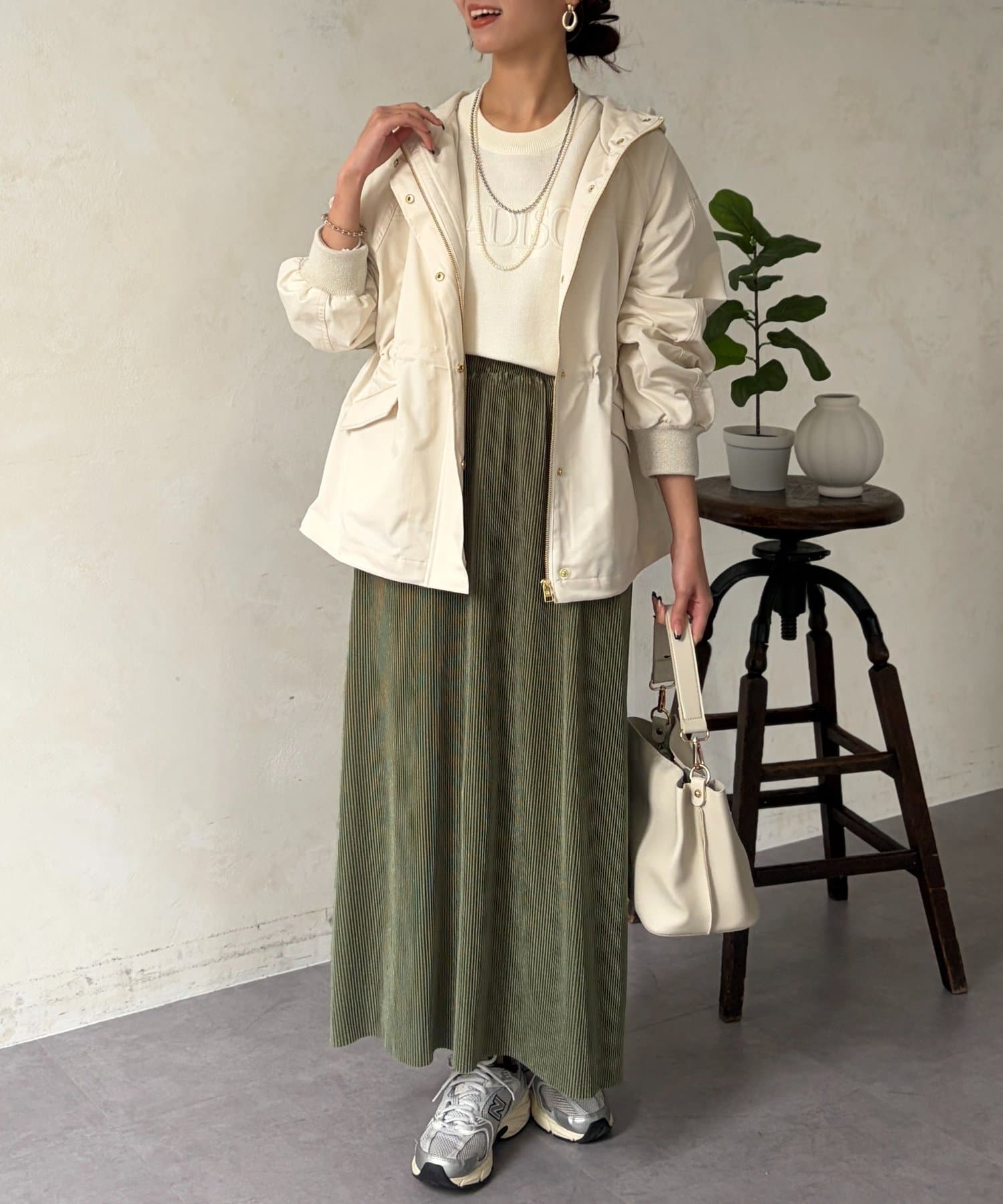 ボンディングプルオーバー×ナロースカート