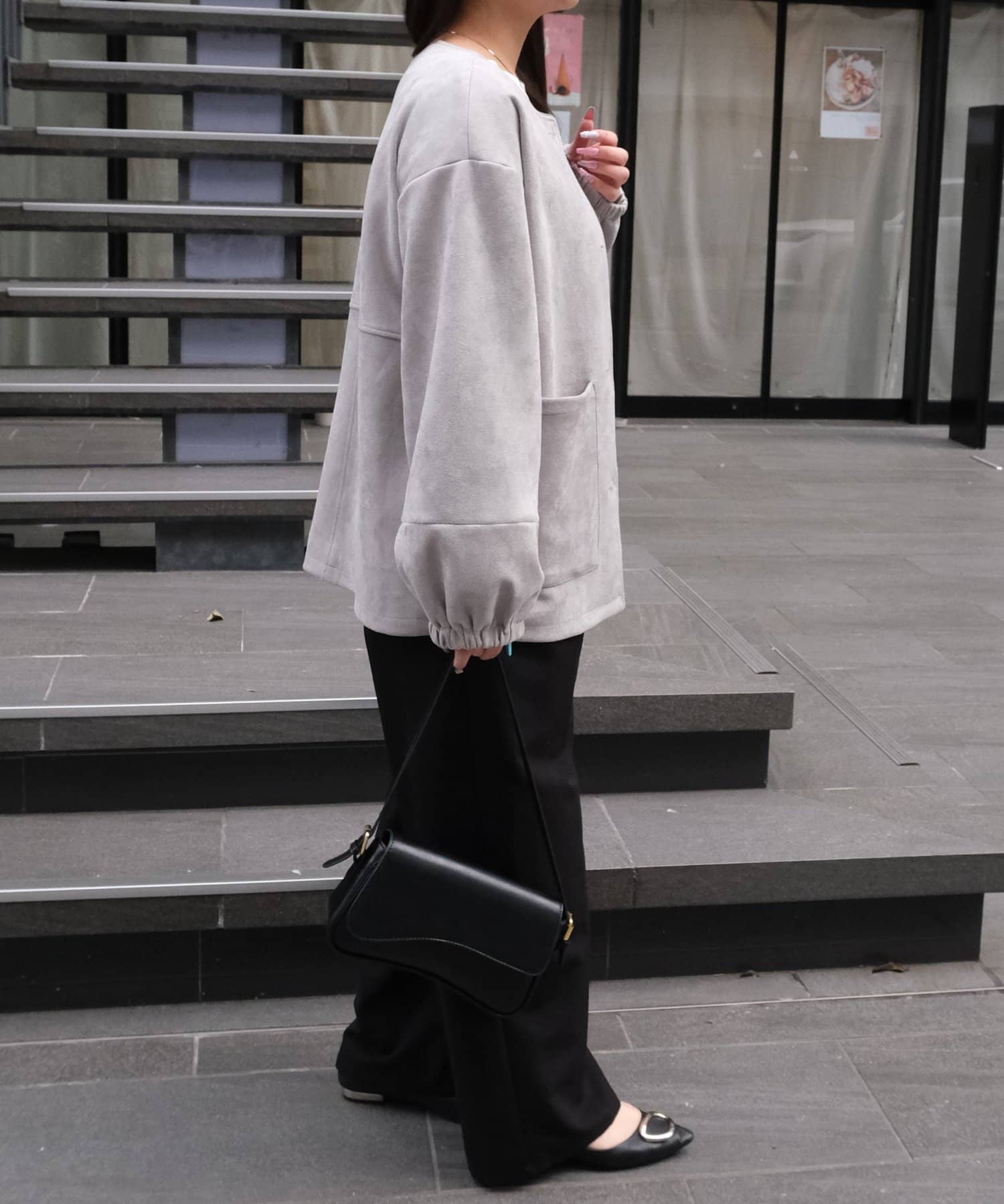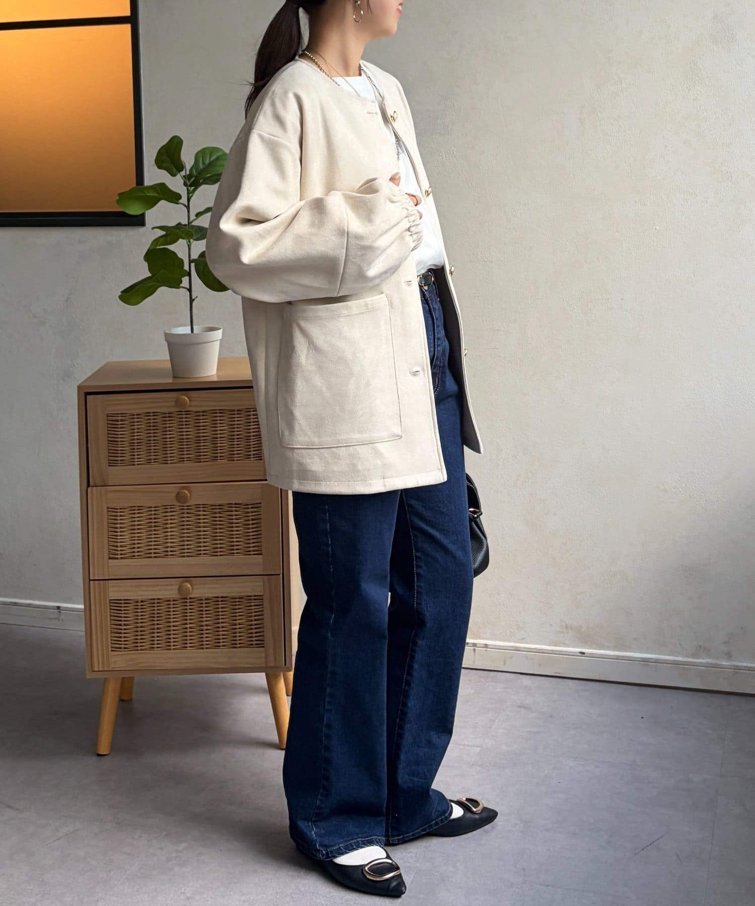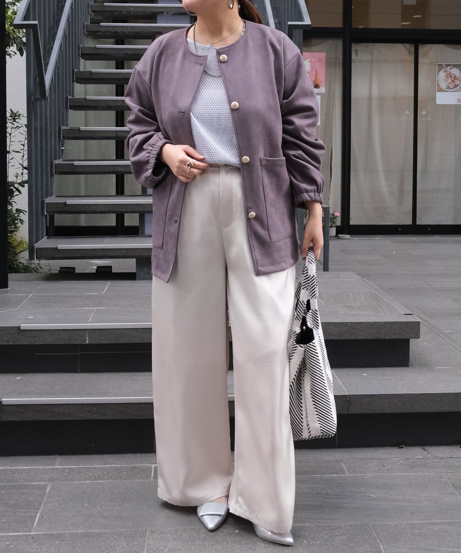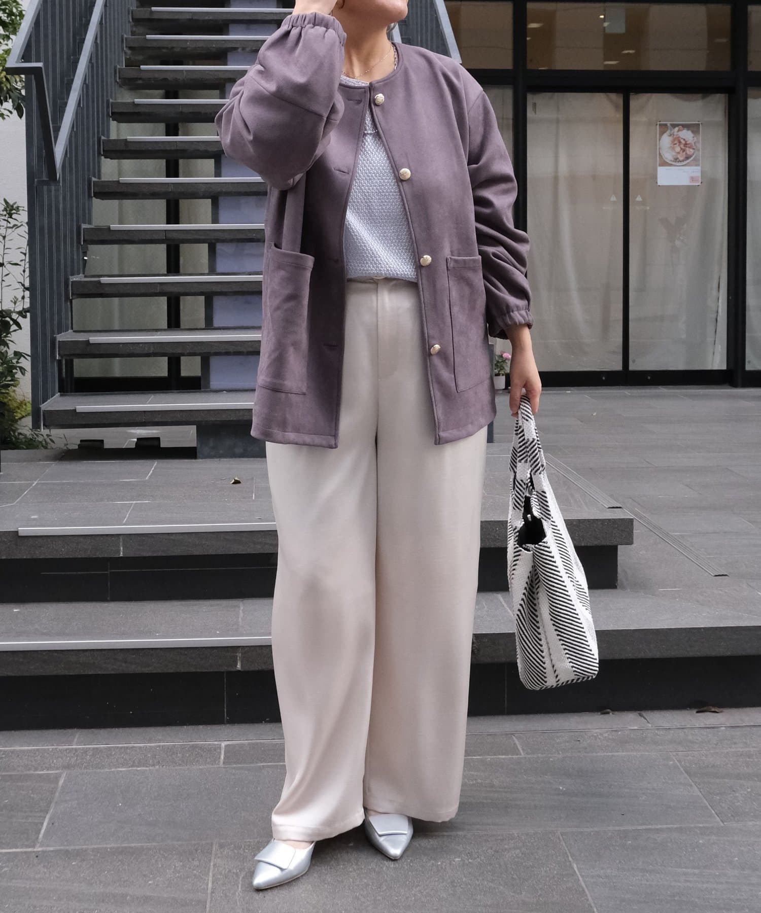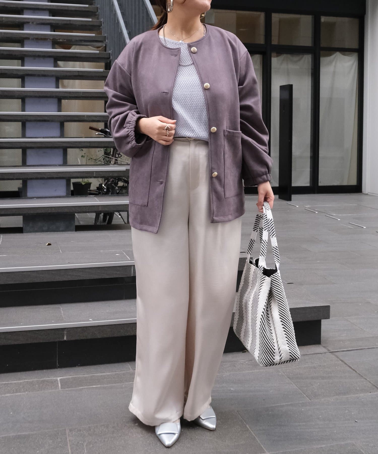 コクーンシルエットなので丸みがあり女性らしい印象に。