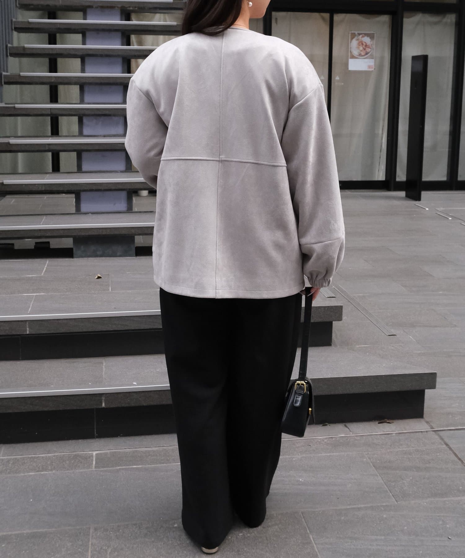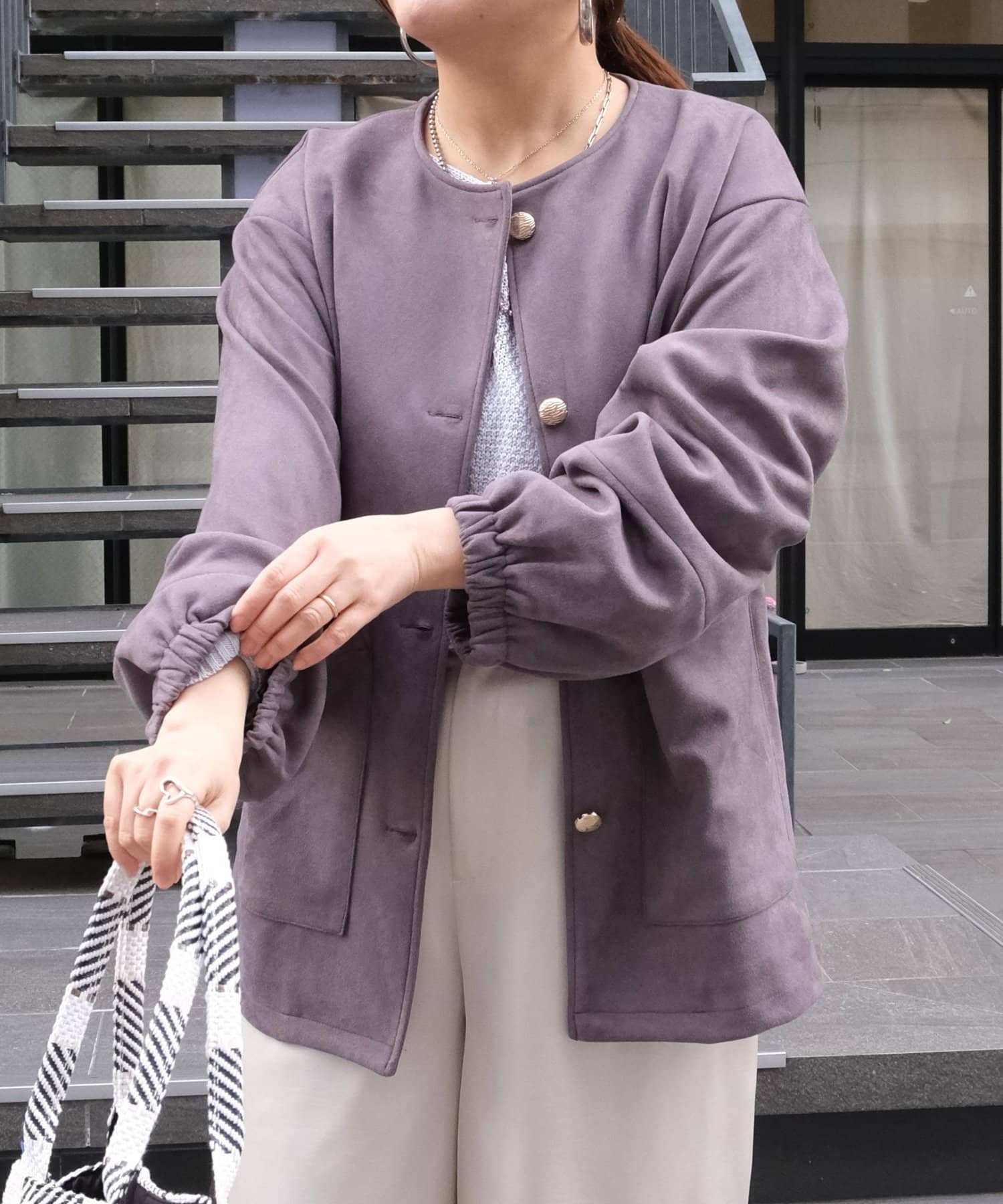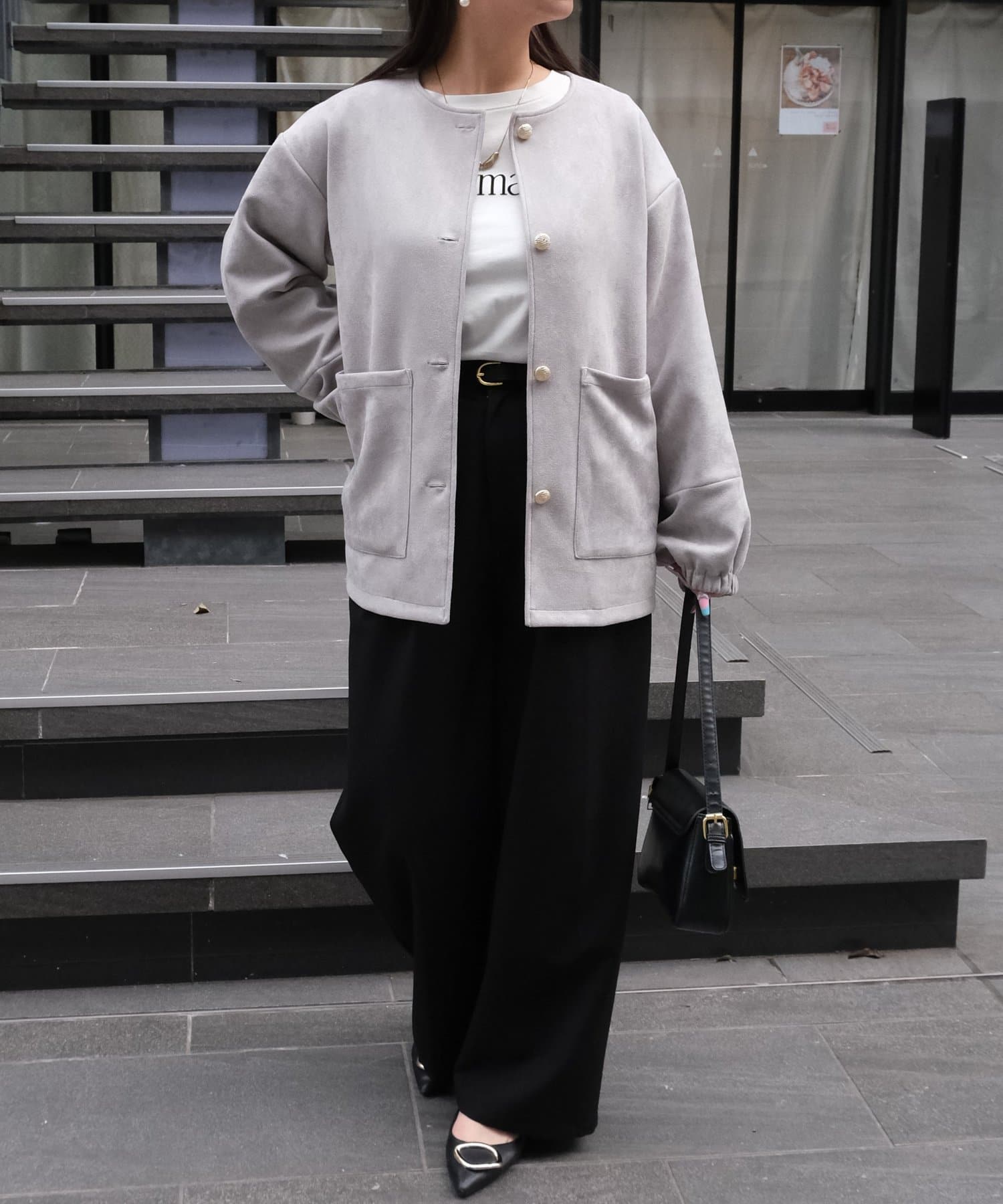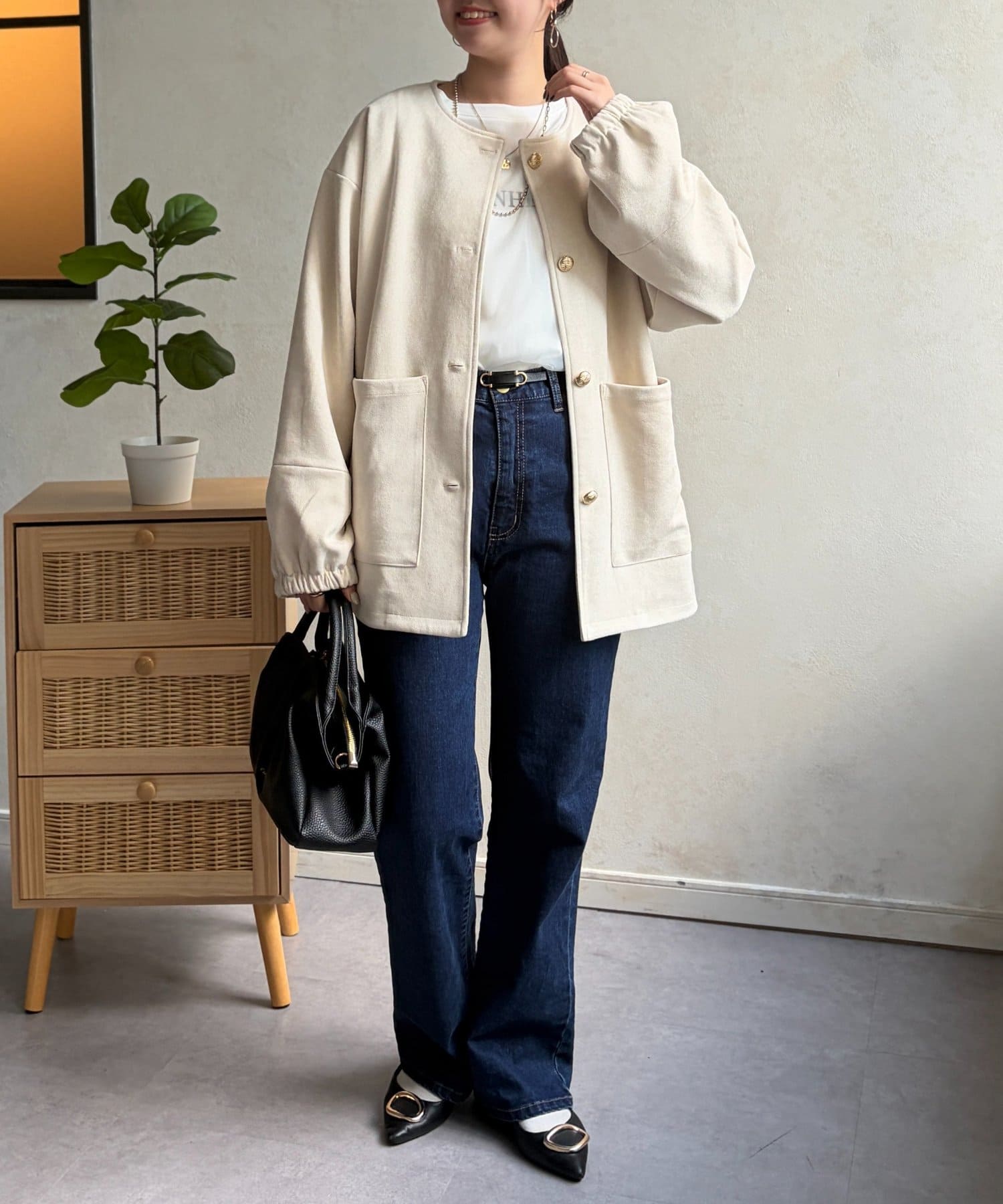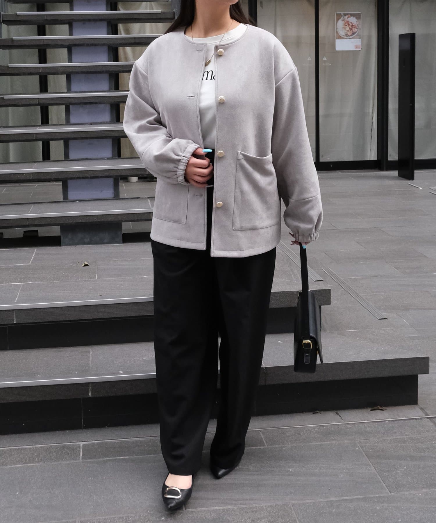 コクーンシルエットなので丸みがあり女性らしい印象に。