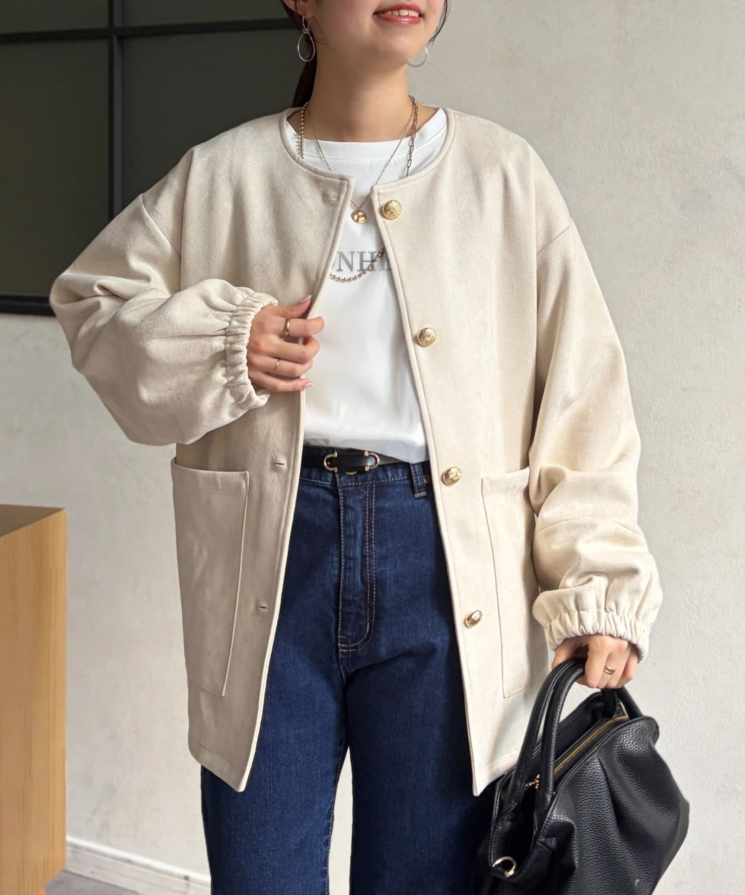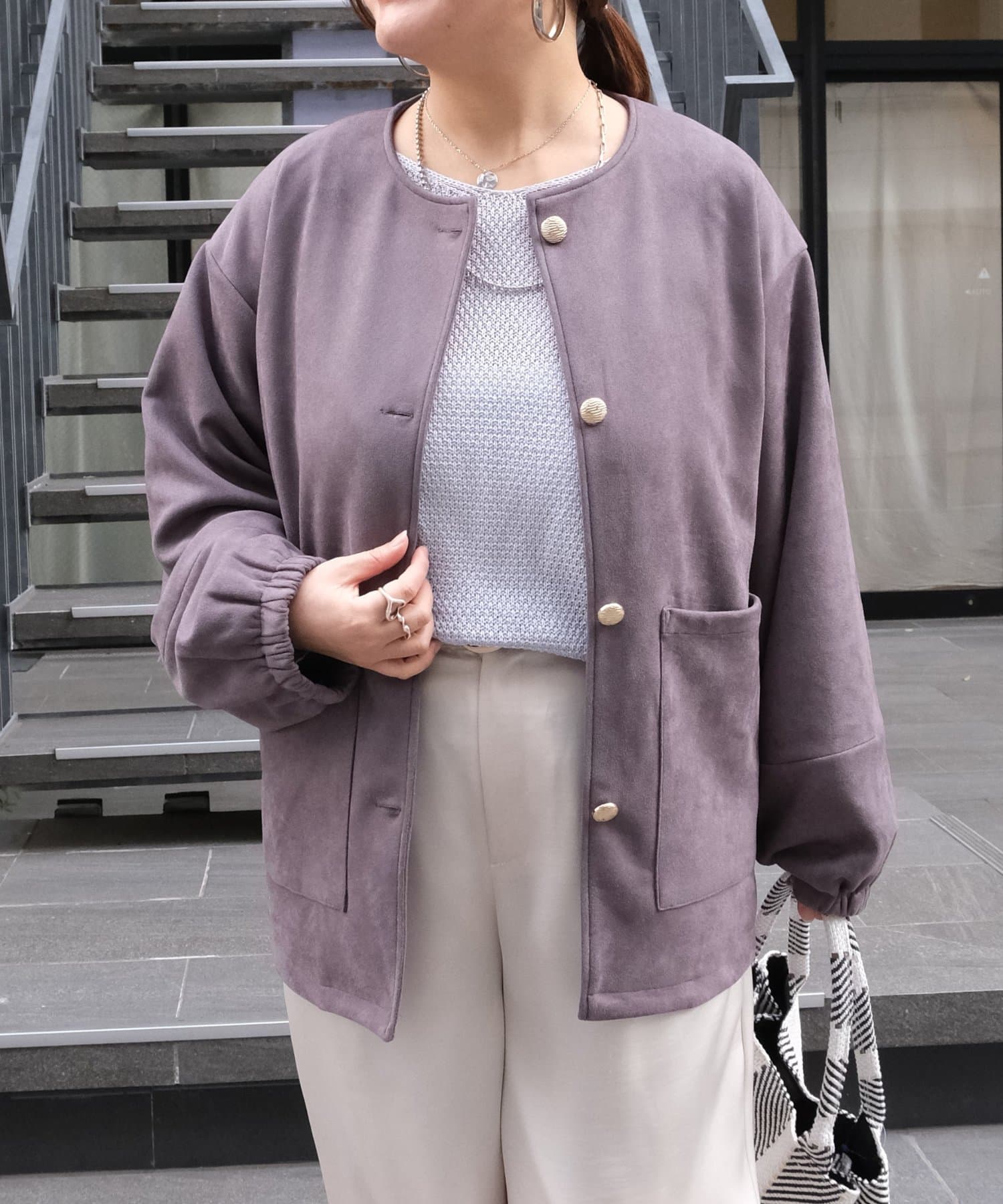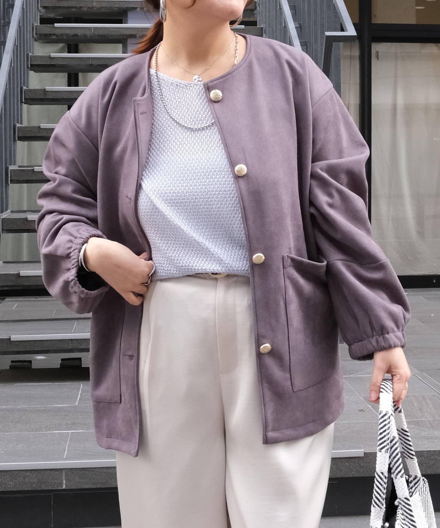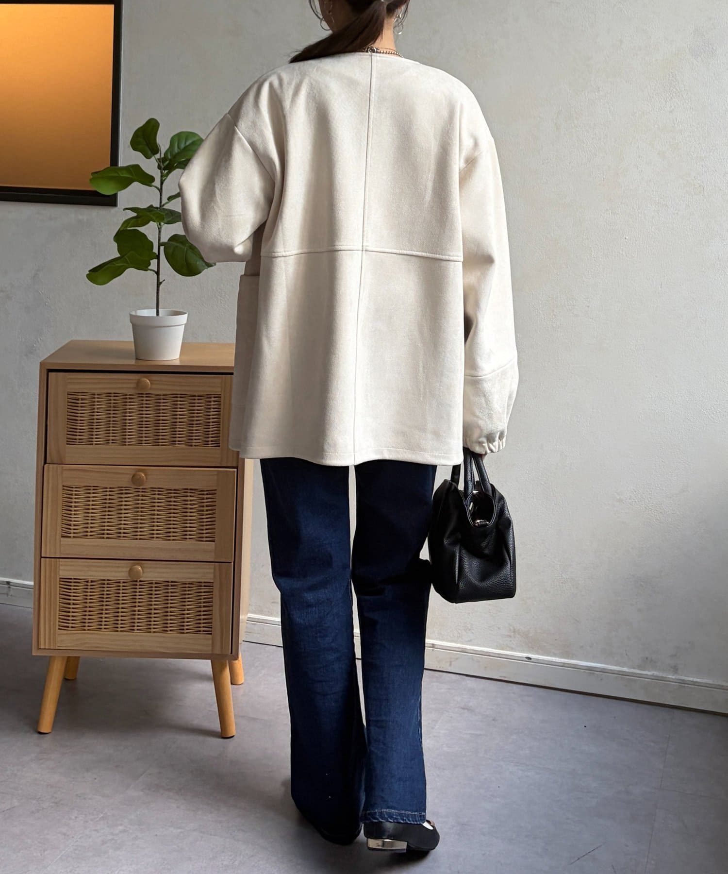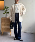 コクーンシルエットなので丸みがあり女性らしい印象に。