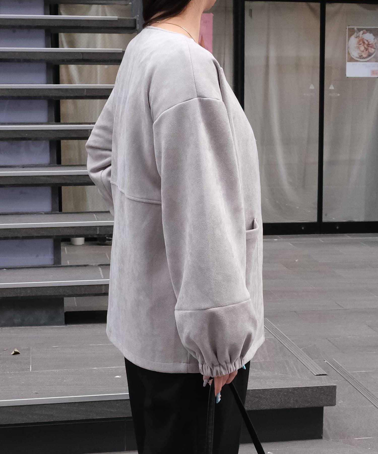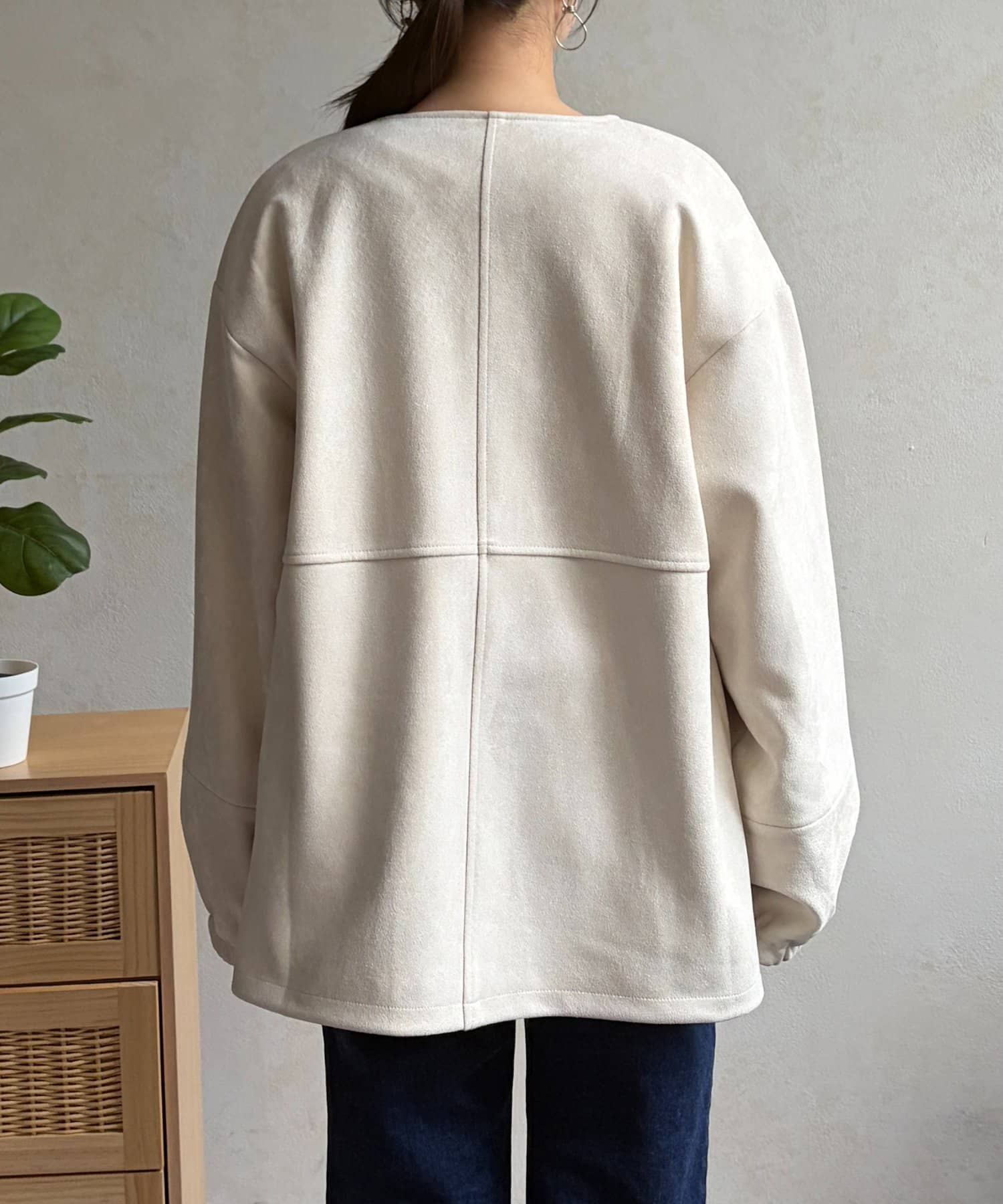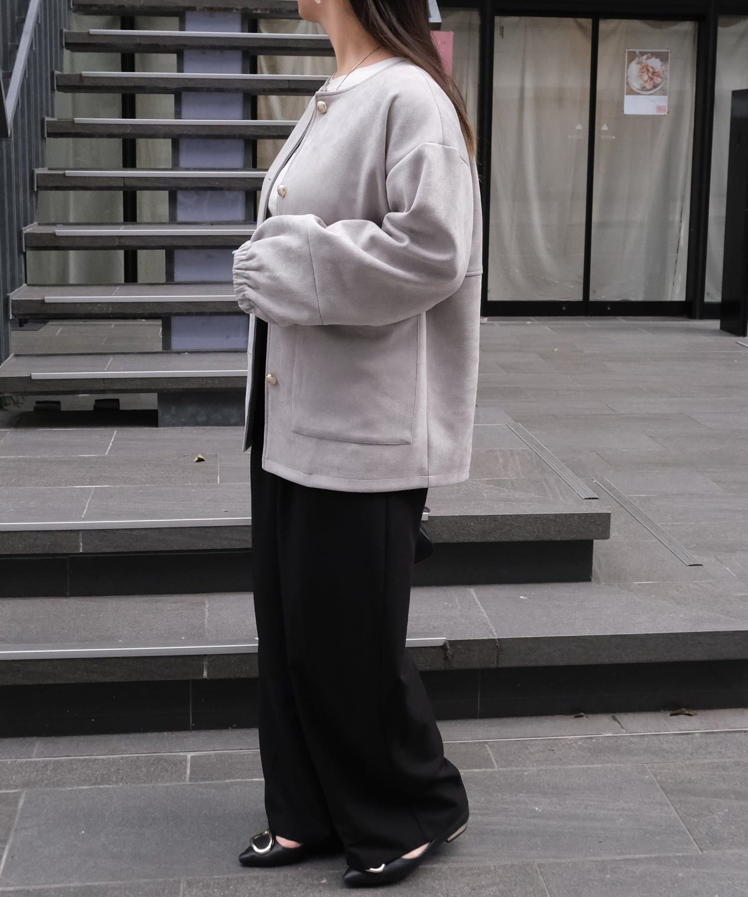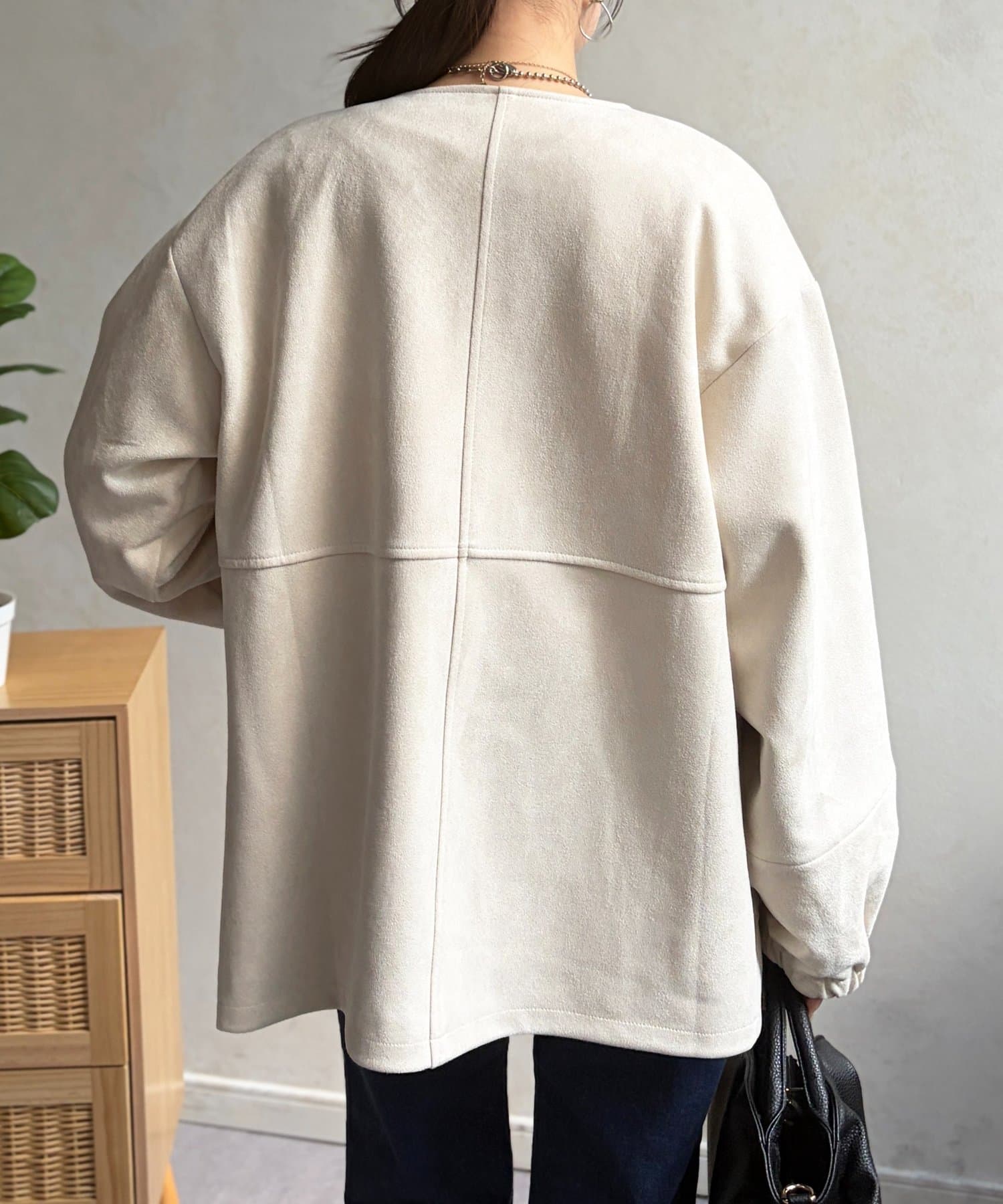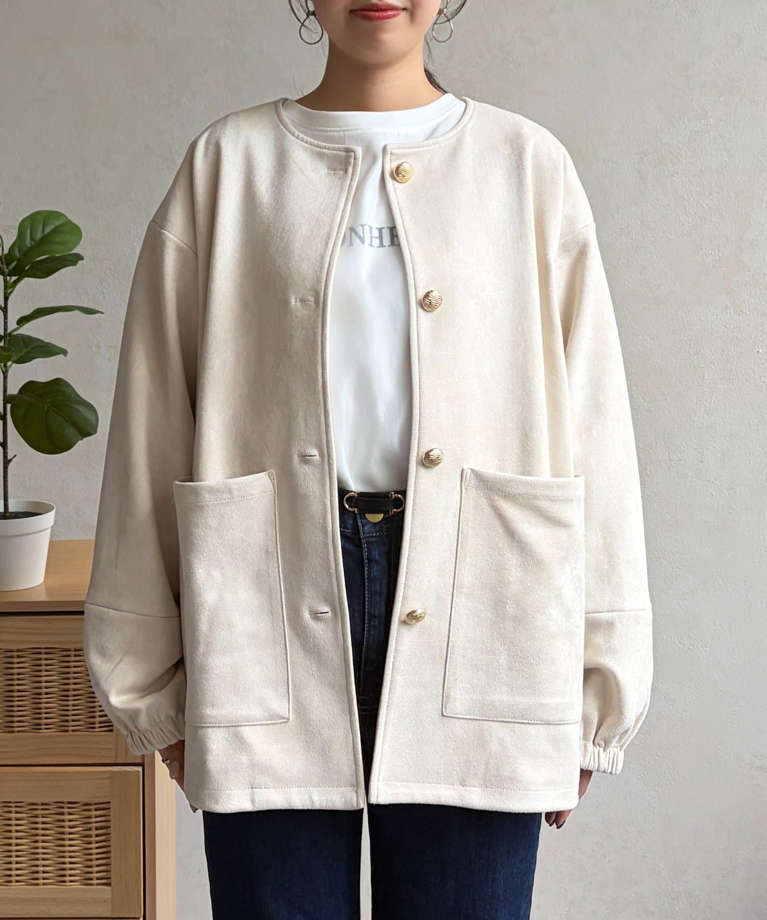 コクーンシルエットなので丸みがあり女性らしい印象に。