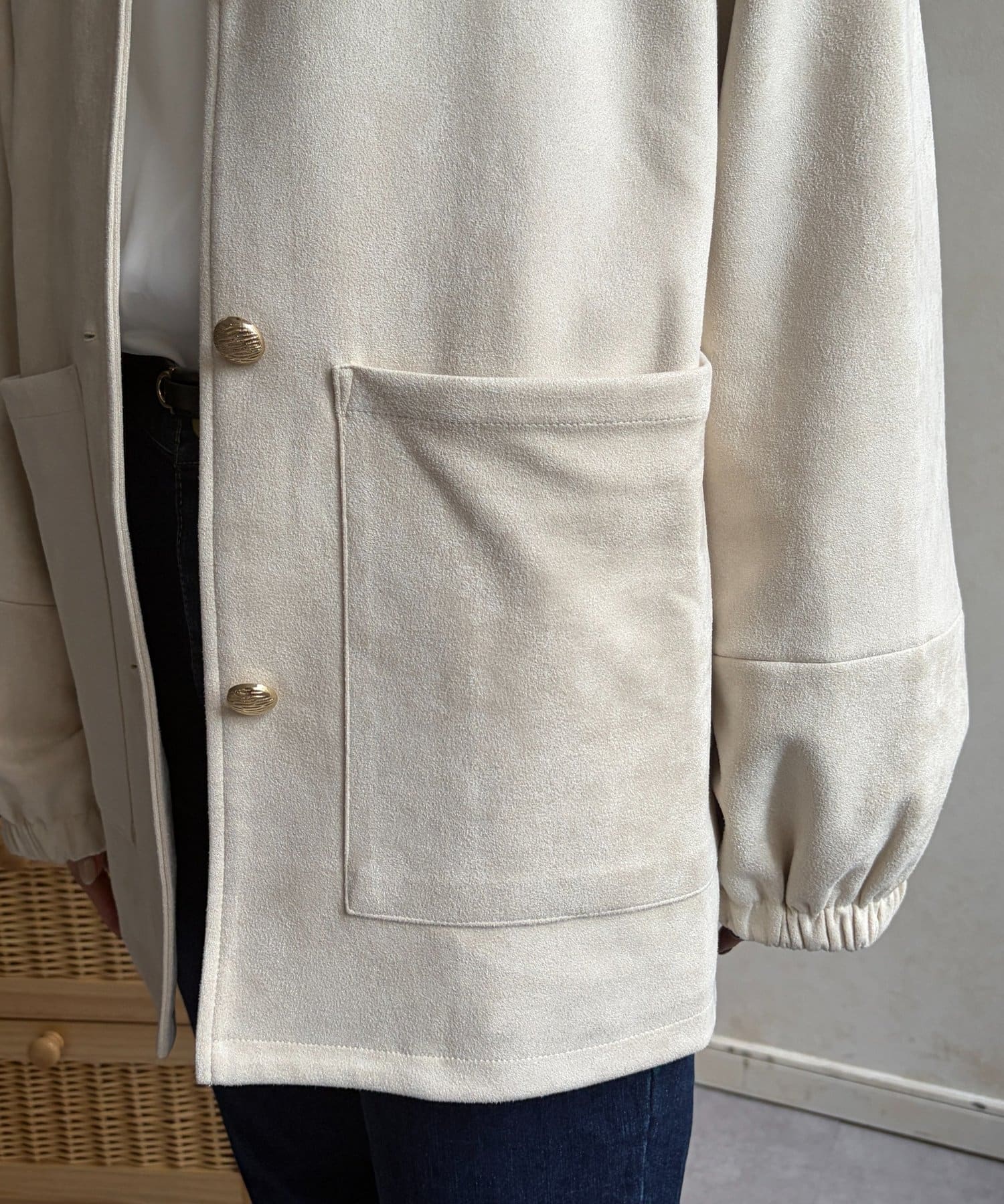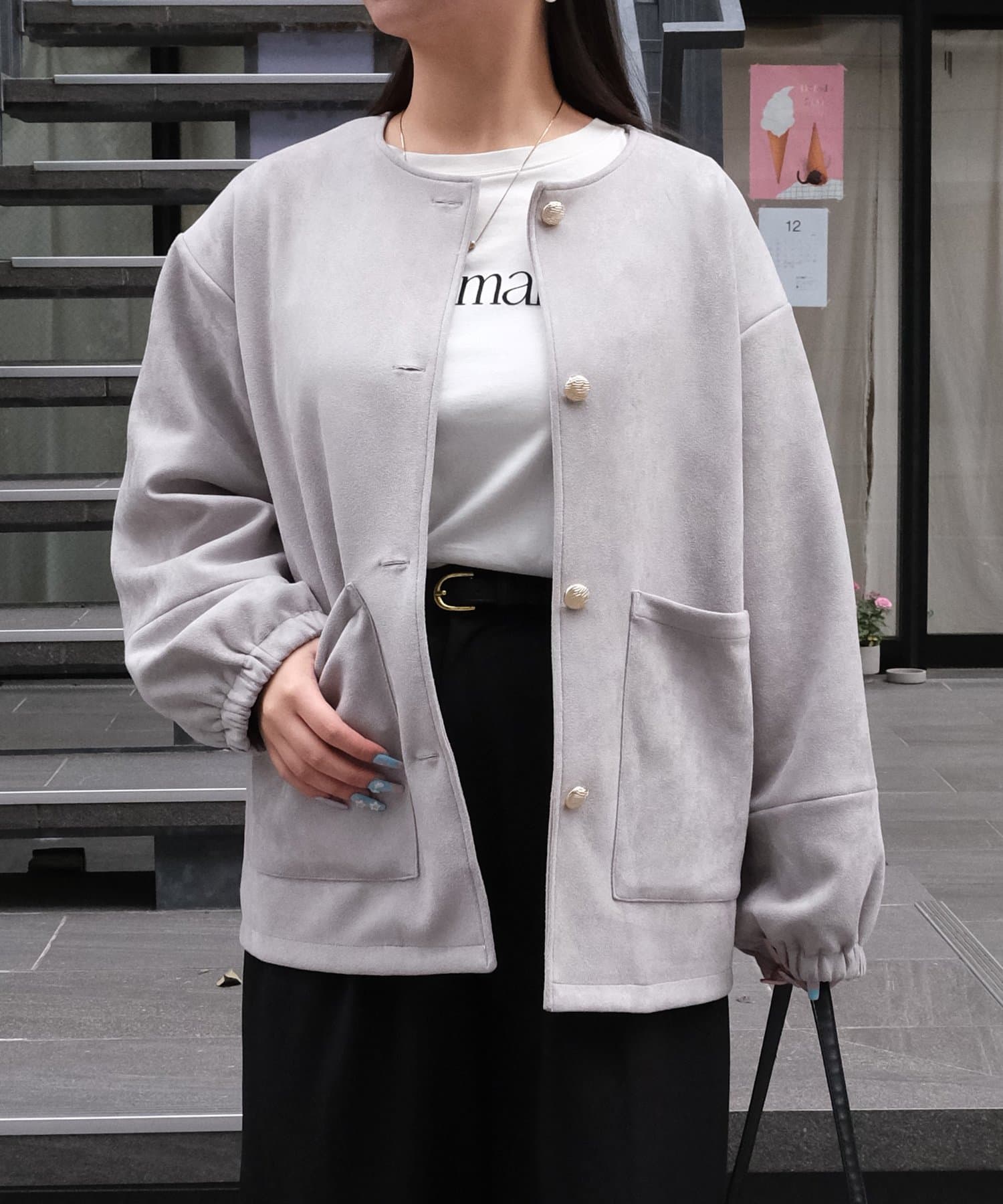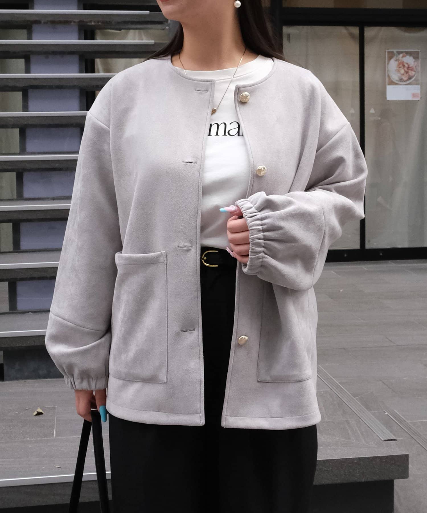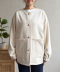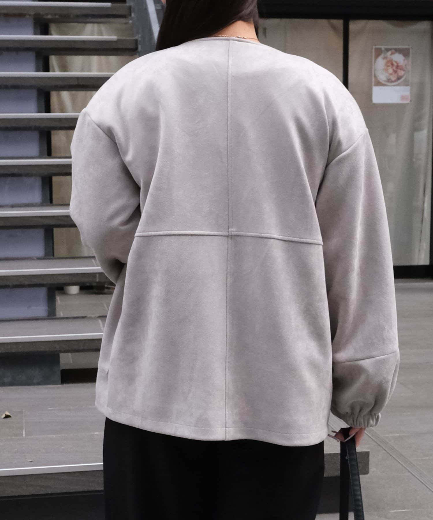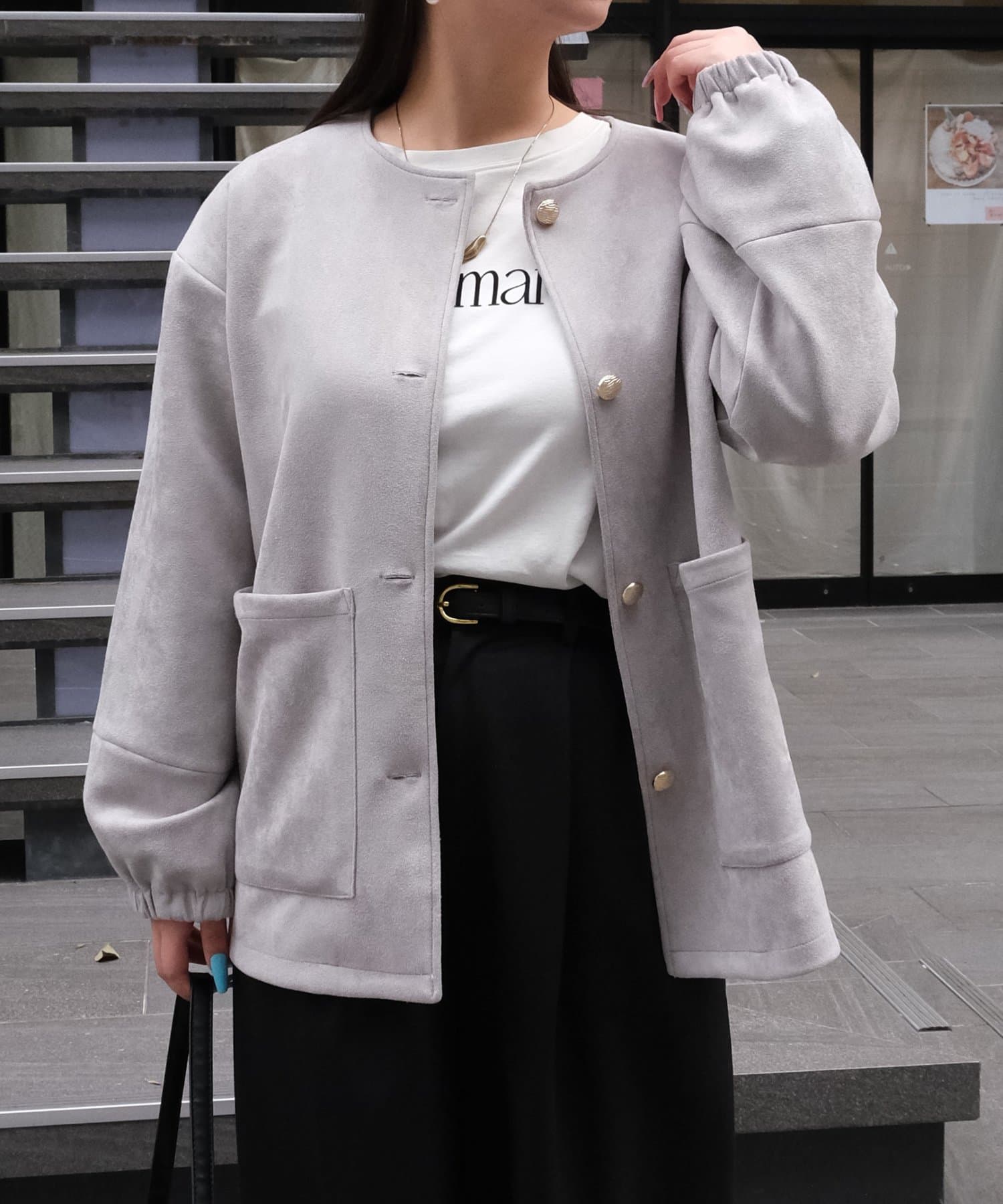 コクーンシルエットなので丸みがあり女性らしい印象に。