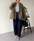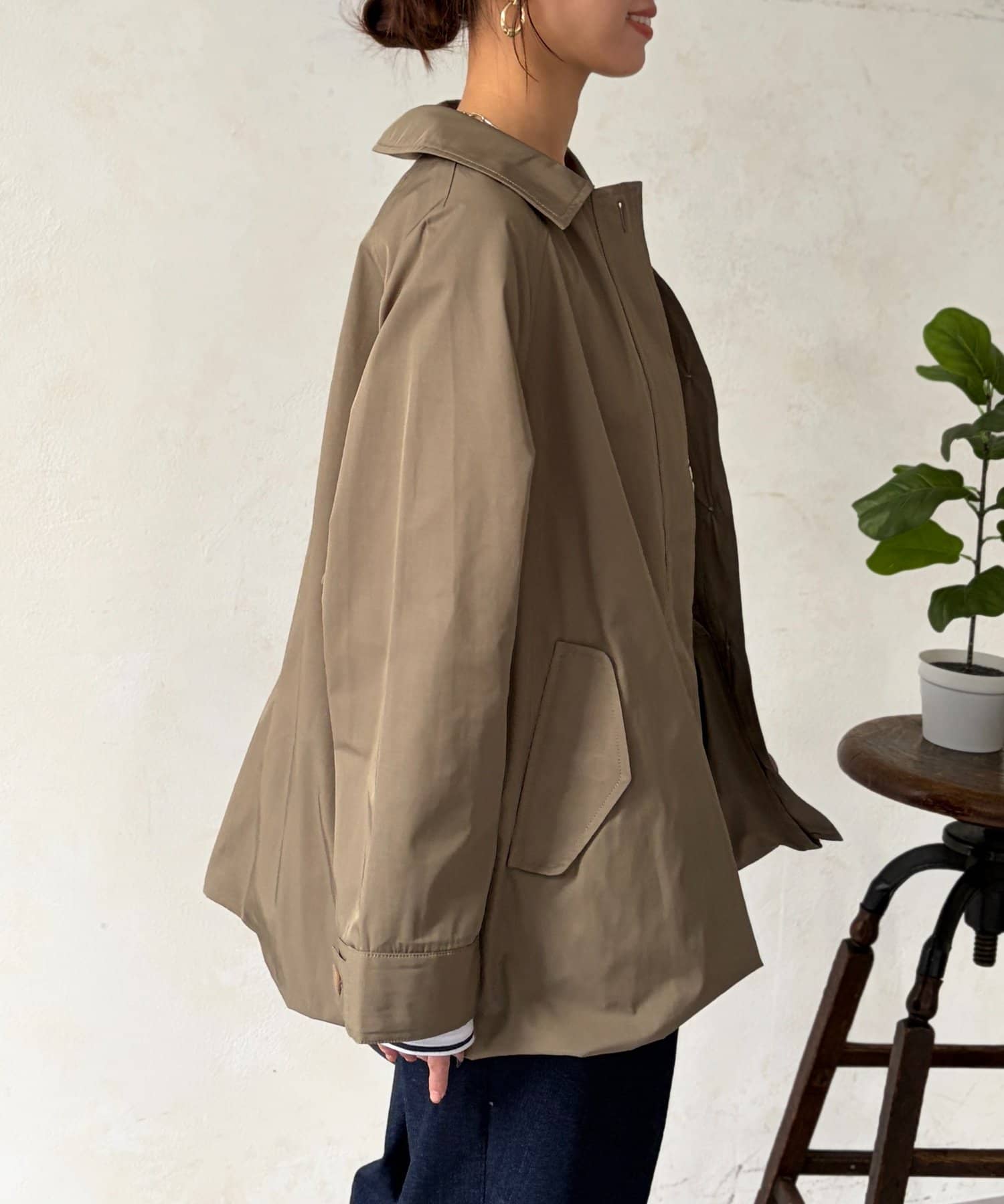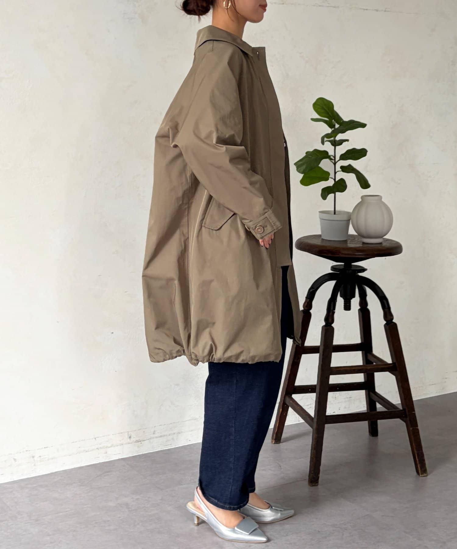 ドロストも施され、丸みのあるシルエットにも変化するので女性らしい雰囲気に。