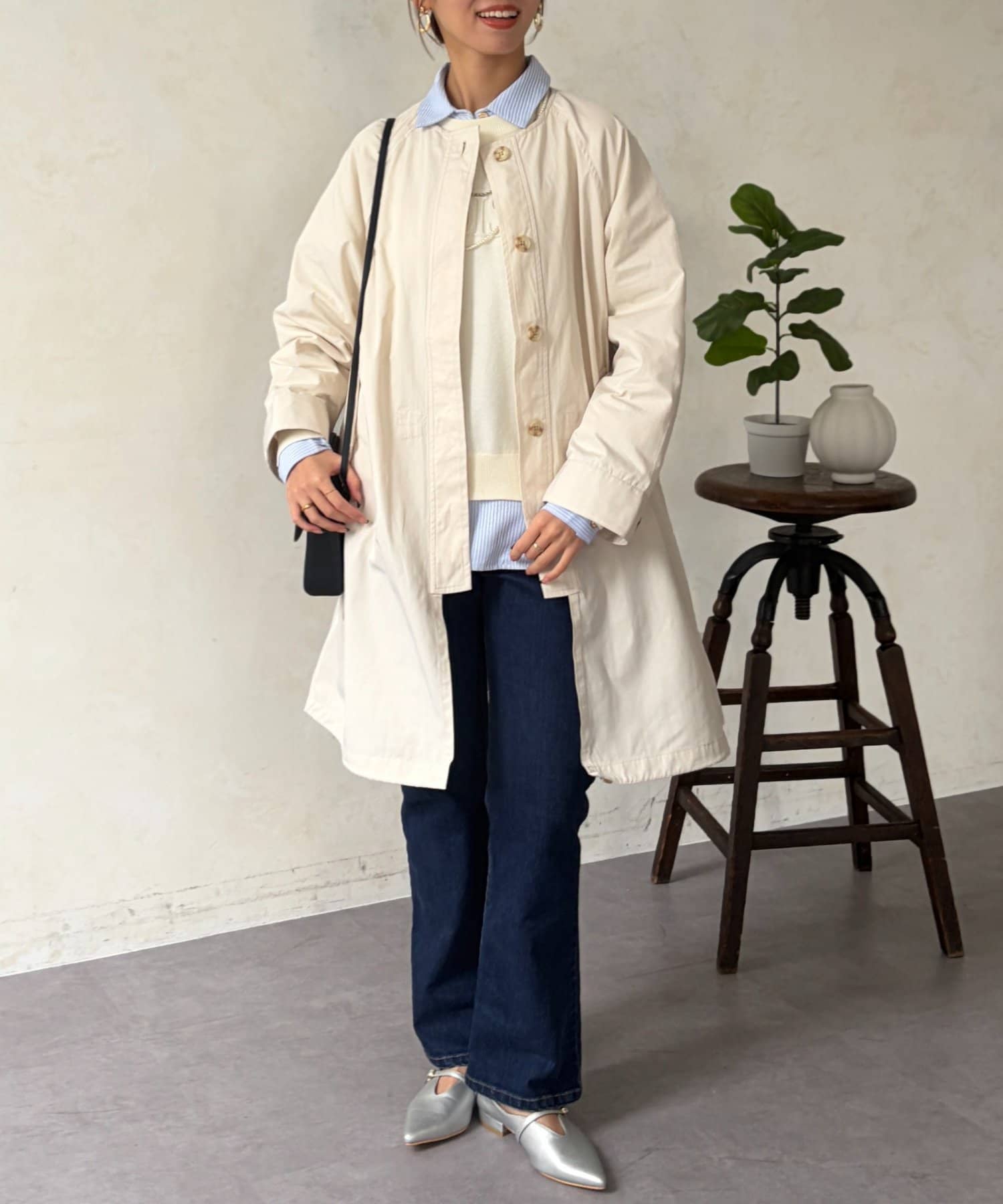 ミドル丈にも変化する!着回し色々ステンカラーコート